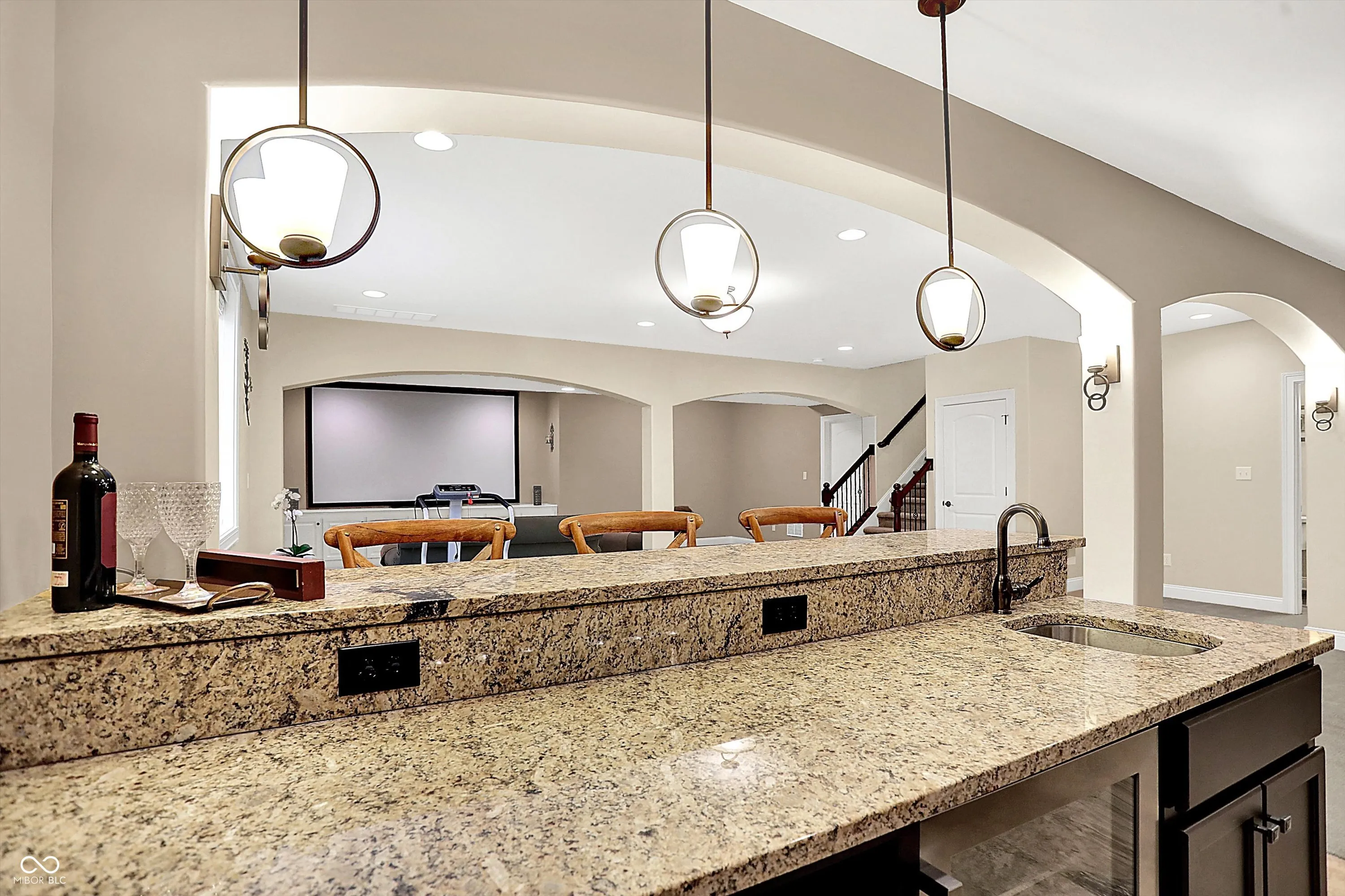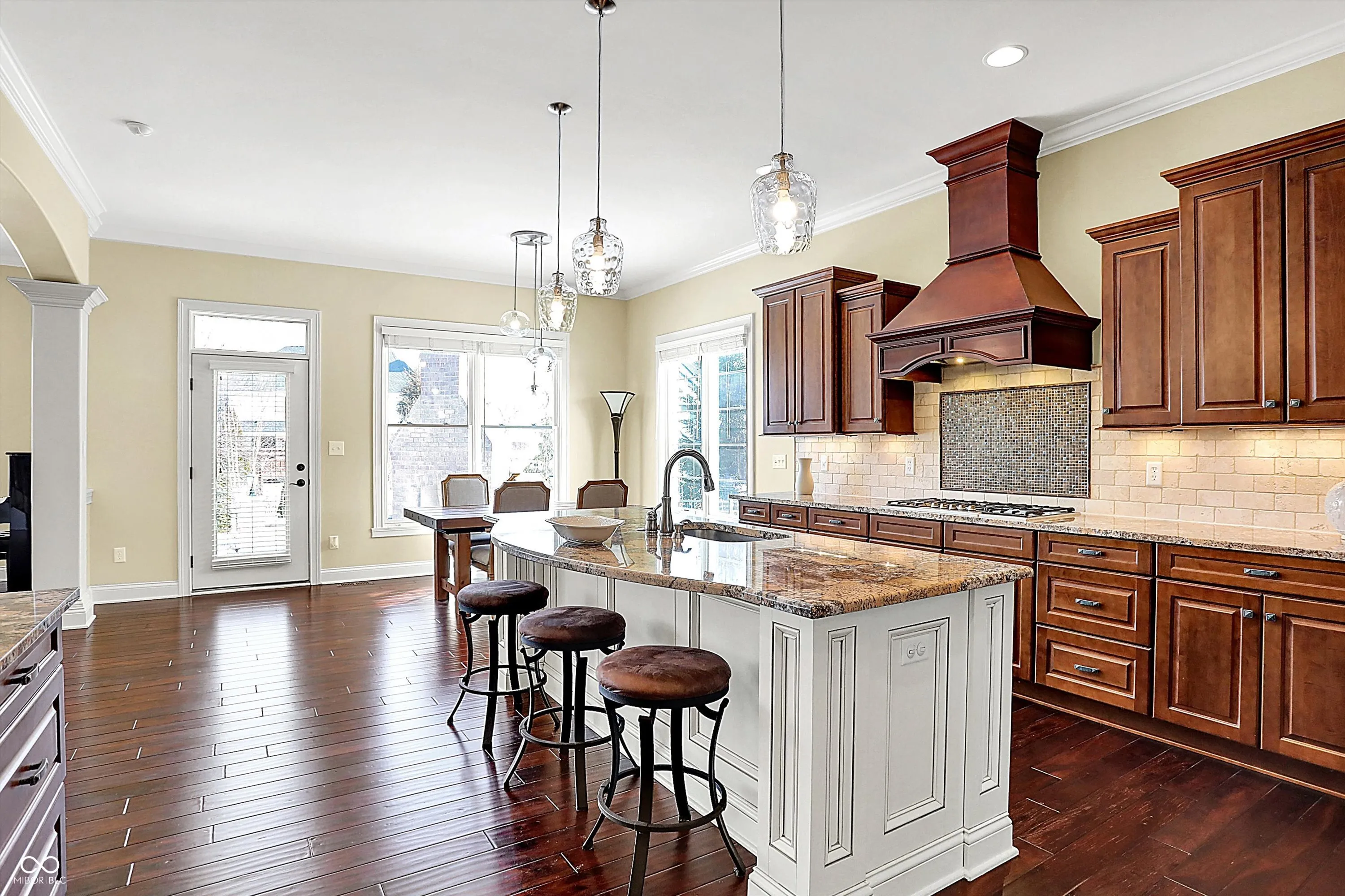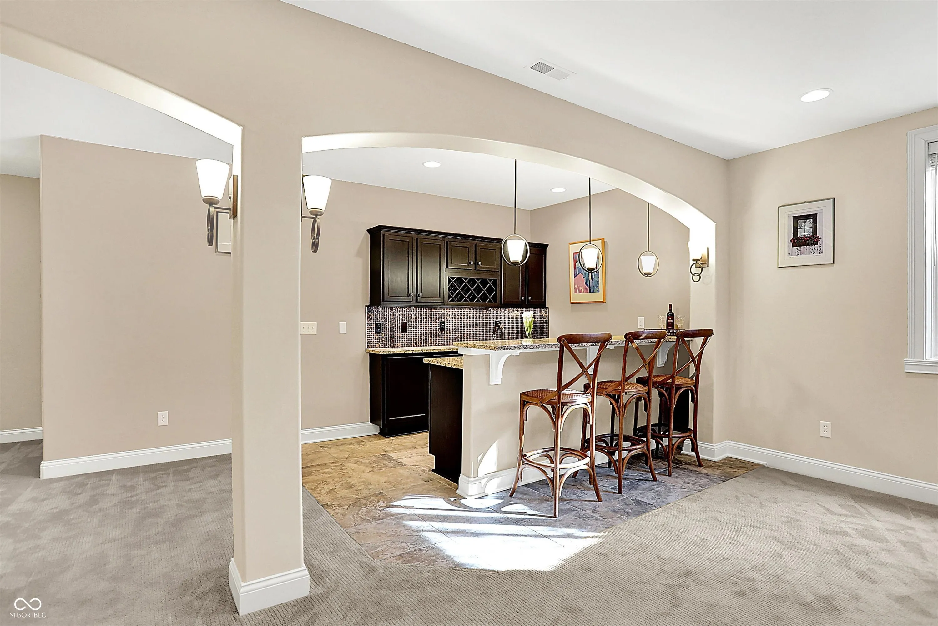 Stunning custom-built home in Carmel (46032) in sought after Saddlebrook at Shelborne. This 5-bedroom, 4.5-bath home features spacious rooms with rounded corners on the walls, creating a warm, inviting atmosphere. The main level offers an open concept with a formal dining room, office, and a centrally located family room. The gourmet kitchen features a large center island, ample granite countertops, and a walk-in pantry. A convenient family entrance foyer includes a boot bench and a powder room. The master suite is a luxurious retreat with double tray ceilings, many windows, and a huge walk-in closet. The en suite bath includes separate vanities, a soaking garden tub, and a separate shower. All bedrooms have walk-in closets, providing plenty of storage space. The finished basement is an entertainer’s dream, with wet-bar and space for a theater, pool table, games, and more. It also features a bedroom with a walk-in closet and a full bath. The unfinished area provides ample storage space. Outdoors, enjoy a private, fenced backyard with an enormous patio, brick fireplace, and a lush garden. Perfect for families and entertaining, this home is in a custom built neighborhood and centrally located.
