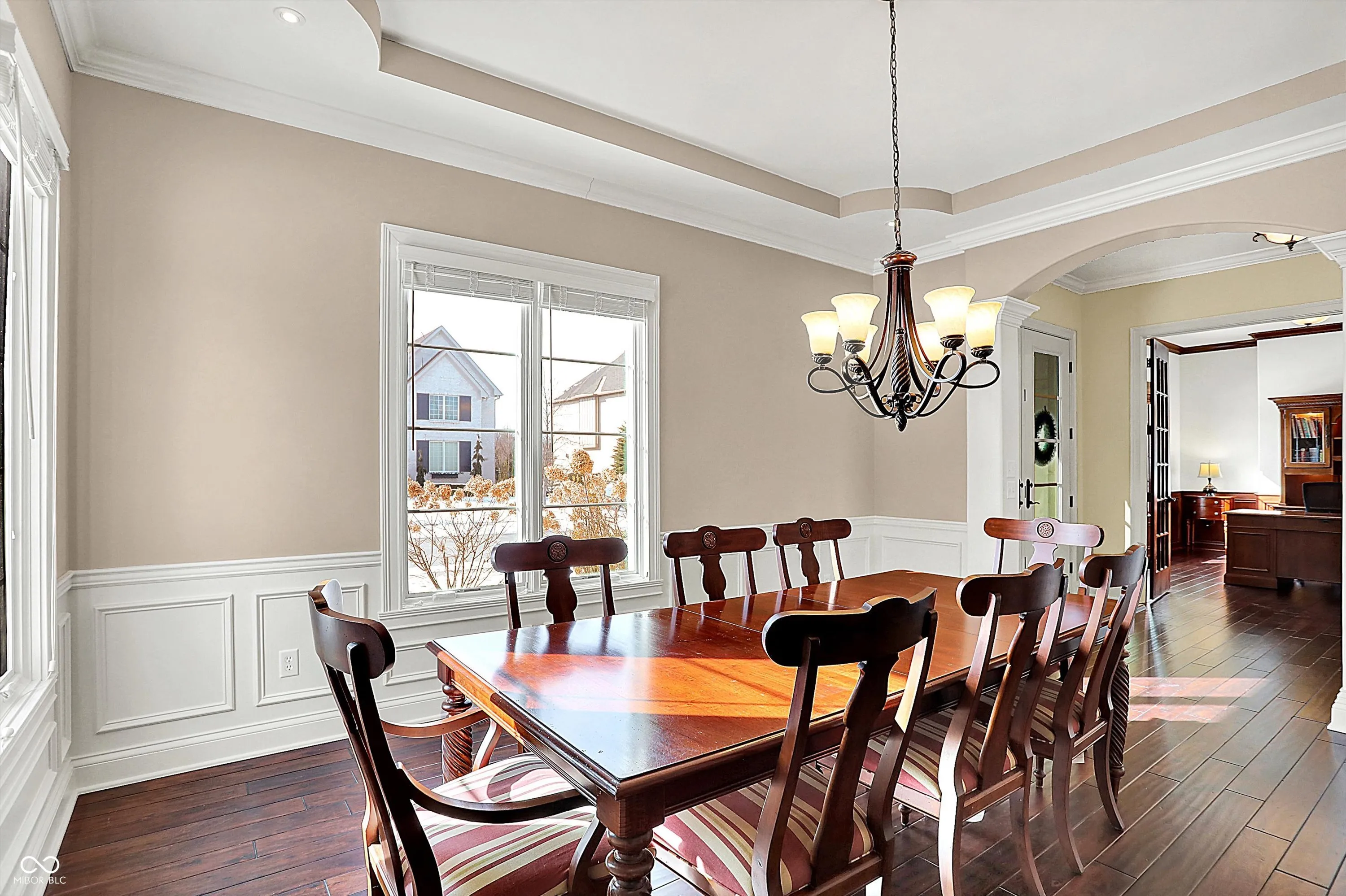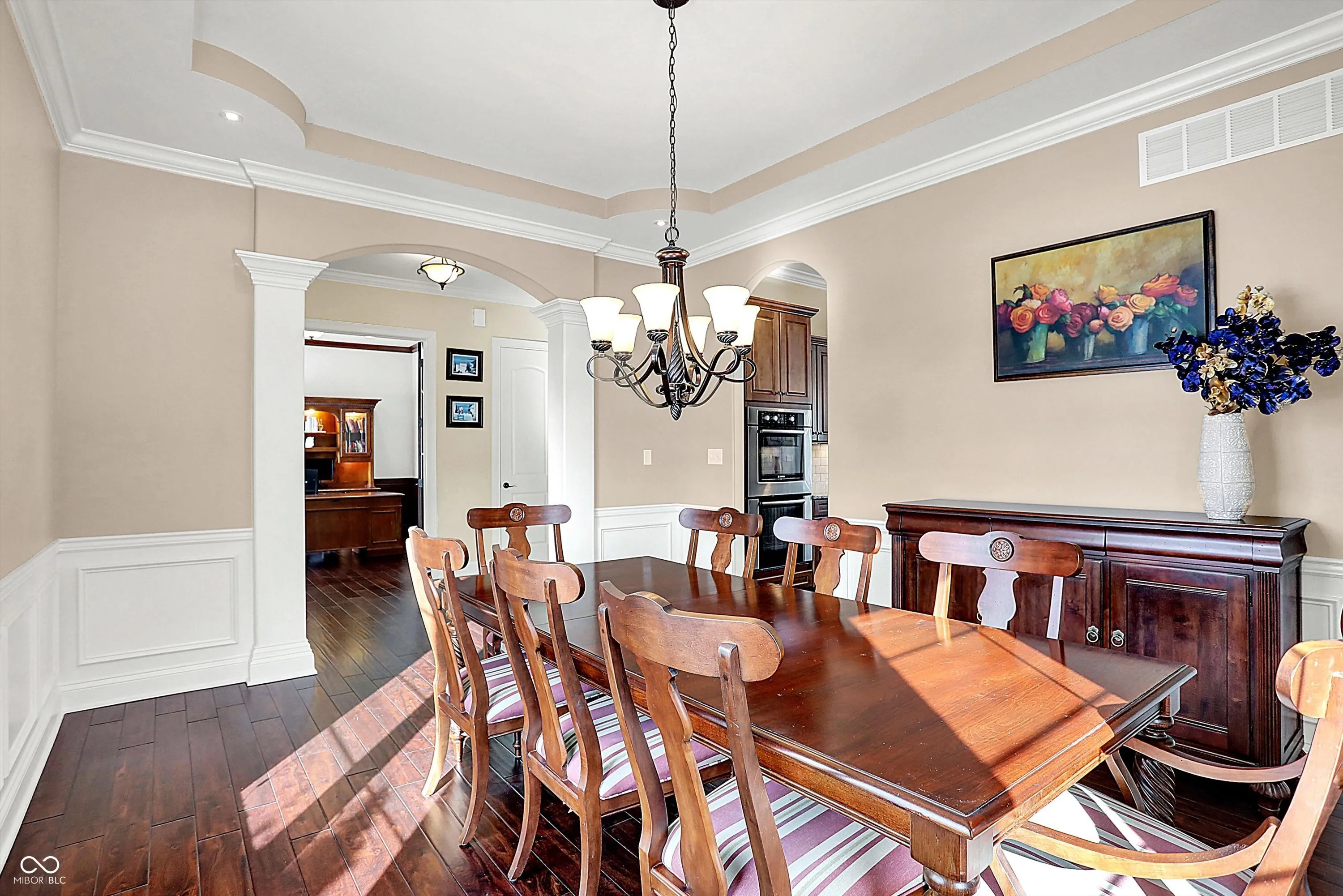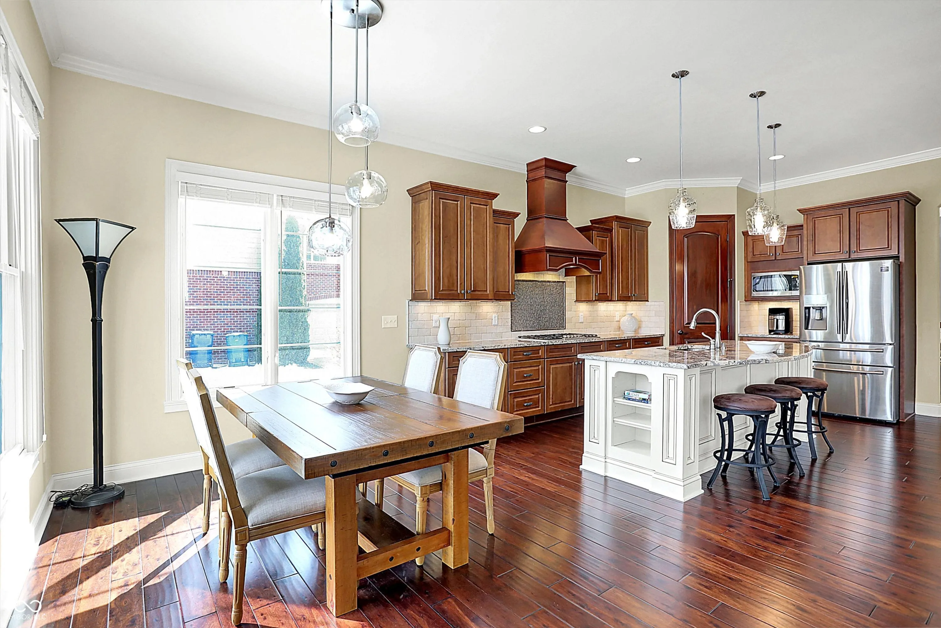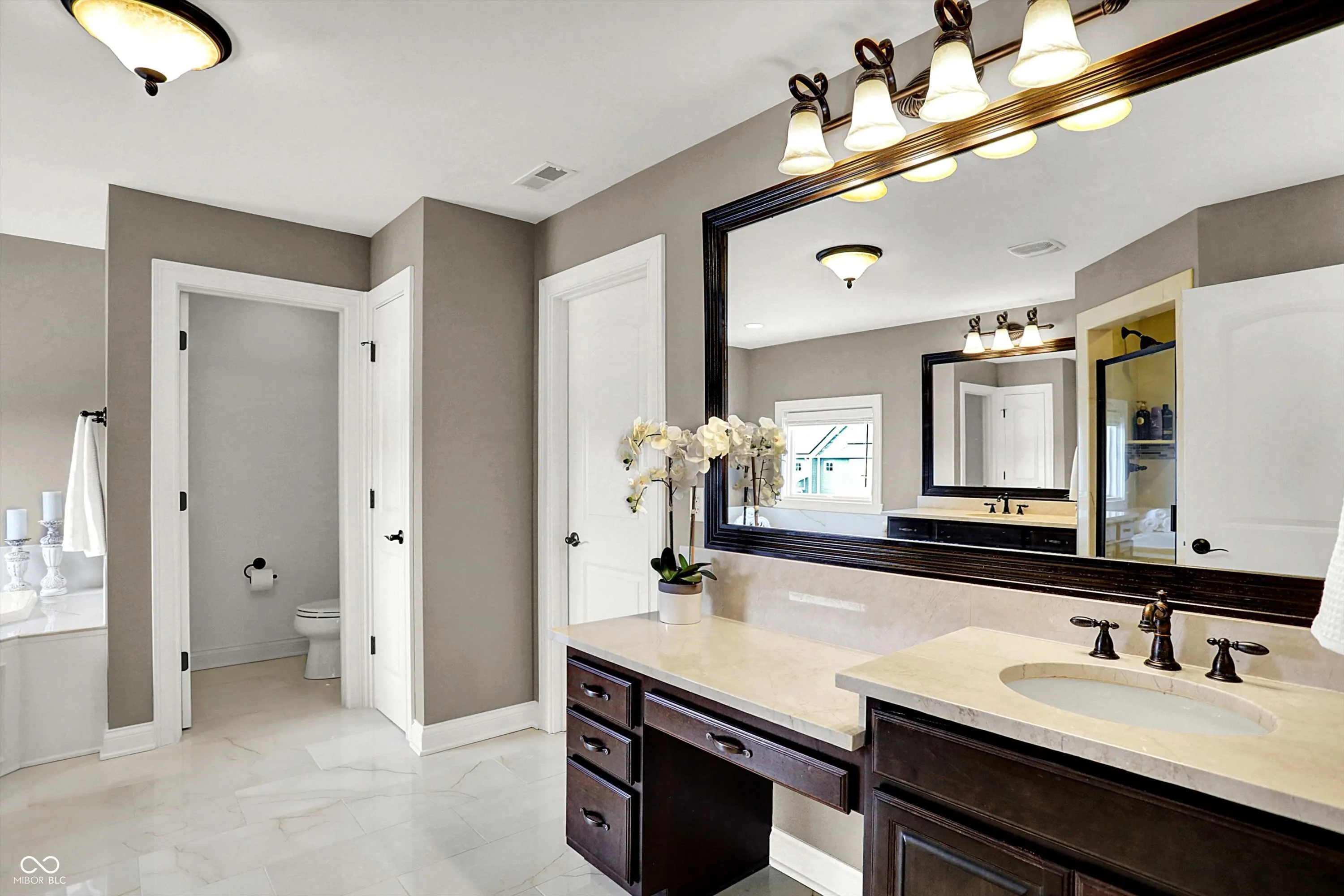 Stunning custom-built home in Carmel (46032) in sought after Saddlebrook at Shelborne. This 5-bedroom, 4.5-bath home features spacious rooms with rounded corners on the walls, creating a warm, inviting atmosphere. The main level offers an open concept with a formal dining room, office, and a centrally located family room. The gourmet kitchen features a large center island, ample granite countertops, and a walk-in pantry. A convenient family entrance foyer includes a boot bench and a powder room. The master suite is a luxurious retreat with double tray ceilings, many windows, and a huge walk-in closet. The en suite bath includes separate vanities, a soaking garden tub, and a separate shower. All bedrooms have walk-in closets, providing plenty of storage space. The finished basement is an entertainer’s dream, with wet-bar and space for a theater, pool table, games, and more. It also features a bedroom with a walk-in closet and a full bath. The unfinished area provides ample storage space. Outdoors, enjoy a private, fenced backyard with an enormous patio, brick fireplace, and a lush garden. Perfect for families and entertaining, this home is in a custom built neighborhood and centrally located.