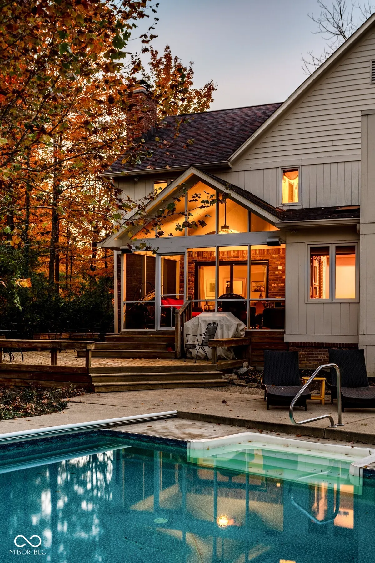 Experience a one-of-a-kind retreat just steps from Eagle Creek Reservoir. This beautifully updated brick home blends classic charm with modern amenities, offering the perfect balance of comfort and style. The heart of the home is the stunning, remodeled island kitchen and hearth room, which seamlessly connect to a spacious great room featuring a striking brick fireplace. A custom wood-finished study/parlor and an elegant dining room add to the home’s timeless appeal. Upstairs, you’ll find four generously sized bedrooms, a versatile bonus room, and two full bathrooms. The lower level is designed for relaxation and entertainment, boasting a welcoming family room, a wood-burning fireplace, a stylish wall bar, and a full bathroom. Step outside to enjoy the serene beauty of nature from the screened porch or expansive wood deck, both overlooking a sparkling pool-perfect for outdoor living and entertaining. Nestled among mature trees, this remarkable Indiana home offers a rare blend of privacy and tranquility. Don’t miss the chance to make this breathtaking retreat your own!