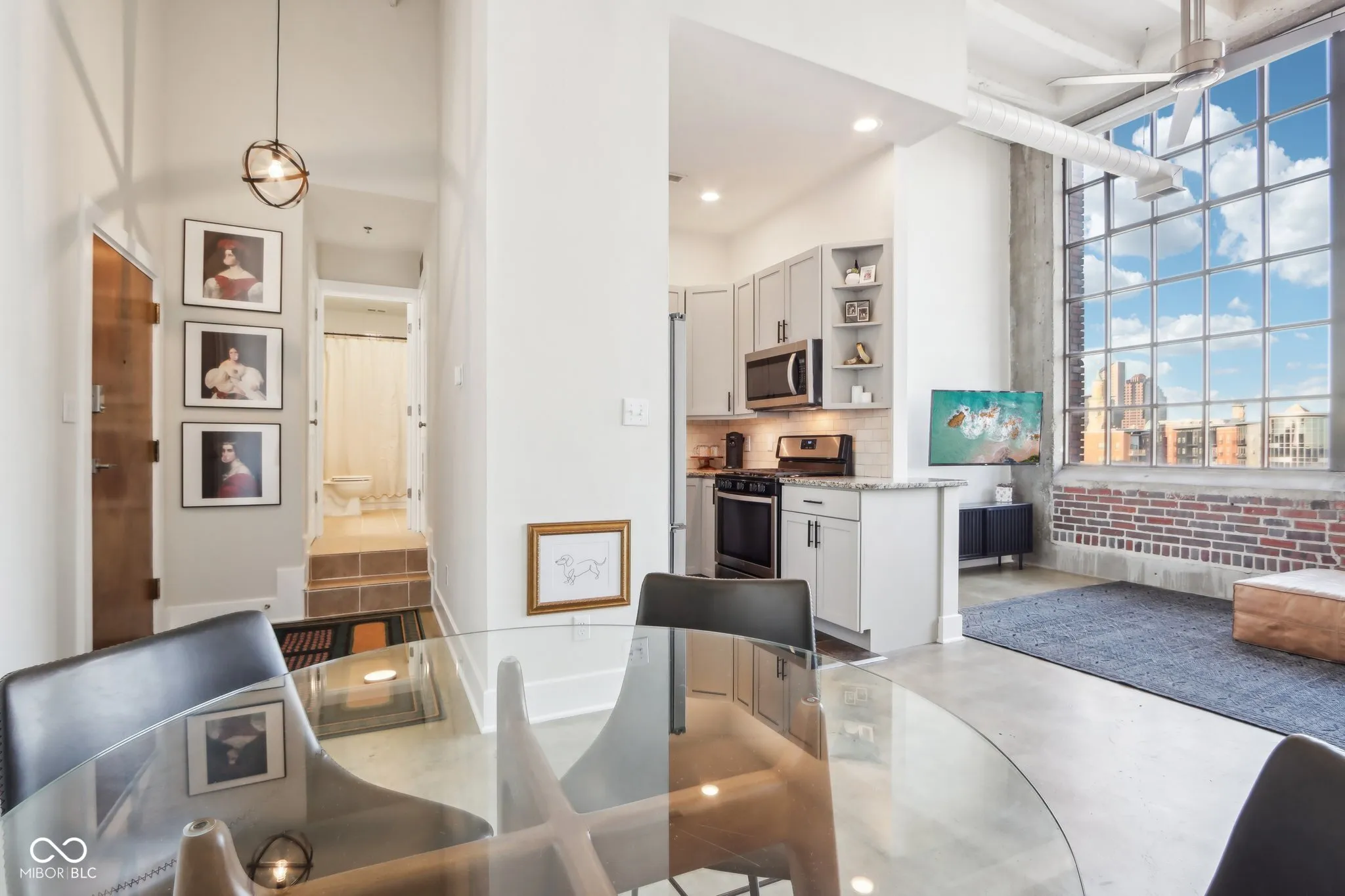 This meticulously maintained condo in the iconic Real Silk Lofts offers the perfect blend of modern comfort and historic charm, just steps off Mass Ave in downtown Indianapolis. With 16-foot ceilings and exposed brick walls, the space is filled with natural light and stunning views of the city skyline. Custom blinds provide privacy while enhancing the space’s unique appeal. Residents enjoy fantastic amenities, including a pool, hot tub, steam room, and gym-all included in the monthly HOA fee. The building is designated as a non-smoking environment for added comfort. A secured, gated parking space comes with the unit, along with a guest parking pass for convenience. Located on the same block as popular spots like Chatham Tap, Livery, 45 Degrees, and Mass Ave Pub, and just a block from Bottleworks, this condo places you at the heart of Indianapolis’ vibrant urban scene. Experience the best of city living in this exceptional condo-where historic charm meets modern luxury!
