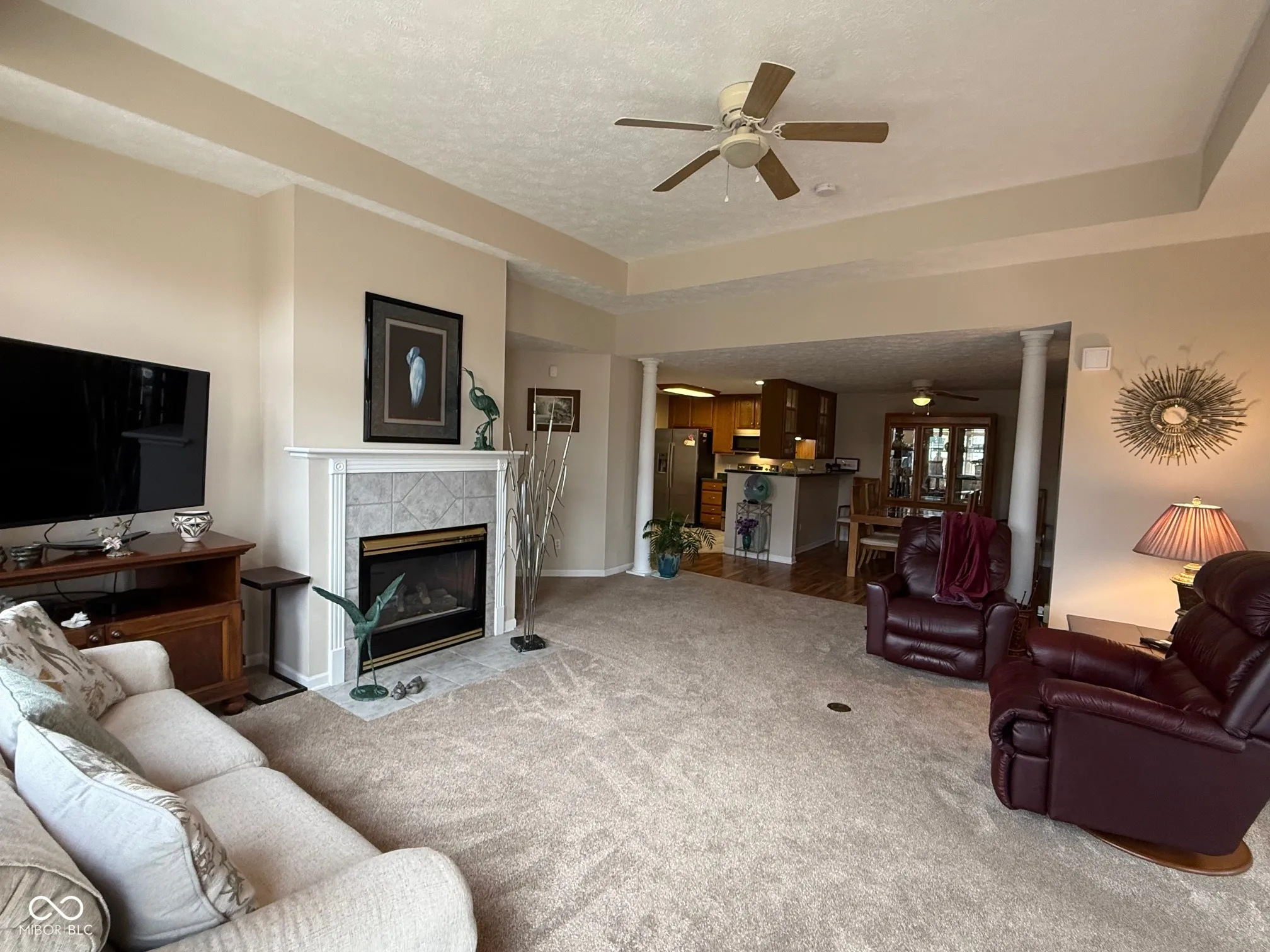 Welcome to EASY living in highly sought after Courtyard Lakes! Fantastic Fishers condo. Let the HOA handle the yard work, exterior maintenance, and snow removal while you relax and enjoy living in this lovely brick beauty. Great open floor plan with tons of natural light. Trayed ceiling in spacious great room with gas fireplace accented by collonade pillars. Formal dining room and kitchen with updated stainless appiances. Primary suite with cathedral ceiling and customized closet. Split bedroom floor plan. Second bedroom has two closets. French doors from great room open into 13×12 sunroom currently used as an office. Enjoy morning coffee or cook outs on the large patio. Fresh paint and newer carpet make this home move in ready. Great location near the clubhouse with heated pool, exercise room, putting green. Come see!