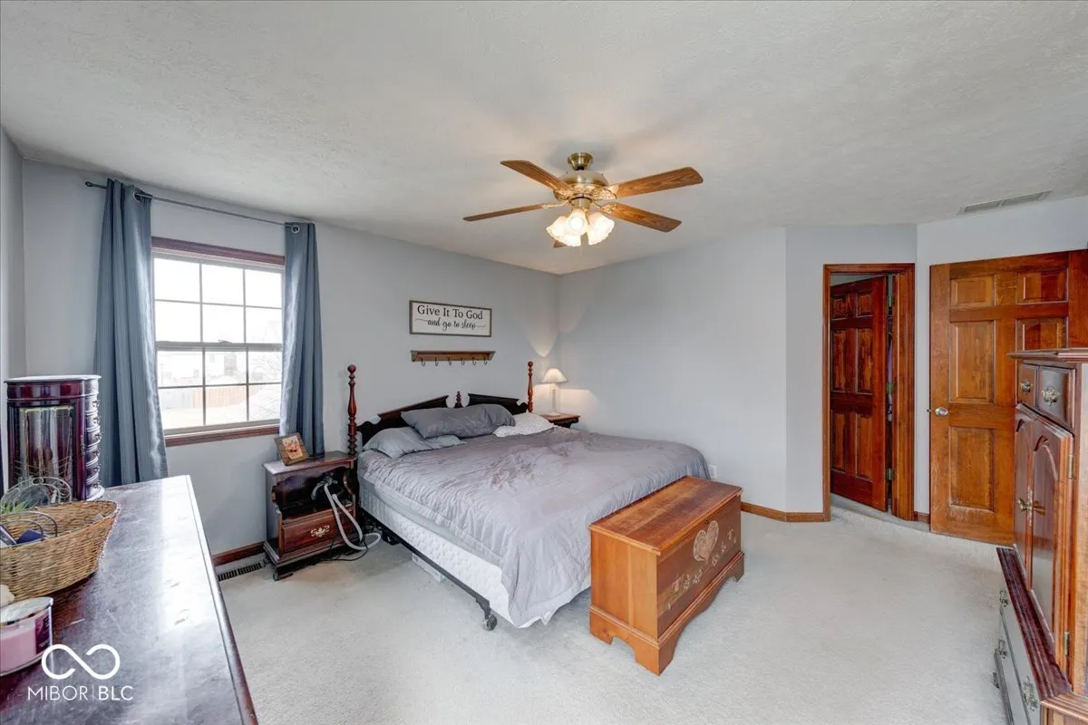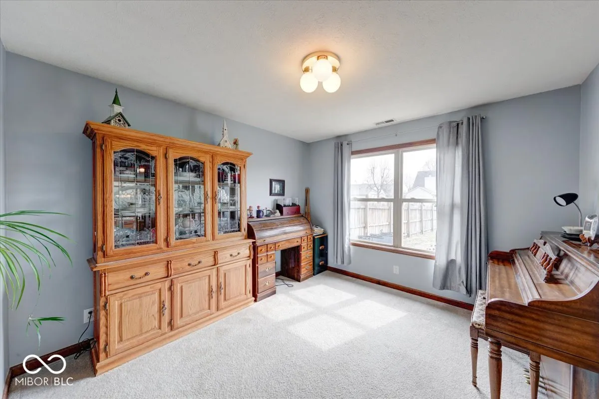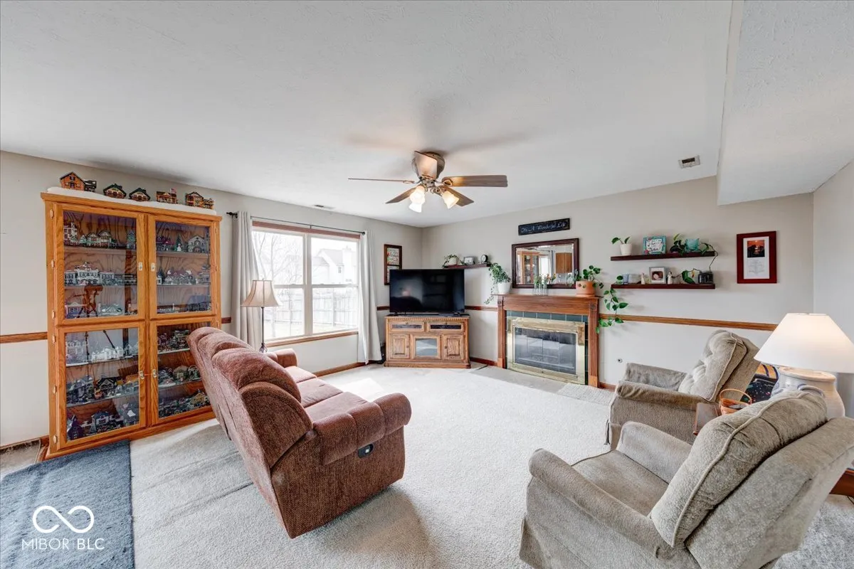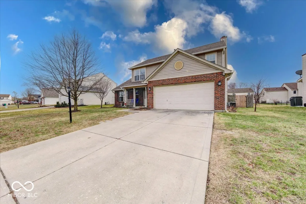 Welcome to this 4 bed 2.5 bath home located within Clearbrook Lakes! Walk up to the lovely covered front porch, then step inside and find the open foyer that flows nicely into the den/library. The large formal dining room is situated right next to the kitchen, perfect for serving family dinners! Large kitchen with pantry, plenty of cabinets and counter space, breakfast nook and all kitchen appliances are included. The family room is open with a gas fireplace, and lots of natural light! Large primary suite with walk in closet and double sinks. Large privacy fenced in back yard with fire pit and patio. Newer refrigerator, dishwasher, microwave and water heater, six panel doors, walk in closets, washer and dryer included. Furnace replaced in 2022 and AC replaced in 2023. Great location, close to Freedom Park, Freedom Springs, close to shopping, Greenwood Park Mall, and interstate I-65.