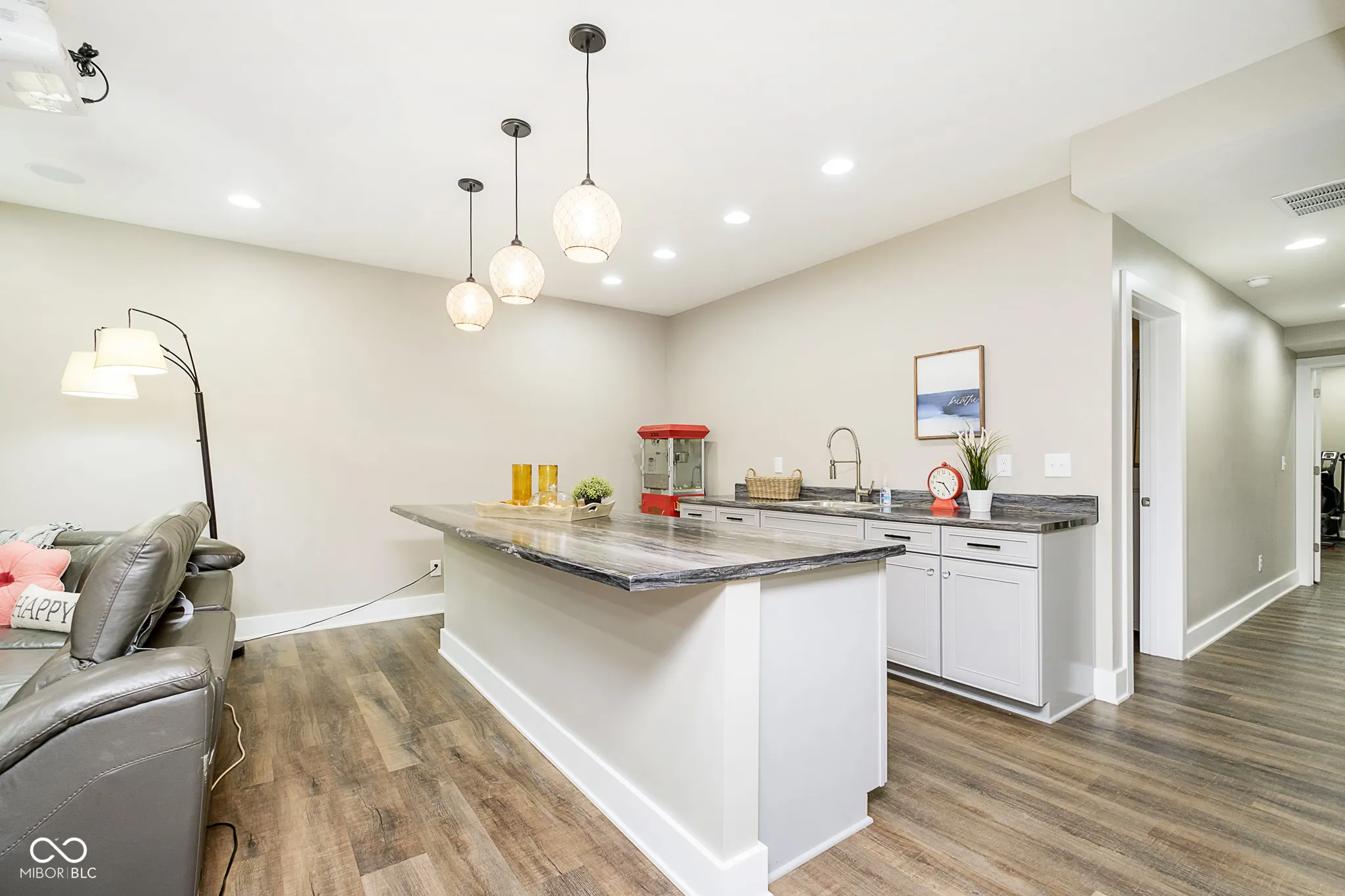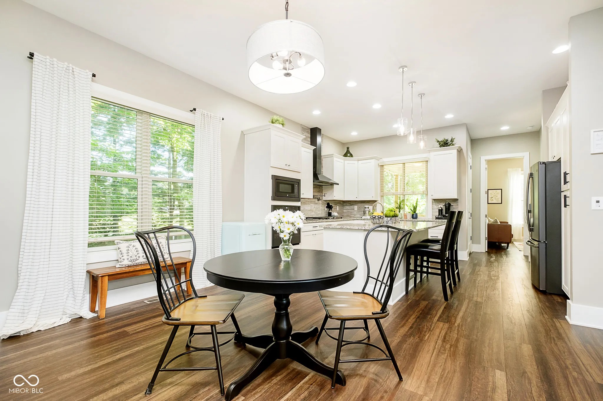 You’ll be pleased by the lovely curb appeal that immediately welcomes you home! Step inside and be greeted by an open floorplan, showcasing views of the formal Dining and Great Rooms, along with an open staircase. This custom-built gem is filled with natural light throughout! The kitchen is a dream, complete with an instant pot filler, farmhouse sink, and more! The main level features a versatile 5th bedroom/office with a full bathroom, along with a Mud Room and a convenient half bath. The lower level is perfect for entertainment, with a home theater, kitchenette, 4th bedroom/full bath, and an exercise room. Upstairs, you’ll find a cozy loft, two additional bedrooms, and a luxurious Primary Suite, complete with a retractable ceiling TV and a spa-inspired fireplace. The builder-designed His/Her closets are located off the primary bath, though the first closet currently lacks rods and shelving and is being used as a second office – but it could easily be transformed into additional closet space. Step outside to enjoy serene wooded views from the back porch. All of this is nestled in the desirable Foster Branch Estates, just minutes from Pendleton’s charming shops and dining!