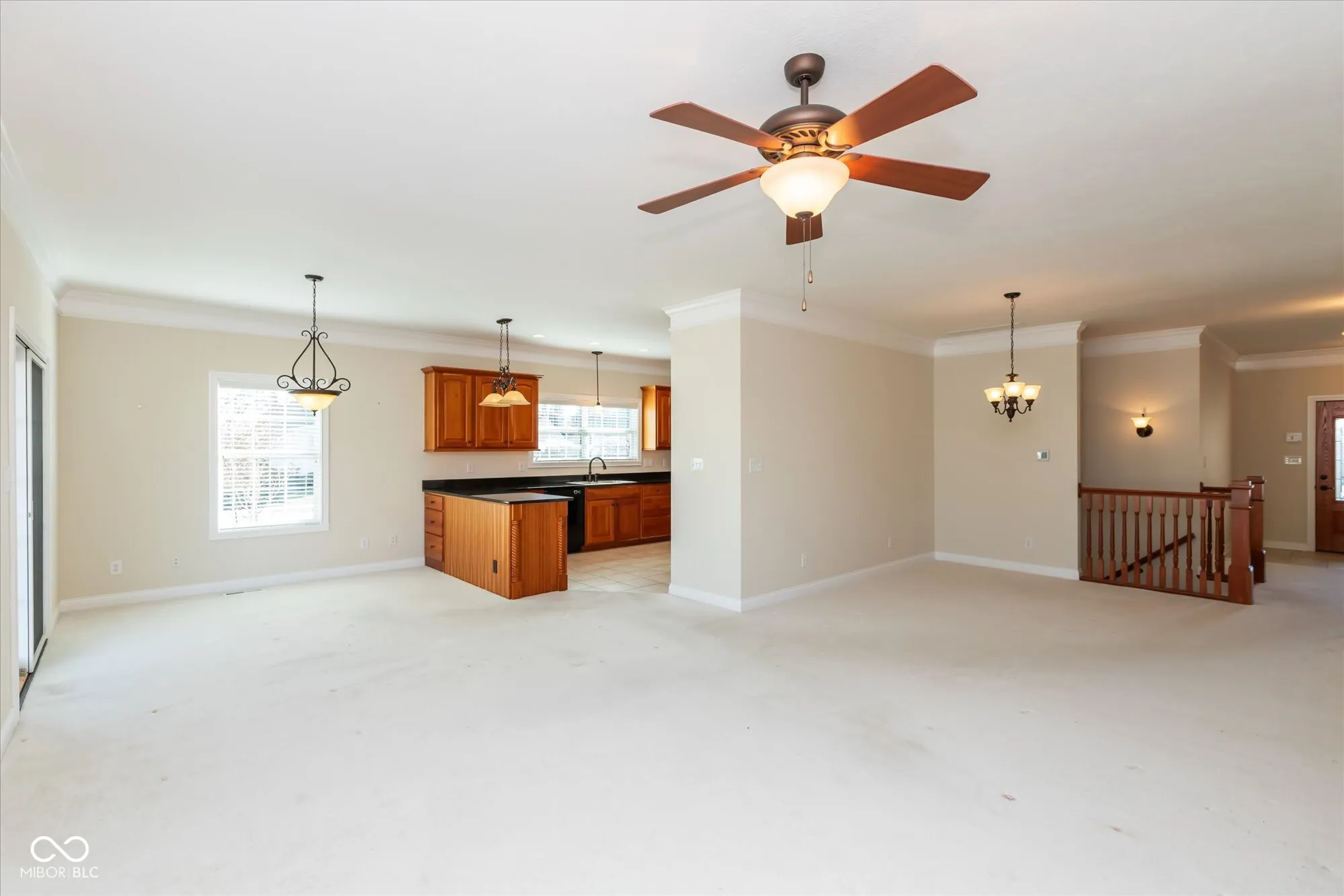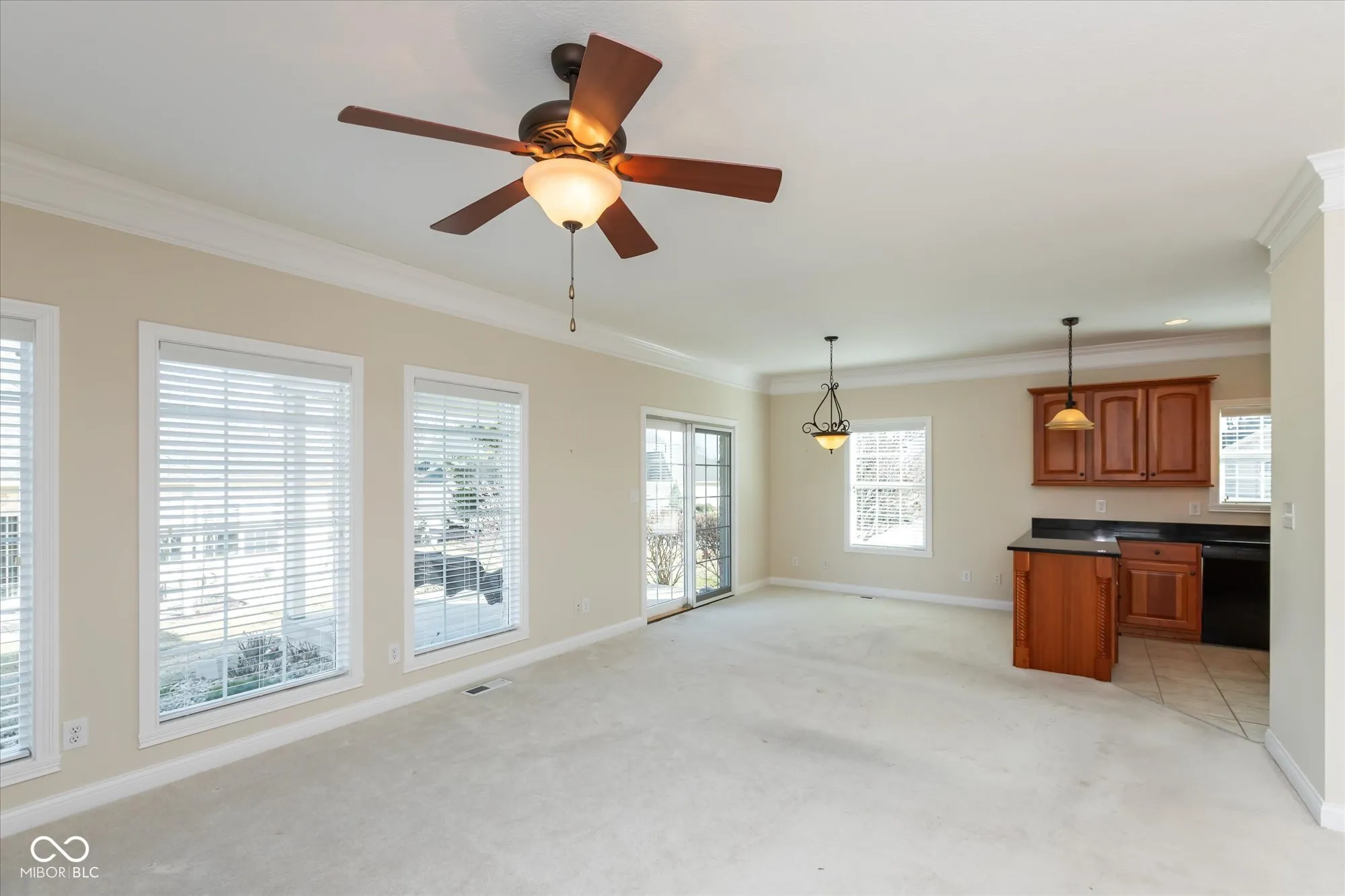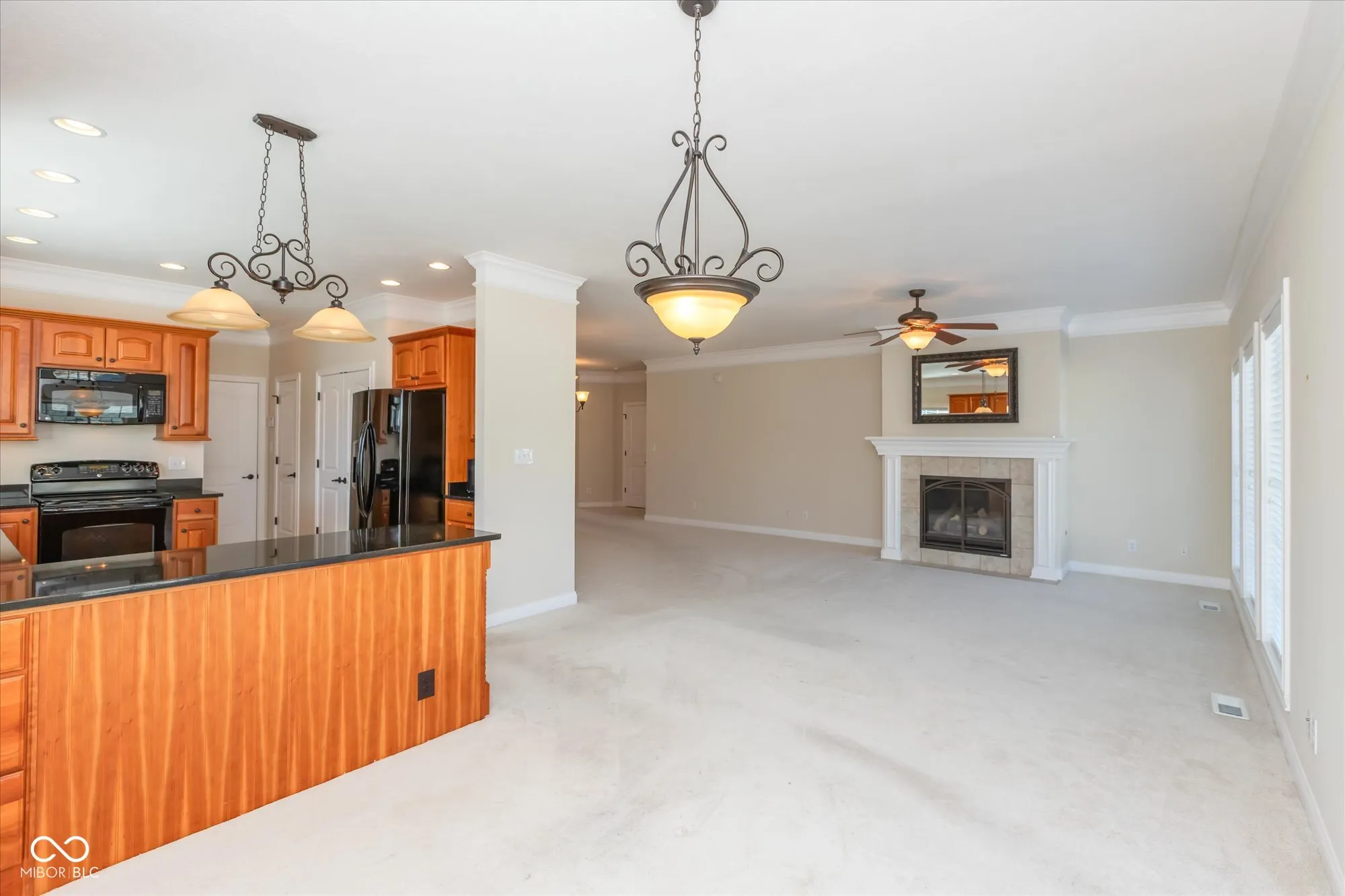Located in the desirable Nottinghill Subdivision, this beautiful custom-built home offers over 2,400 square feet of finished space with an additional 650+ square feet of unfinished basement ready for your personal finishing touches. Featuring three spacious bedrooms and three baths, this home showcases exquisite craftsmanship with door casings wrapped in fluted trim, crown molding throughout the main living areas, and a beautiful wood banister and railing. The open-concept design is enhanced by 9-ft ceilings, a spacious 17×16 great room with fireplace and mantel, and a well designed 14×12 kitchen with large pantry. The large primary suite includes a 15×14 layout, an oversized walk-in closet, a walk-in shower, while the additional bedrooms are generously sized at 15×13 and 14×14. Have meals in the 14×10 dining area or enjoy casual meals in the 14×10 breakfast room. Enjoy any day relaxing on the covered 17×15 patio with a ceiling fan! The oversized three-car garage offers over 690 square feet. Additional features include a 13-year-old roof, a newer gas furnace and heat pump around 1 1/2 years old, a five-year-old water heater, a sump pump with battery backup, and a water softener. The HOA fee of $130 per month includes lawn care and snow removal.