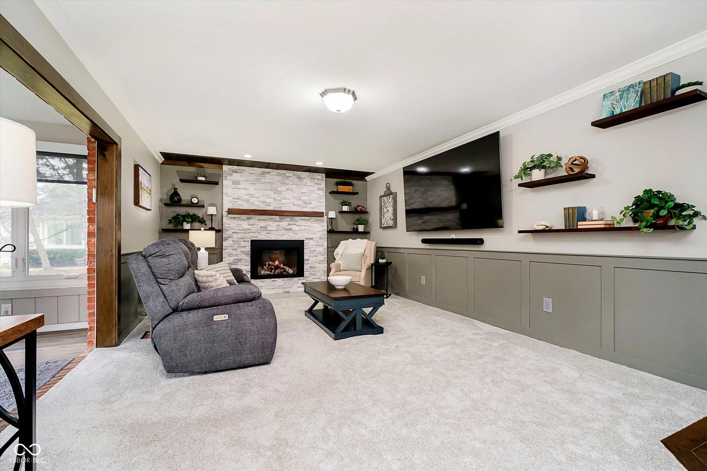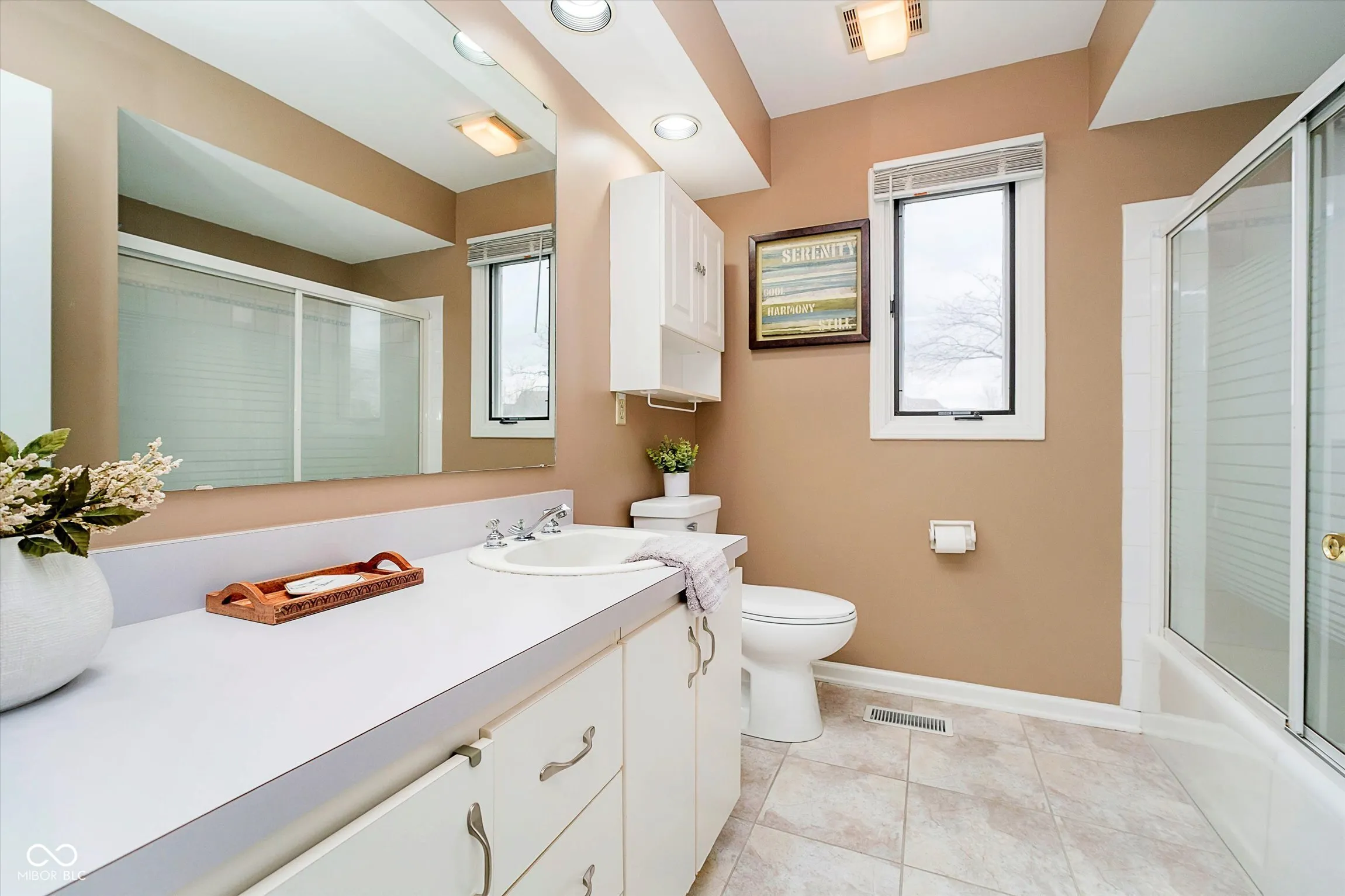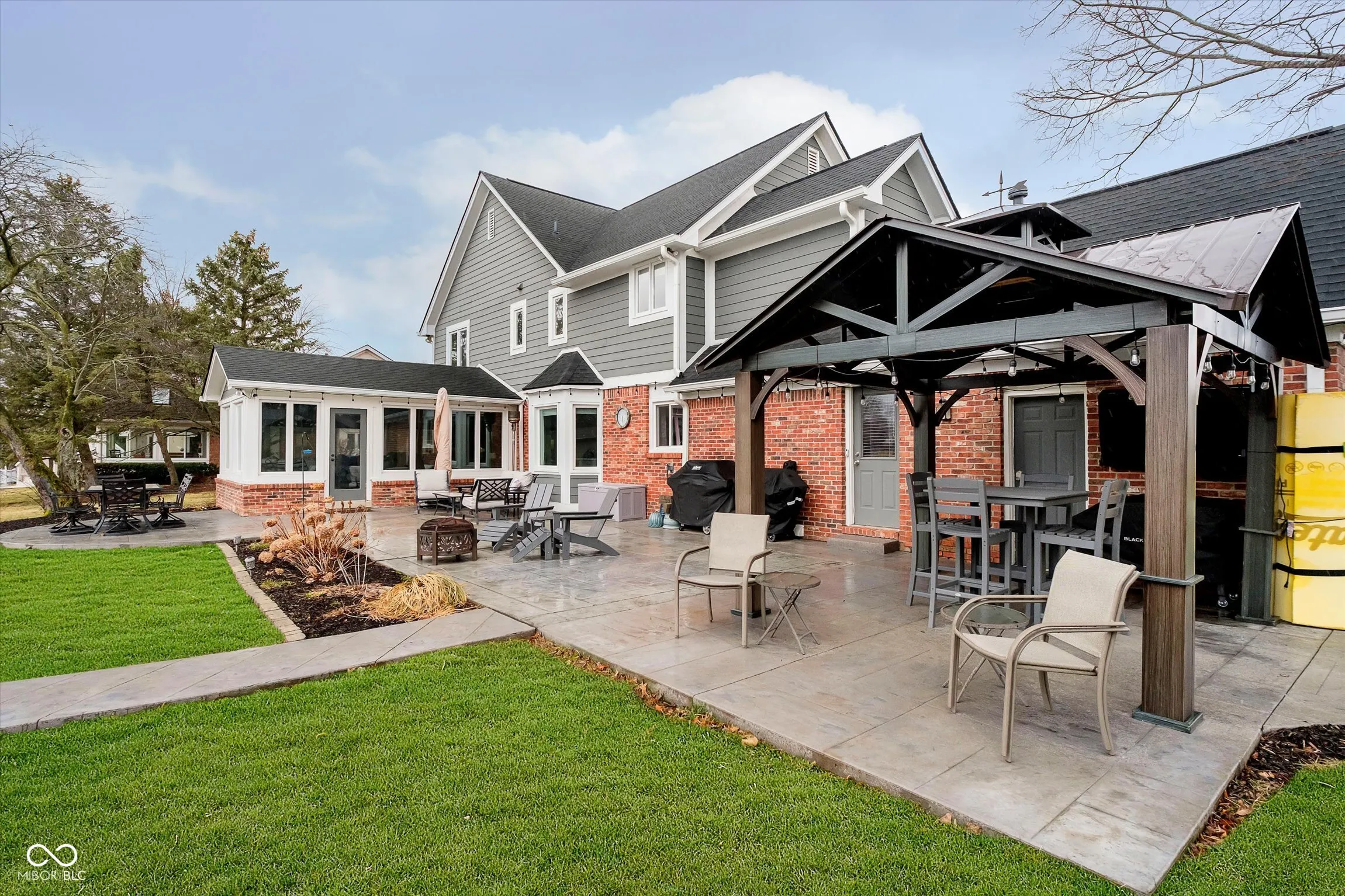 LAKE FRONT w/ dock, nearly .5 acres, 4 BR & 2.5 BA Carmel home (Westfield Schools) in sought after Village Farms neighborhood. Rare find in this location – check out virtual tour link in listing to view aerial flyover & interior highlight video! Impressive poured patio w/ pergola, multiple entertaining zones, sidewalk & steps leading to dock access for 15-acre stocked lake. New roof, gutters, exterior paint, water softener. Professional landscaping & exterior lighting, 6-zone irrigation, storage shed. Enjoy water views from spacious Sunroom w/ new LVP floors, remote blinds, & mini-split HVAC. Completely remodeled Kitchen has new cabinets, granite counters, tile backsplash, upgraded stainless appliances, gas range, pantry w/ roll out shelves, & custom island w/ storage that doubles as eat-in dining table. New 3/4″ white oak engineered hardwoods on main level, Mudroom w/ boot bench (additional laundry hookups behind bench), utility sink, & cabinets, and updated Powder Room. Family Room w/ new gas insert fireplace, tile surround, floating shelves, custom millwork, new carpeting. Private main level Home Office w/ sliding doors & formal Dining Room. Primary Suite has a vaulted ceiling, walk-in closet, ensuite bath. Upstairs Laundry. 3 more spacious BRs w/ ceiling fans & big closets. Walk-in attic storage. Finished 2+ car garage w/ heater & separate workshop & storage area. Enjoy fishing from floating dock, paddle board, paddle boat, or just relax! HOA amenities include pool, tennis, walking paths, clubhouse.