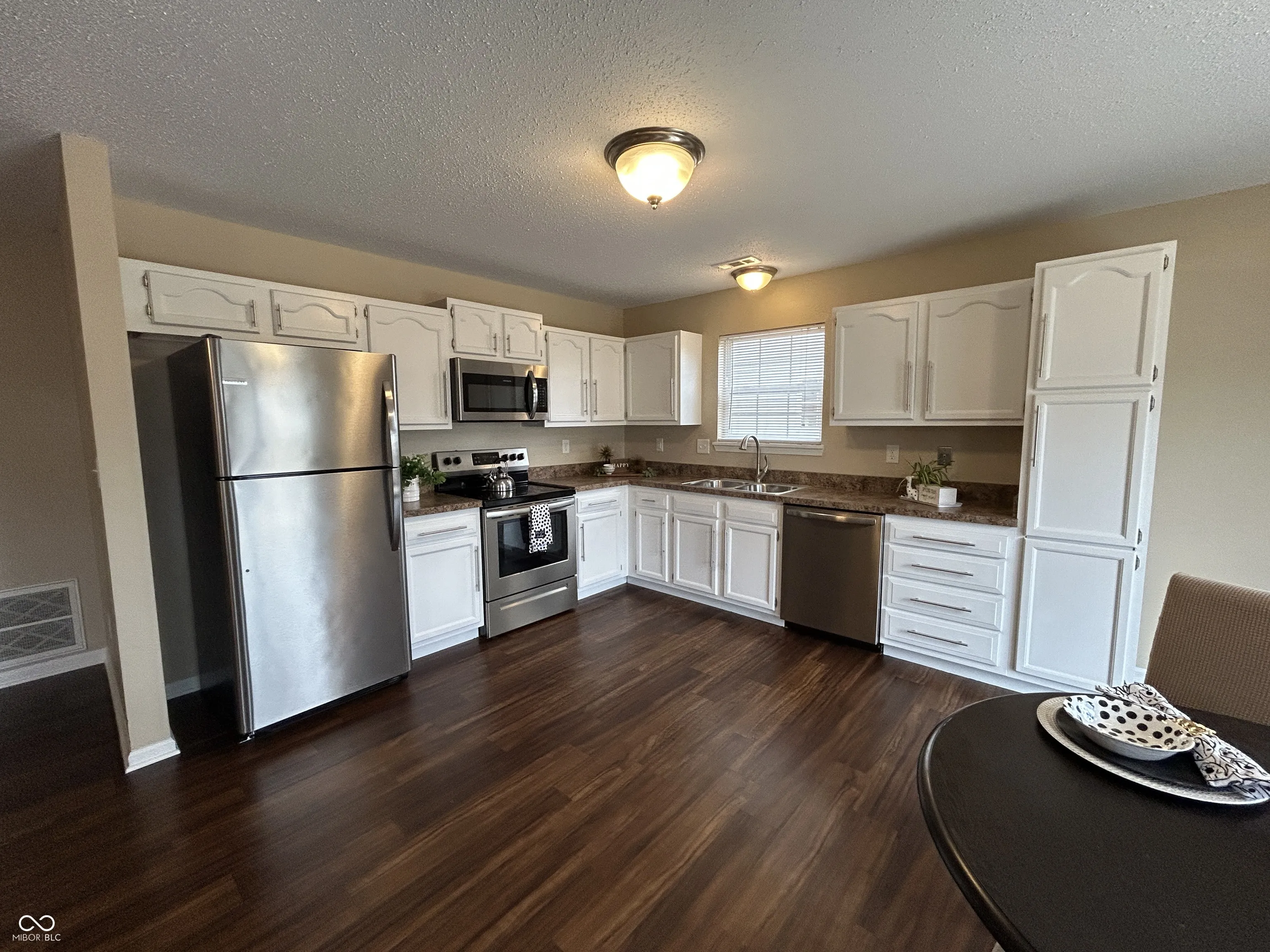 Updated home! Immediate possession! Fenced backyard! Nice neutral interior with luxury vinyl plank in family room, kitchen & dining area and carpet in bedrooms.