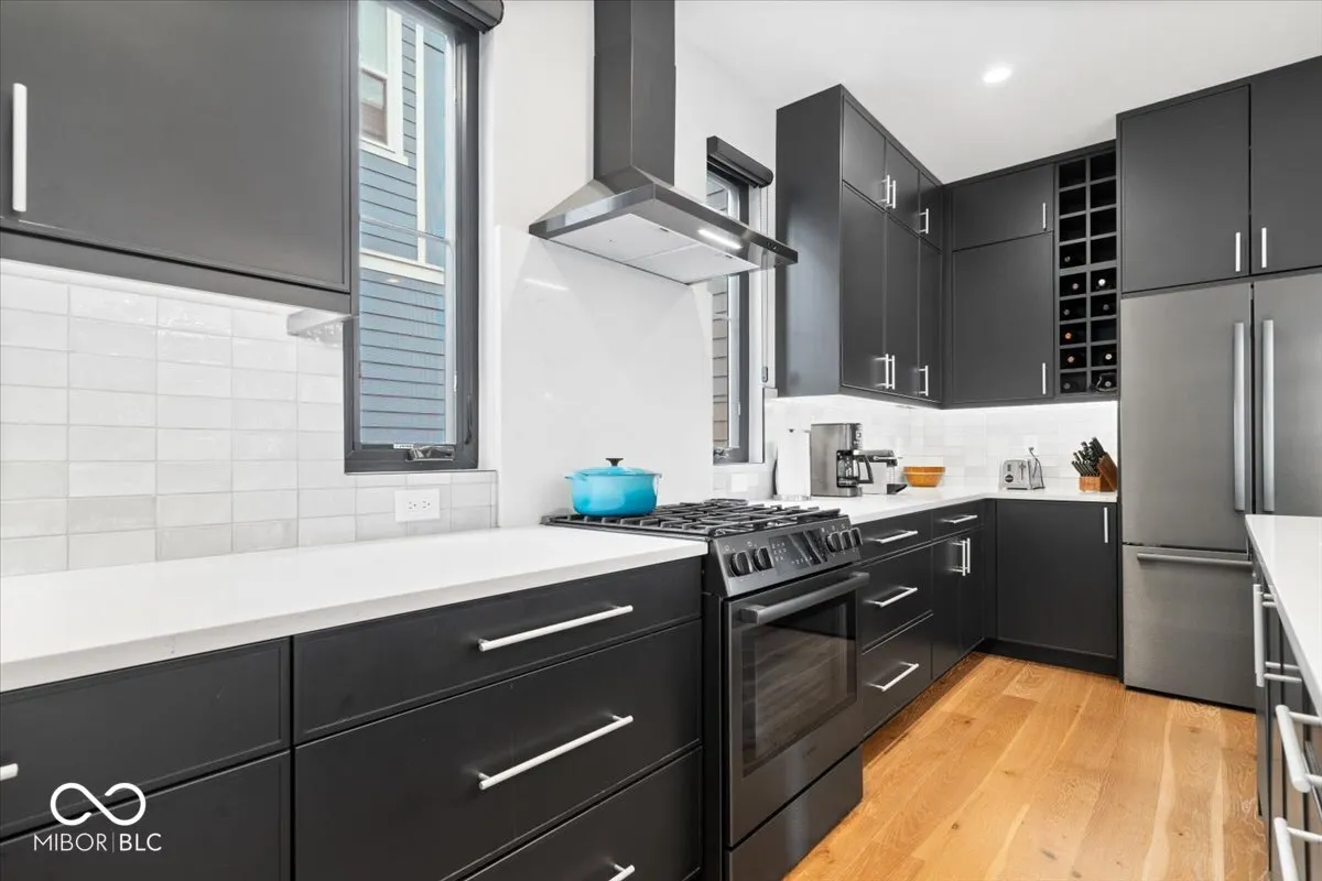 Sophisticated Urban Living at Its Finest Discover the perfect balance of modern elegance and everyday comfort in this thoughtfully designed home, built in 2021 by The ReDevelopment Group and designed by Demerly Architects. With 4 bedrooms, 3.5 baths, and over 3,000 sq ft of meticulously finished living space, this home offers luxurious features at every turn. Step inside to find 9 ft ceilings, black frame Andersen windows, and rich hardwood flooring throughout. The spacious living room boasts an oversized wood-burning fireplace, and the gourmet kitchen is a chef’s dream with upscale cabinetry, Bosch appliances, and luxury Delta faucets. The primary bedroom is a sanctuary with an oversized walk-in shower, perfect for unwinding after a long day. The home is equipped with Carrier HVAC, and a Kinetico Soft Water and Filtration System. Enjoy outdoor living on the composite front porch or covered back deck. The rare 3-car garage and fully fenced courtyard are perfect for city living. Located directly adjacent to the Monon Trail and just a short walk or bike ride to Bottleworks and Mass Ave, this home offers convenience and luxury in a prime location.