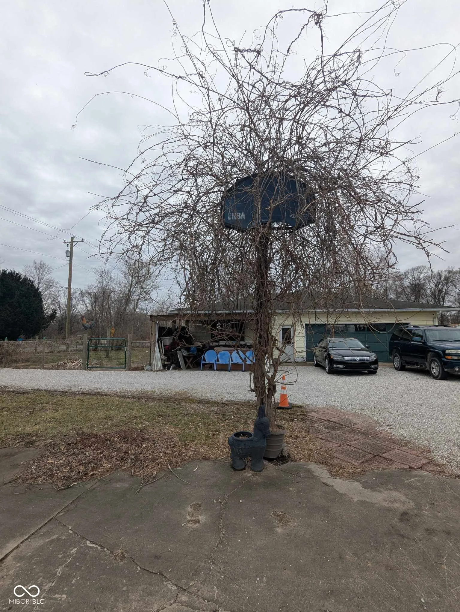 LOCATION & SPACE, this is “AS IS” but doesn’t need much. This charming home offers 4 bedrooms, 2 bathrooms, a cozy living room with a gas log fireplace, and beautiful hardwood floors in some rooms, with a three-car HEATED garage over an acre of land with a convenient passthrough driveway. The fenced-in yard is perfect for your pets, surrounded by mature trees, fruit bushes, and even a basketball hoop that Larry Bird once played on. The home is filled with natural light, making it perfect for houseplants, and there’s a covered front porch where you can enjoy your morning coffee. You’ll also find a separate office, a laundry room with plenty of space, and a basement that offers extra storage or the opportunity to create something special. There’s a wooded area at the back, where wildlife loves to roam. Priced to sell- let’s make it yours!