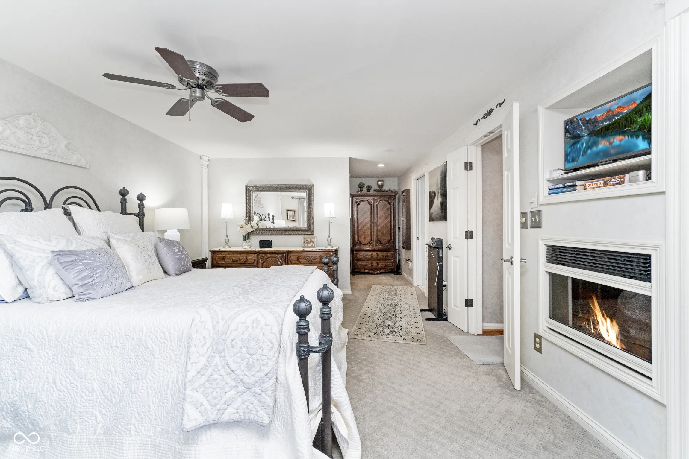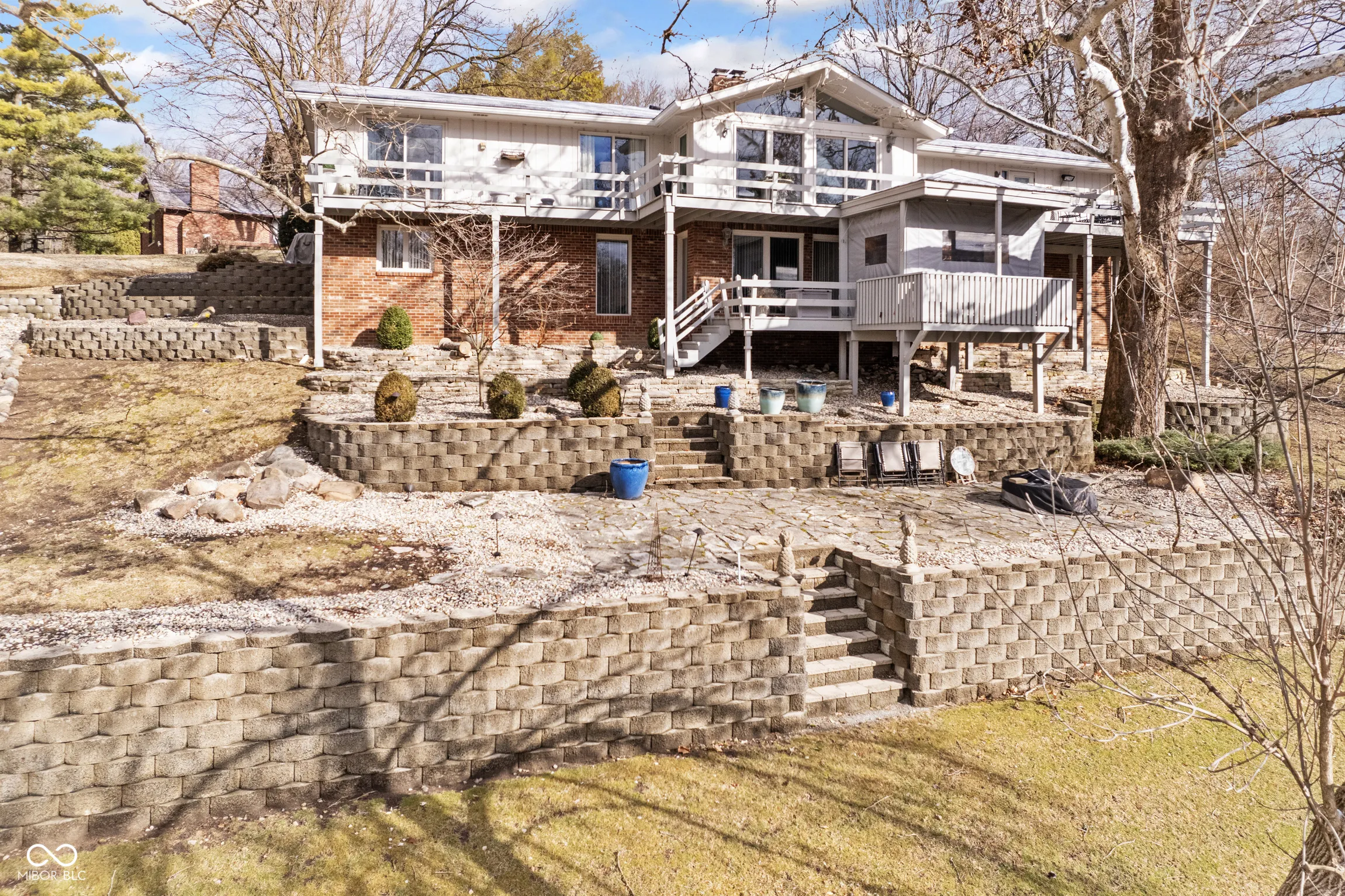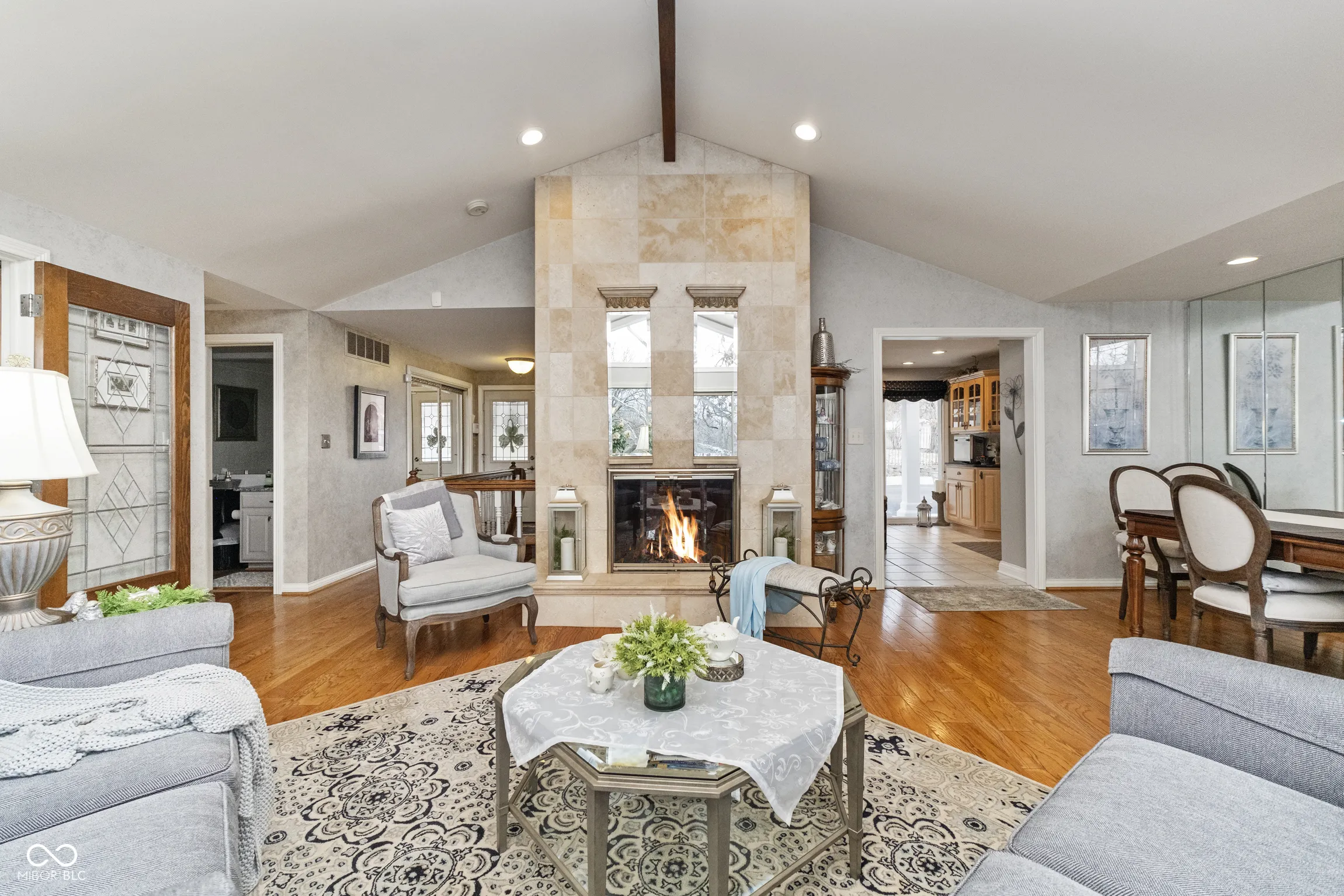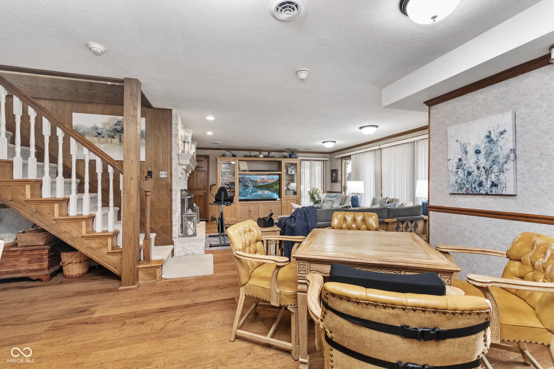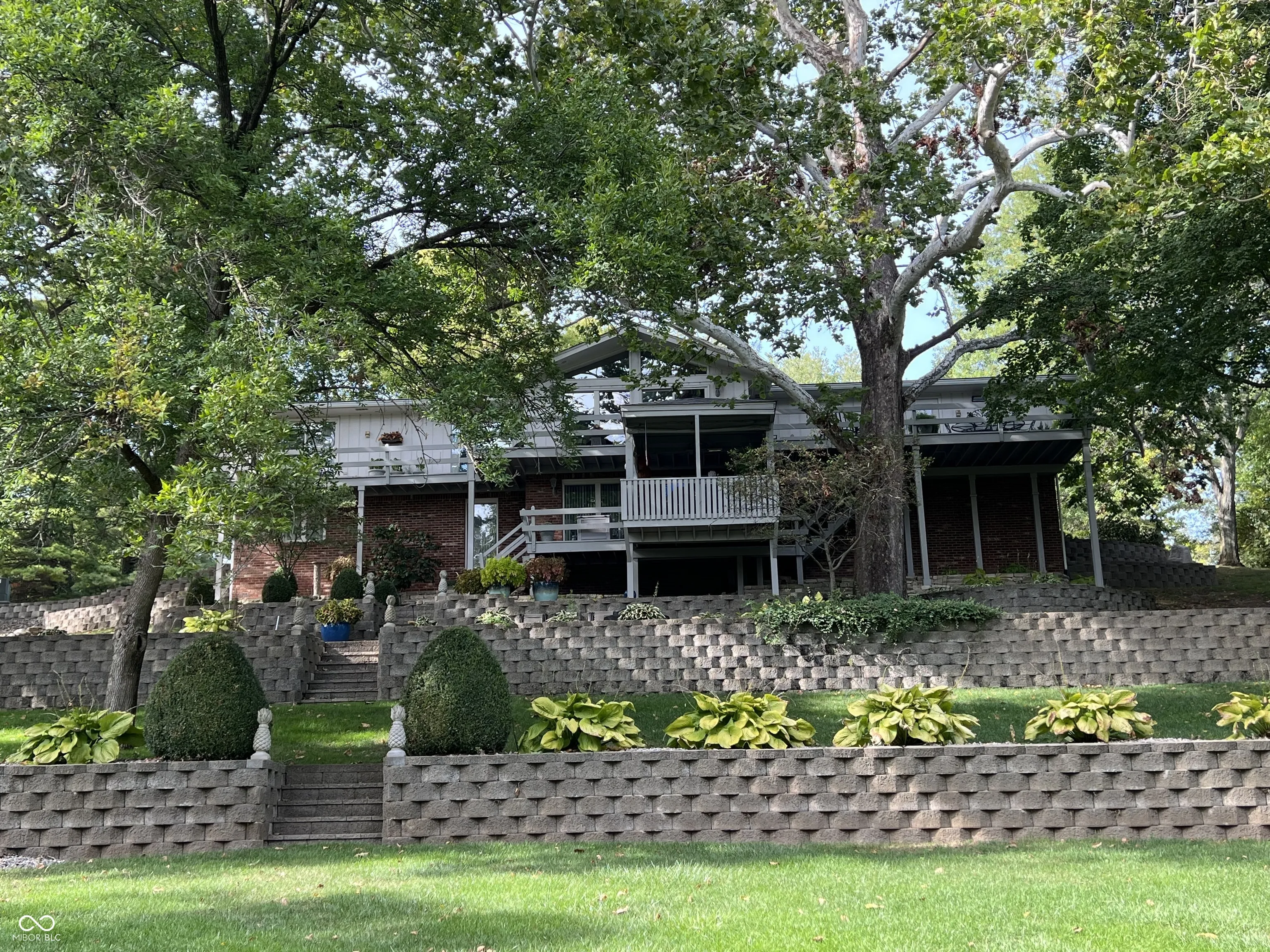 Welcome to this spectacular 3376 sq ft home, where comfort and elegance meet. Situated in a serene setting for a private feel, this home boasts a perfect blend of luxurious features and functional spaces, ideal for both entertaining and relaxing. The Great Rm/Dining Rm is open & inviting with hardwood floors, doors leading to the deck, & a striking wood-burning travertine tile fireplace as the centerpiece…perfect for cozy evenings. The Primary Bedroom Suite is a true retreat featuring a cozy electric fireplace, glass doors leading to a tranquil deck, and a luxurious ensuite bathroom. Enjoy the large walk-in shower, whirlpool/jetted tub, two separate vanities, & an impressive walk-in closet. The kitchen is a chef’s dream with white maple cabinets, ample cabinet and counter space, a center island, and all appliances included. Also on the main level is the Den/Office which has lovely white maple cabinets/built-ins, making this space perfect for work or study. The lower level features the spacious & stylish Family Rm with hardwood floors & a gas log fireplace, creating a warm, inviting atmosphere for family time or entertaining guests. Also on the lower level is a Laundry Rm/Exercise Rm: Versatile space that combines function and convenience, offering plenty of room for laundry, as well as a dedicated area for exercise. For your outdoor enjoyment, you can spend time on any one of the multiple decks. Two of the decks are covered decks, one with heat lamps and a fan for year-round enjoyment. Also, a gas fire pit area – perfect for gathering with family and friends. Extra features include a spacious garage with two separate doors with openers, a floor drain, epoxy floors, and abundant storage space for all your needs.There is also an irrigation system & gutter/leaf guards.