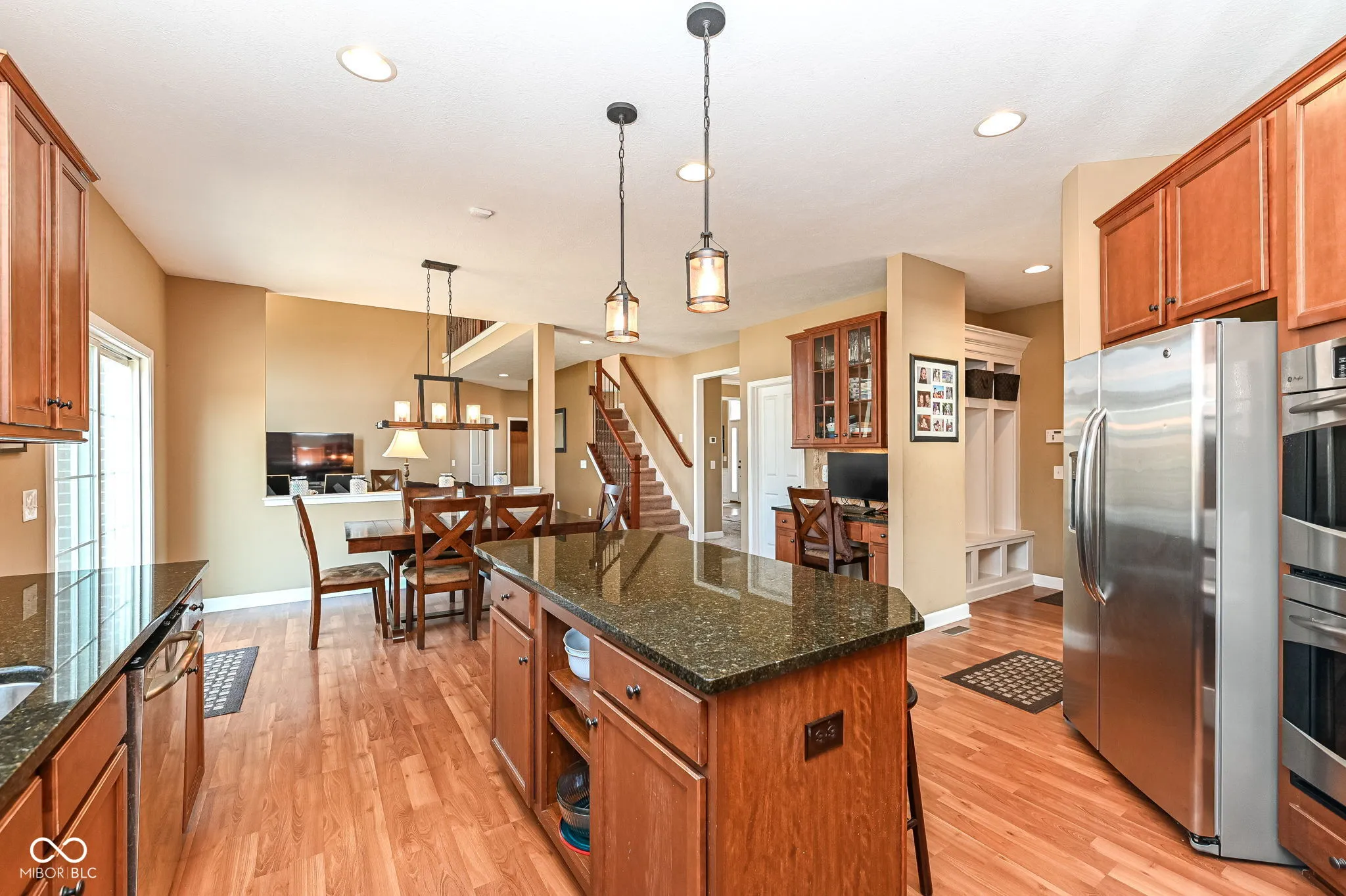 Stunning Family Home in Desirable Geist Area. This home is nestled in Strongbow Gate along E 104th Street adjacent to Geist Elementary School, this 6-bedroom home boasts 5 full bathrooms and offers a perfect blend of elegance, convenience, and functionality. The gourmet kitchen includes a handy planning desk, stainless steel appliances, and granite tops. Don’t miss the private backyard with a low-maintenance patio, lush landscaping, and mature trees. Enjoy easy access to walking and biking trails connecting to Geist Elementary school, Flat Fork Creek Park, Bee Camp Creek Trailhead Park, and the Geist Greenway trail system. The Rain Bird irrigation system makes maintaining this wonderful outdoor space effortless. Step inside to discover the thoughtfully designed living spaces, including a first-floor bedroom with en suite bath, ideal for guests or multigenerational living. The second-floor owner’s retreat features a newly remodeled bathroom with brand-new walk-in shower and frameless door. The massive finished basement is a true showstopper! Included is a versatile flex room for billiards or home gym, a tiled area with full size refrigerator, custom cabinetry and wet bar rough-in. ln addition, the basement includes a bedroom and full bathroom as well as a 7.1 home theater system, ideal for watching the big game or simply relaxing with family and friends. This home is conveniently located in the award-winning Hamilton Southeastern Schools and is just steps from shopping and dining along Olio Road providing quick access to I-69, I-70 and I-465. ln the current market this home won’t last long. Schedule your private showing today.