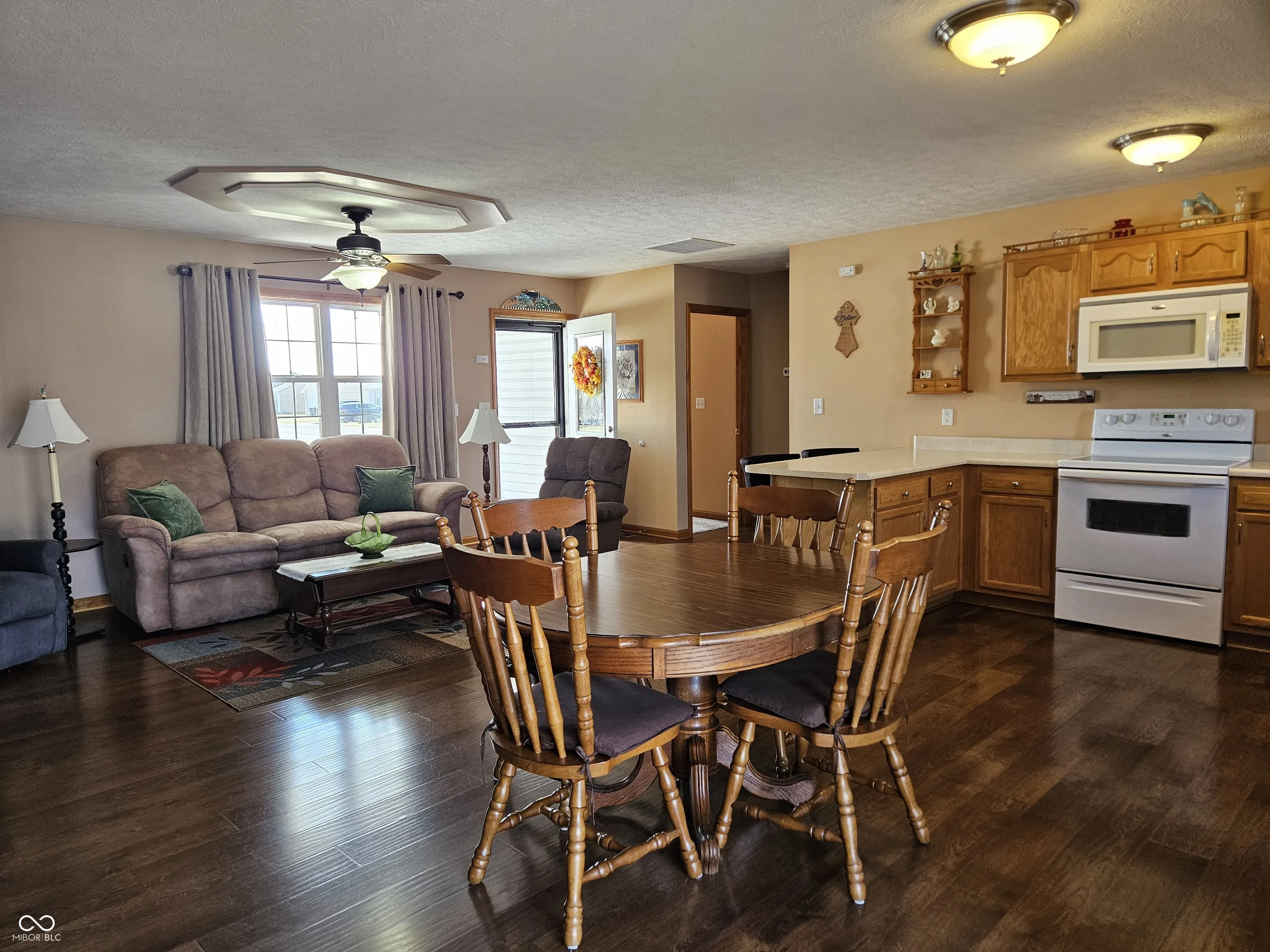Immaculate 1 level nestled on a spacious corner lot. A cozy front porch invites guests to your home. You’ll enjoy a large back deck located just off the dining area via patio doors. There is a mini barn just off the deck. The 2 Car attached garage features finished walls & attic storage via pull down stairs and it is located just off the laundry room. The mechanicals are out of site in the garage closet. You’ll enjoy the open concept, split bedroom floor plan. The hall bath is handicap accessible and features tiled floor & double wide shower. The master bedroom features a walk in closet & full bathroom. The kitchen is fully equipped and provides a breakfast bar, dining area and whirlpool appliances & opens to the living room. The flooring throughout the main part of this home gives the appearance of hand scraped hardwood and the bedrooms all have cushy plush carpeting. This home has been well cared for and is in move in condition.