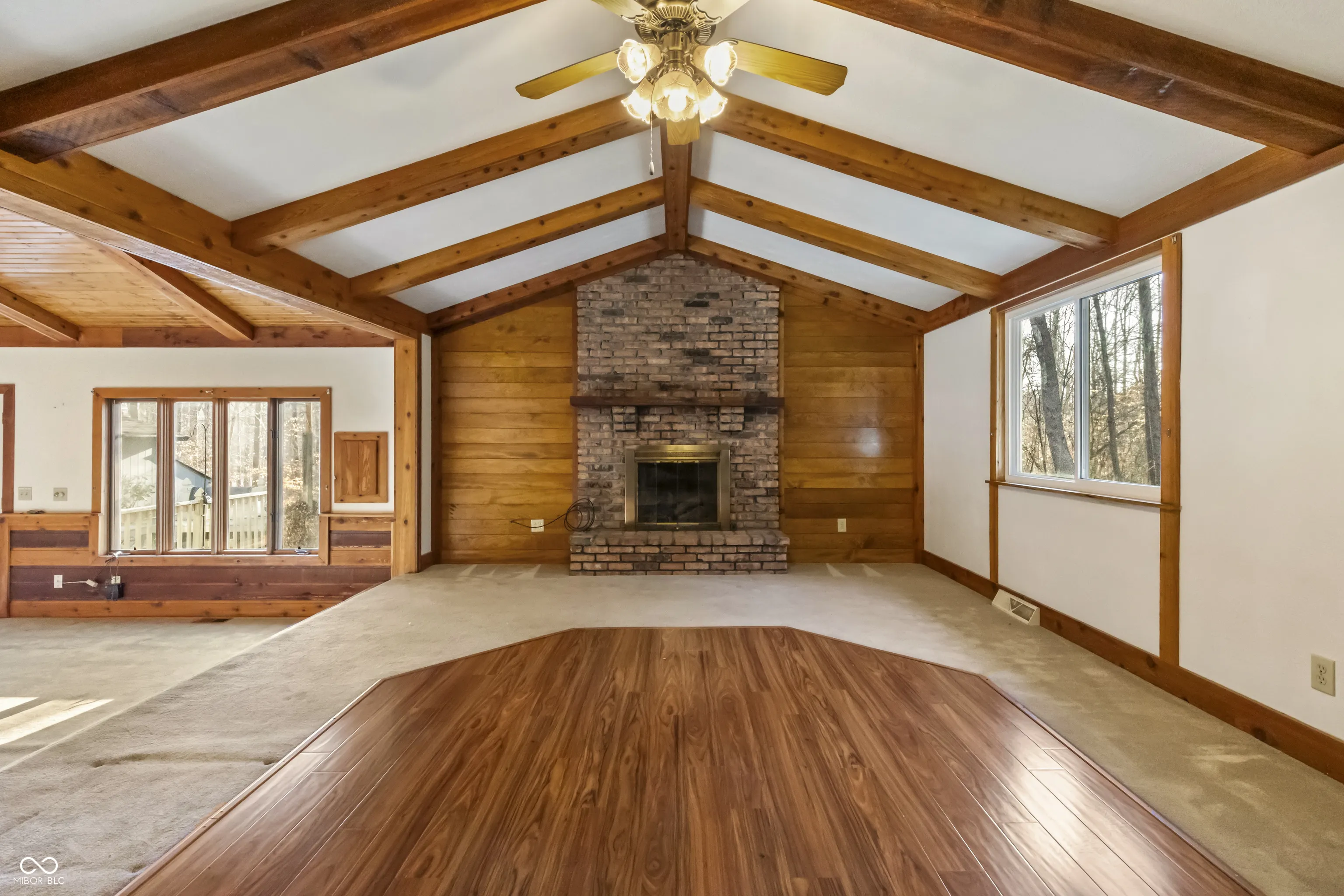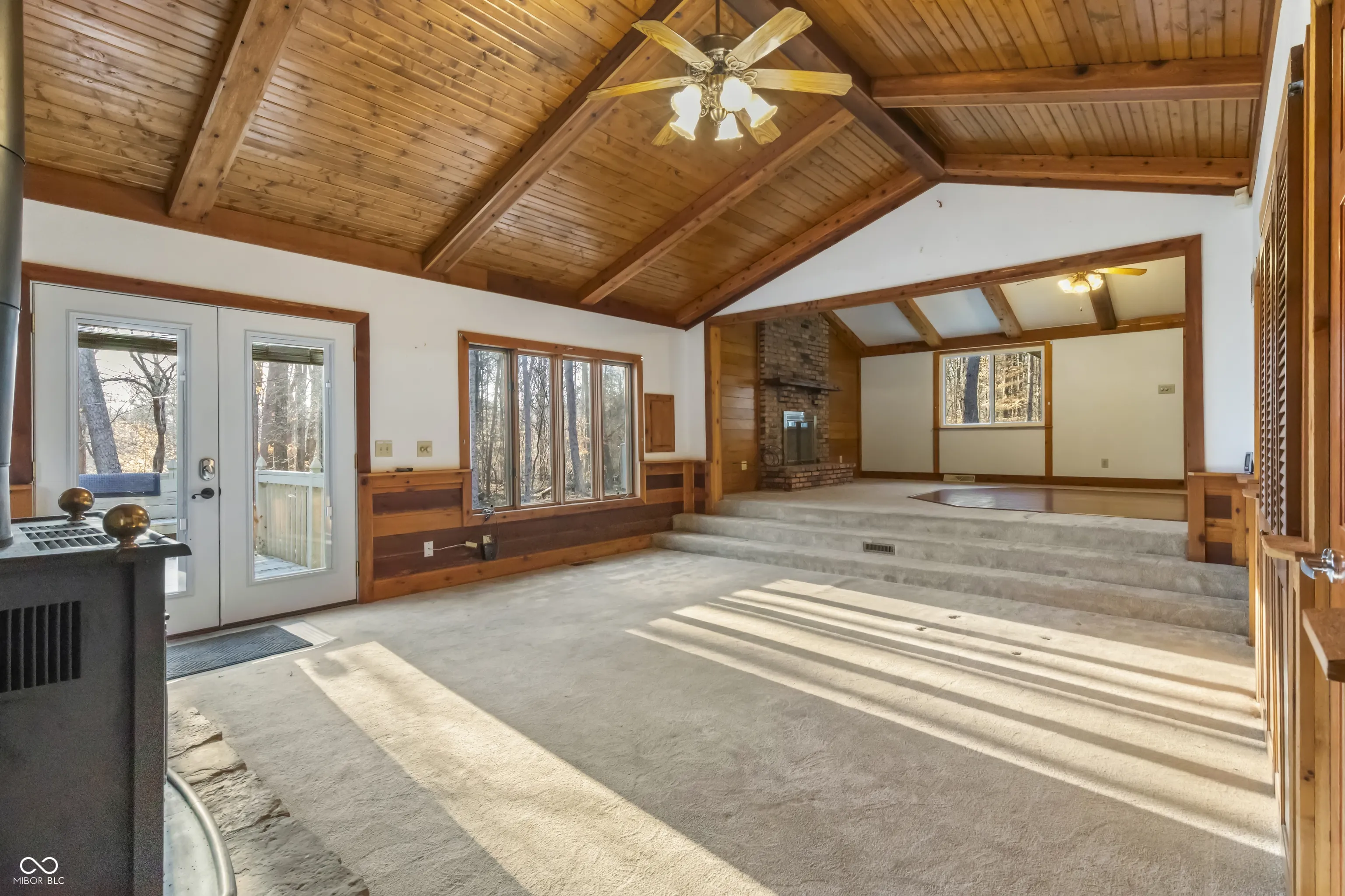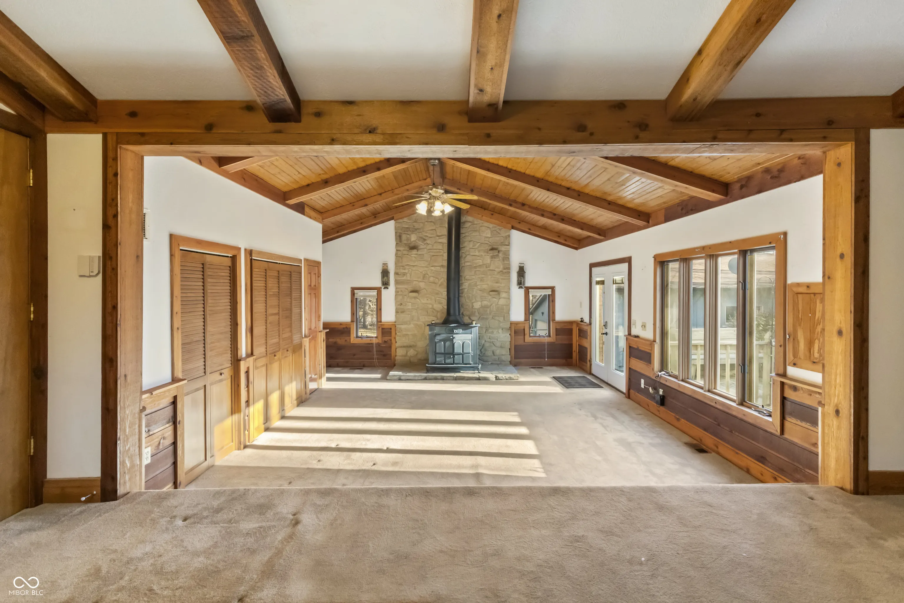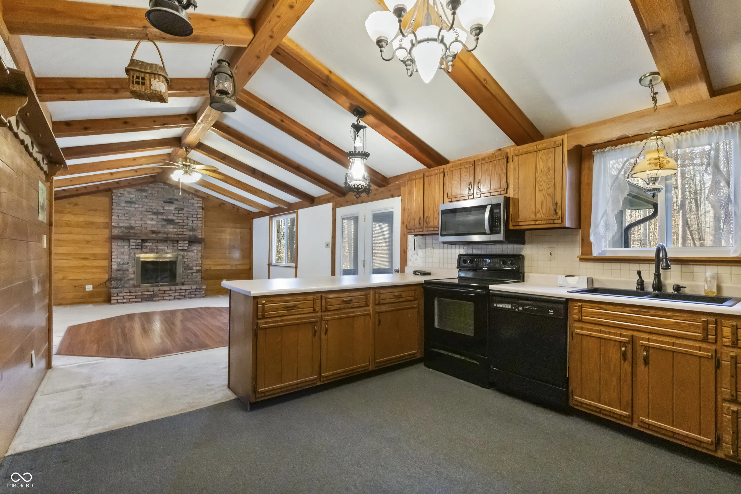 Just in time for summer! Charming Lamb Lake retreat nestled on almost one acre wooded lot with full lake privileges to enjoy all that 500 acre Lamb Lake Association has to offer – swimming, boating, water-skiing, bass fishing, private beach, hiking and diverse wildlife. This 3 bedroom, 2 full bath home has two fireplaces and a large kitchen open to the family room with views of the quiet, private wooded yard. Gorgeous rustic wood beams throughout multiple rooms. Home has multiple decks to enjoy the wildlife and serenity. Oversized fully finished/insulated, heated and air conditioned garage and workshop give space for all hobbies and lake activities. Newer Generac and gutter guards. Maintenance free boat dock can be rented from association based on availability.