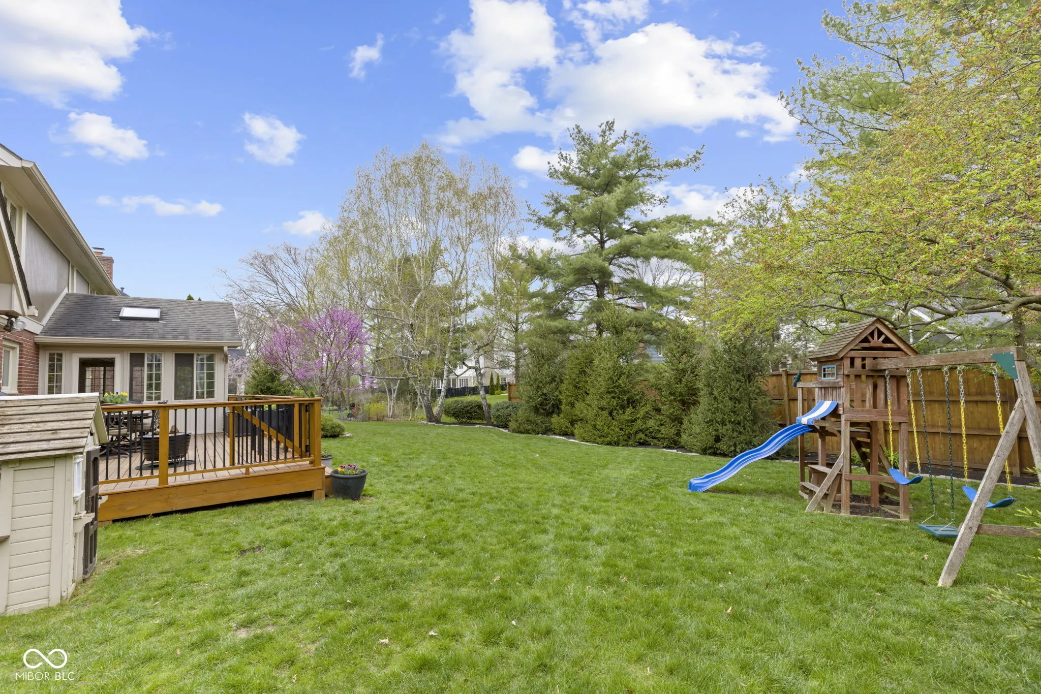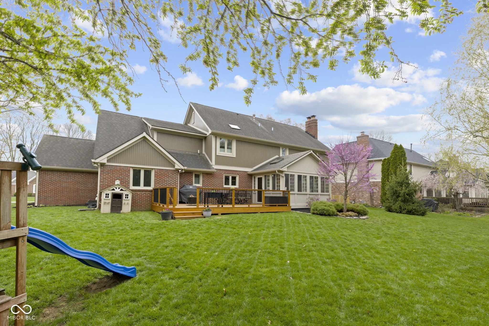 This stunning 5-bedroom, 3-bathroom full brick wrap home offers the perfect blend of elegance and functionality. The versatile main floor bedroom can serve as a bedroom, office or hobby room, conveniently paired with a full bath. The family room is warm and inviting, complete with a gas fireplace and built-ins and a formal dining room with crown molding. The gourmet kitchen boasts tiled floors, granite countertops, a pantry, stone backsplash, a built-in double oven, and a separate cooktop-a dream for any home chef. Step outside to the spacious 3-seasons room with vaulted ceilings, leading to an expansive deck (2022)-ideal for enjoying serene mornings and crisp spring evenings. The finished basement with 9′ ceilings offers a fantastic space for recreation or family movie nights. There’s one feature in this home that sets it apart. It is located off the primary bedroom, you have to schedule a showing to see this, you will absolutely love it! Irrigation system to maintain the lush lawn and radon system for peace of mind. Spacious 3 Car garage. Numerous updates: vinyl windows, driveway (2023), water heater (2023), furnace & AC (2016), Primary and upstairs bathrooms remodeled (2020)