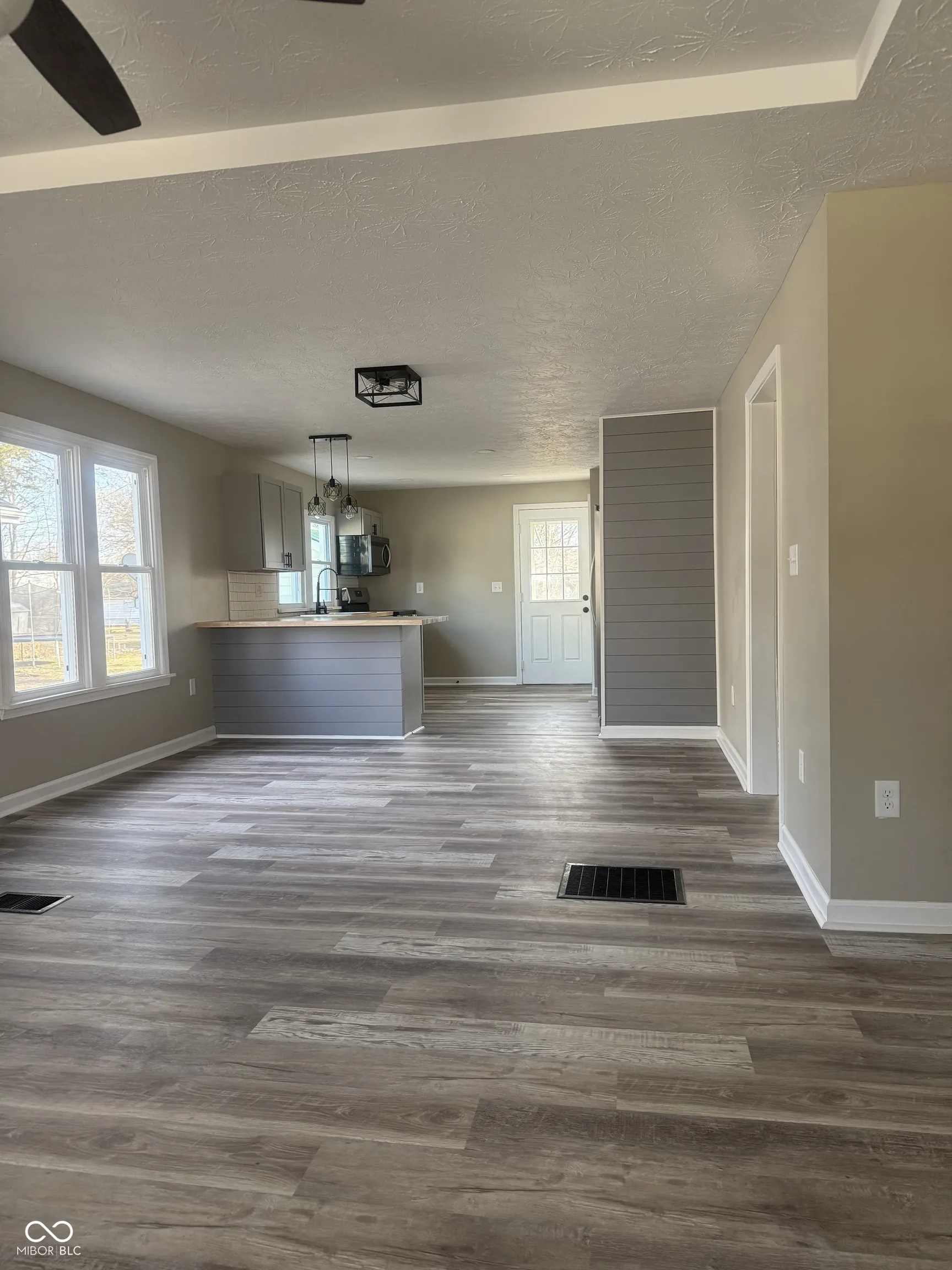 Completly remodelled home. The open concept is a plus, it makes the home feel larger than it appears. The large living room and dinning combo are great for entertainment. Home is ready for your personal touch. The large closets in the bedrooms are a plus. Great start up home. Why rent when you can have a completed remodel home for the same payment as an apartment. The back yard is very large and the one car garage is great to keep your vehicle from the snowing months.
