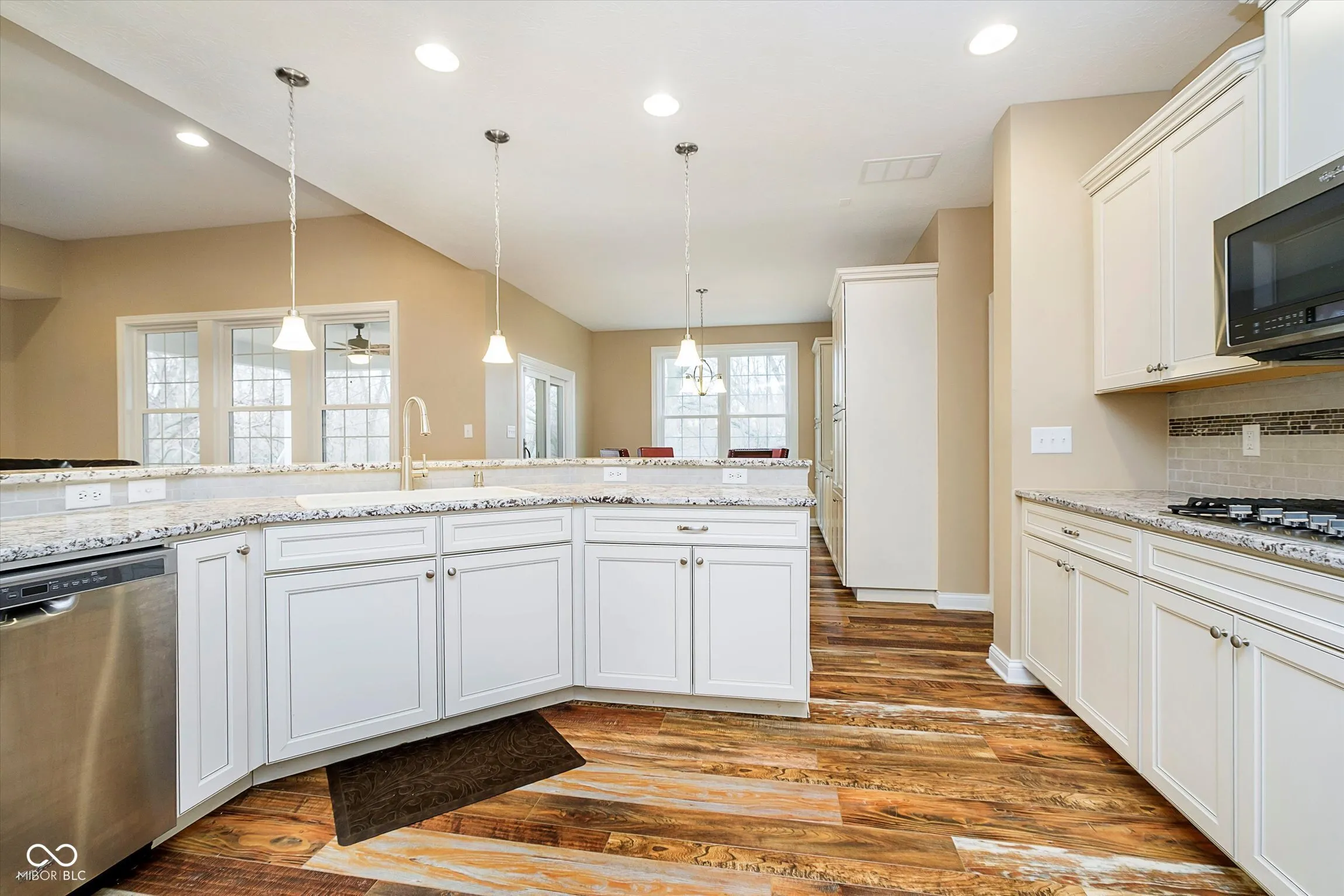 A special opportunity to own a beautiful ranch home with a walk-out basement in one of Noblesville’s most desirable Estates at Lochaven! Premium 1/2-acre lot overlooking protected land with mature trees, visible from the dining room, great room, kitchen and master suite makes privacy a welcome feature. The multilevel deck is accessible from the main floor kitchen and the basement for you to enjoy the fresh outdoors. This spacious open concept home includes a large kitchen with a gas cooktop, built-in double ovens, lots of cabinetry and a large pantry. The master suite has beautiful wood floors with an oversized walk-in shower, double vanity, and large walk in closet. In addition, there are two more bedrooms, full bath, half bath and a den/office. The walkout basement consists of a large open rec area with pool table and a large multipurpose room. A 4th bedroom suite – used as a fitness room – has a nicely decorated private full bath area and large closet. A gardener? There are four oversized raised garden beds watered by the full lot irrigation system. Big 3 car garage! The HOA has many amenities including 2 pools, 2 clubhouses, walking trails, and tennis/pickleball courts.