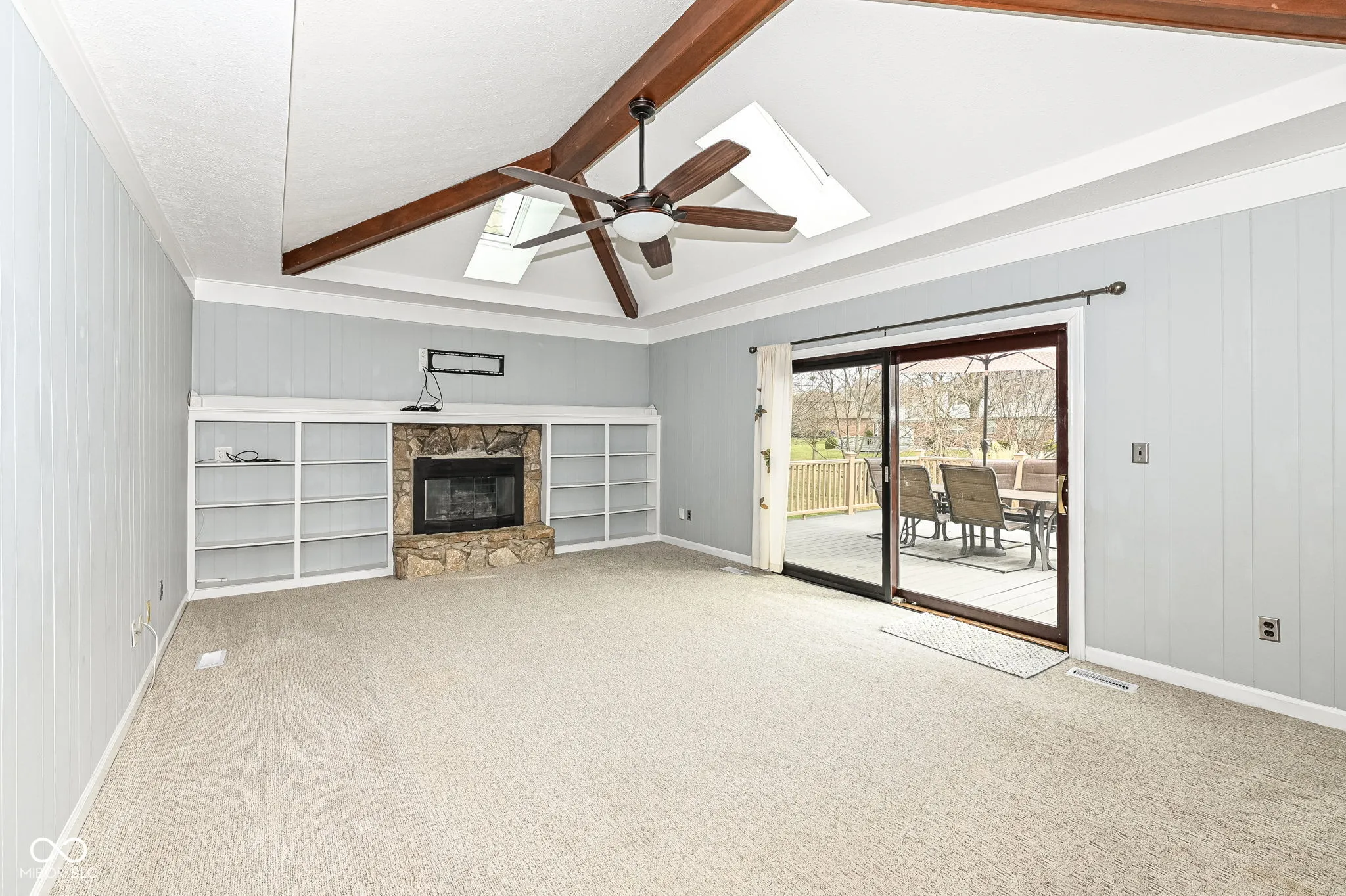 This 4 bedroom home sits on a large lot in a great central Carmel location! Large eat it kitchen with stainless steel appliances, lots of cabinets and counter space and big center island is perfect for family gatherings and entertaining guests. Spacious family room with gas fireplace and skylights. The living room provides extra flex space. Primary suite with walk in closet, dual sinks and full size shower. Good size secondary bedrooms and 3rd bedroom includes a murphy bed. Backyard features a large deck with Trex boards and patio overlooking a fenced in yard. Storage shed and playset included. 2 car finished garage with workbench and pull down stairs for attic access. Recent improvements include: New Roof & Siding (2021), New Attic Insulation & Gas Fireplace Insert (2022), New Furnace, New A/C, New Water Softener (2023). Easy access to schools, shopping, dining the Monon Trail and US-31!