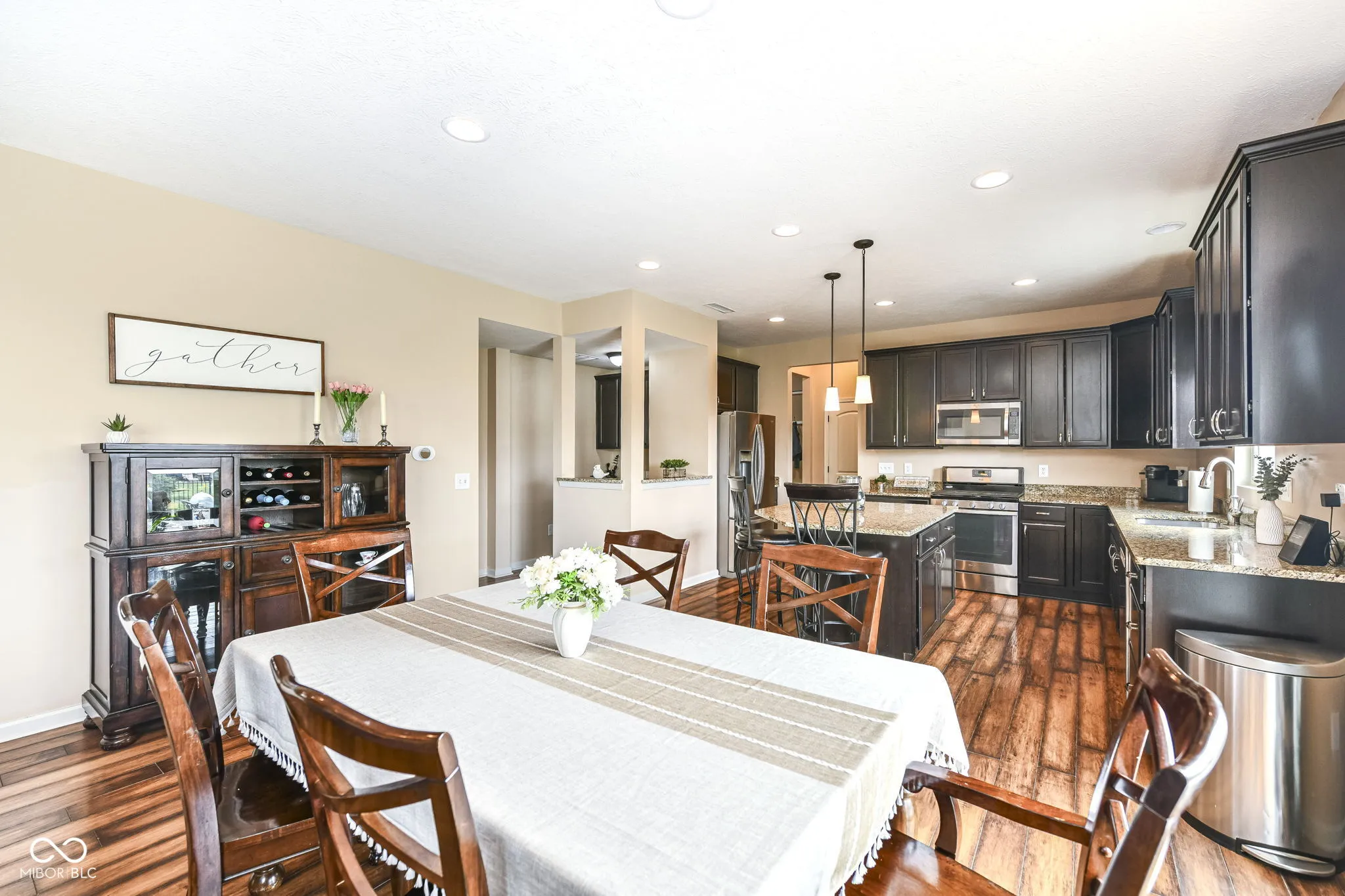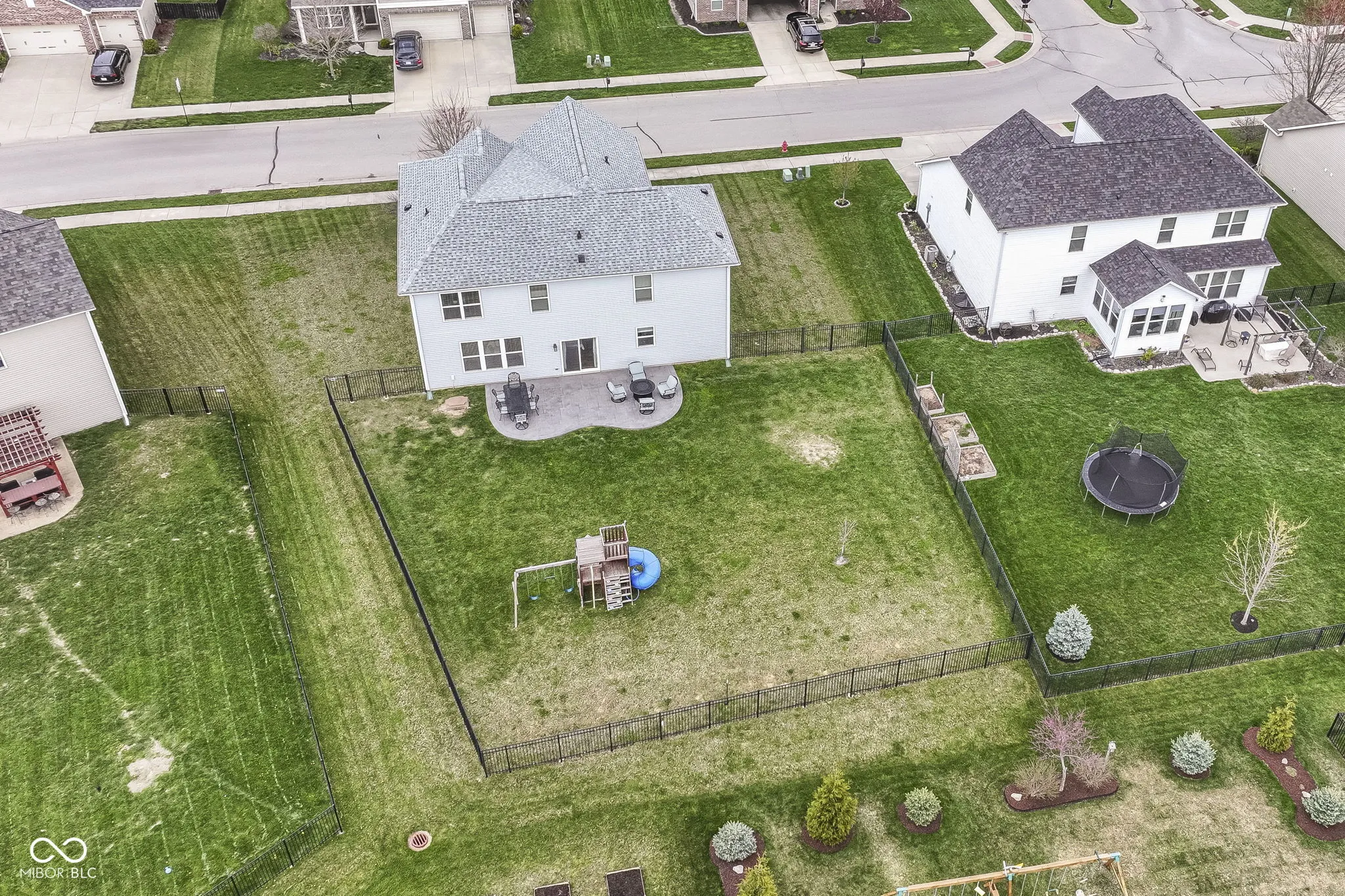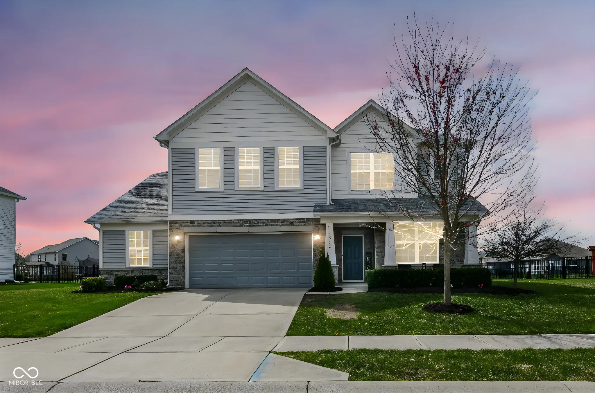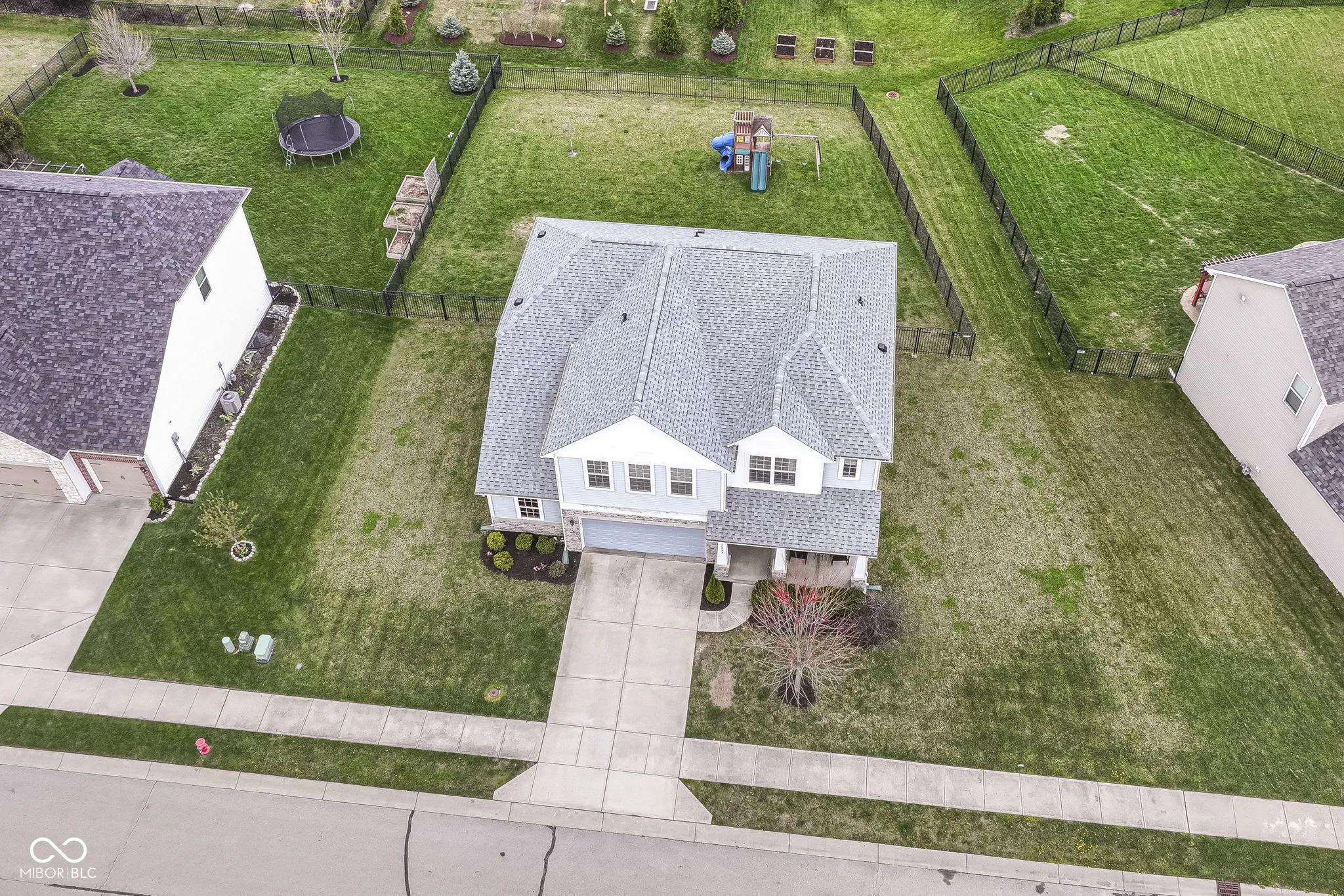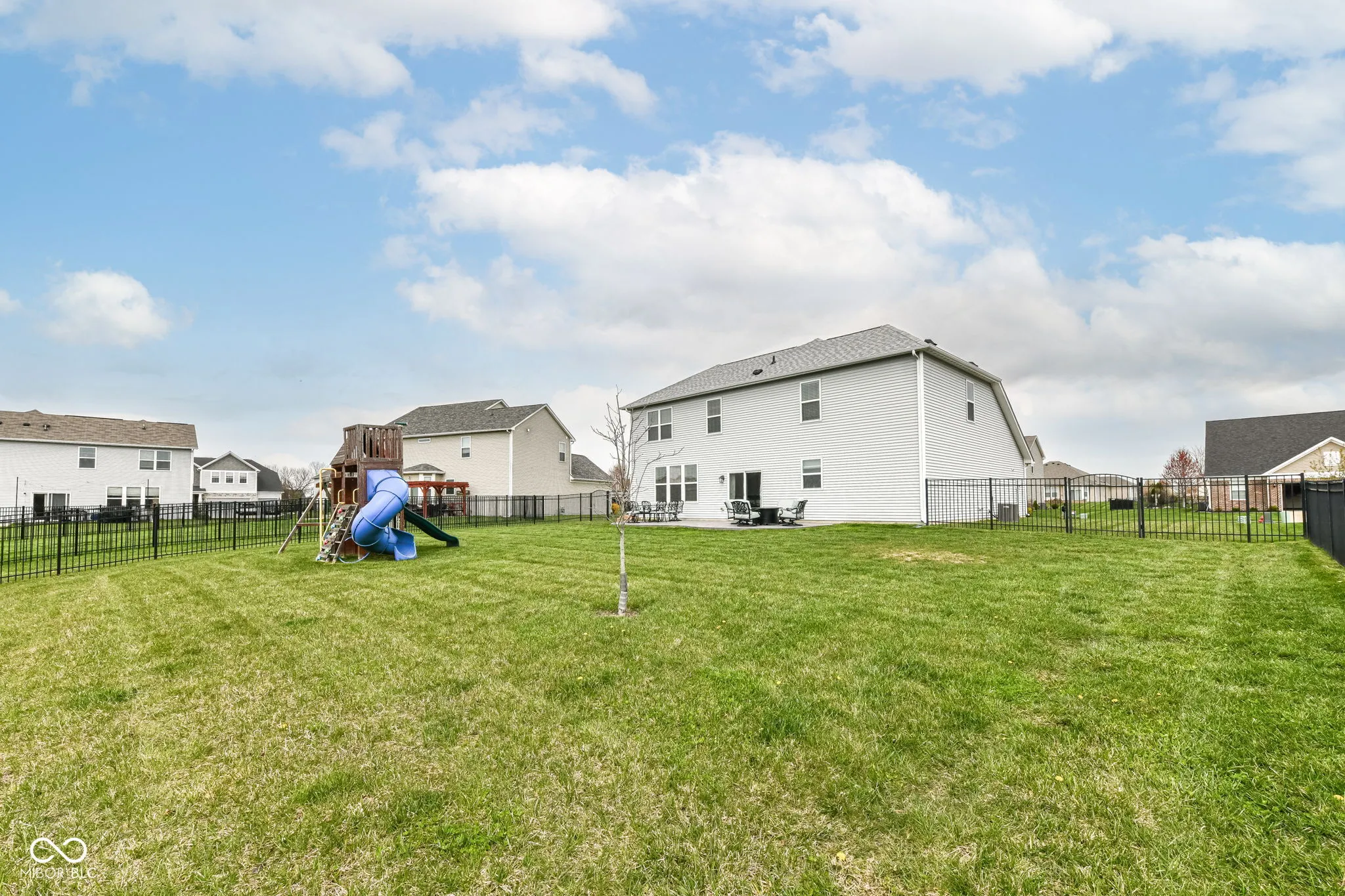 Immaculate home in popular Maple Knoll shows pride of ownership! Great curb appeal with multiple roof peaks and spacious front porch. Step inside the flexible Den/Study or Living Room that lies on the right; open concept floorplan features spacious Family Room with Fireplace that is open to large Kitchen featuring Lots of cabinets, warm granite countertops and an oversized pantry that will delight any cook! Pulte Planning Center directly off of the kitchen is so handy! Large upstairs laundry with lots of storage space; spacious Primary Suite includes separate tub/shower and walk in closet. Three additional bedrooms share the hall bathroom. AND a 19×19 upstairs Rec/Play Room has flexible functions – let your imagination be your guide! Fully fenced rear yard (2017) plus new patio (2021) = great entertaining and relaxing space. New roof (2024), Water heater (2024). Neutral blinds throughout. Washer/Dryer included and garage fridge and swing set to remain. Oversized garage with bump out is virtually same size as 3 car; great for bikes, lawn equipment, you name it!