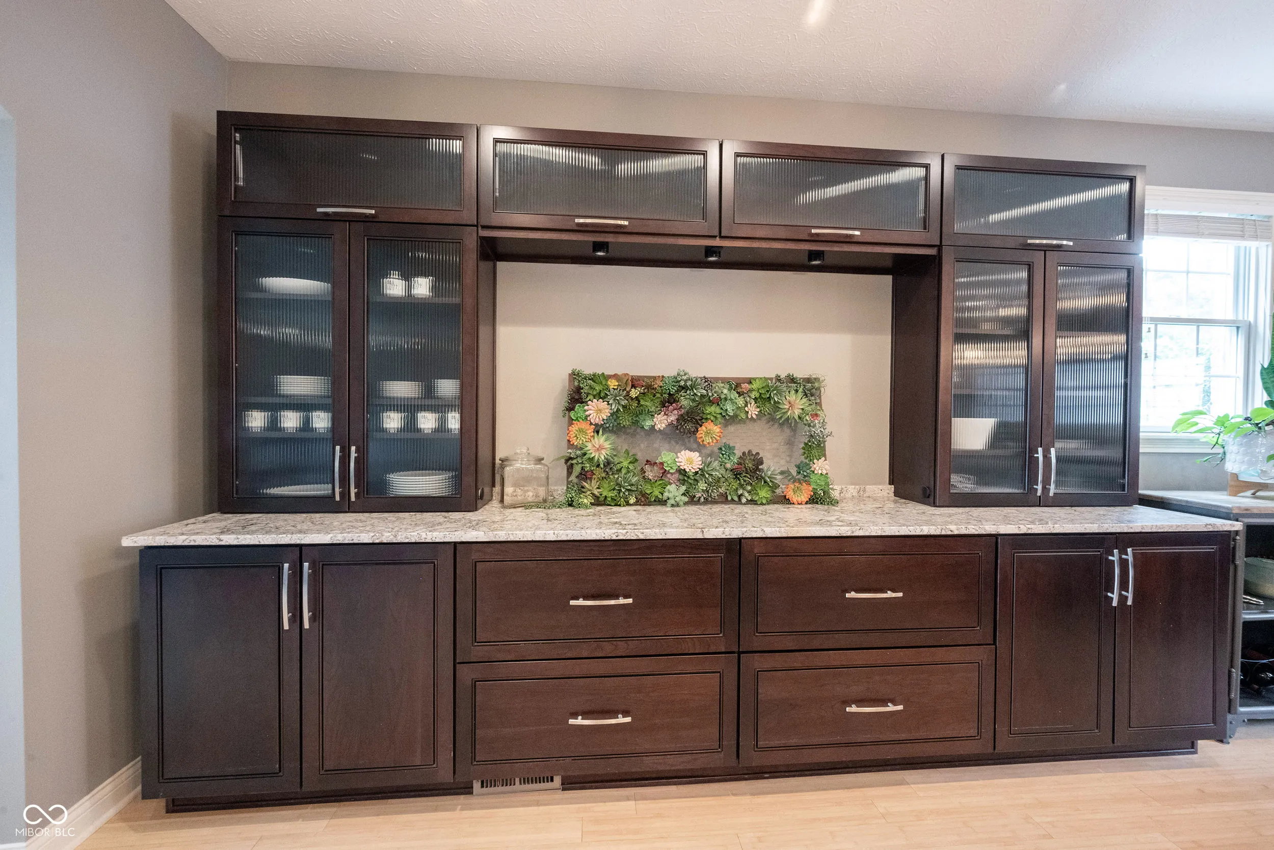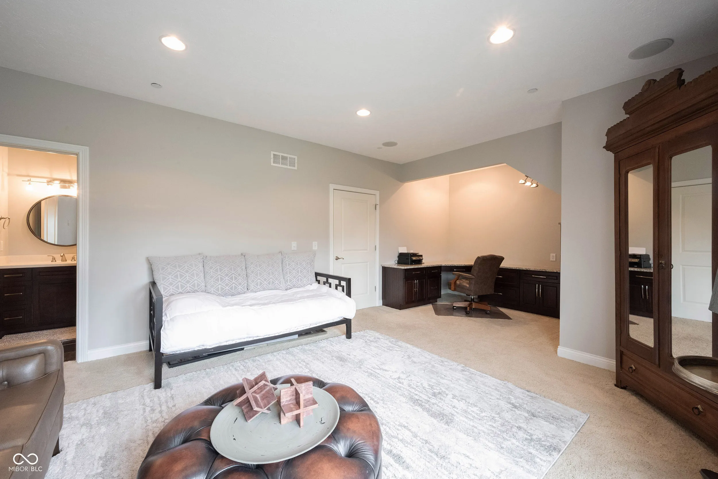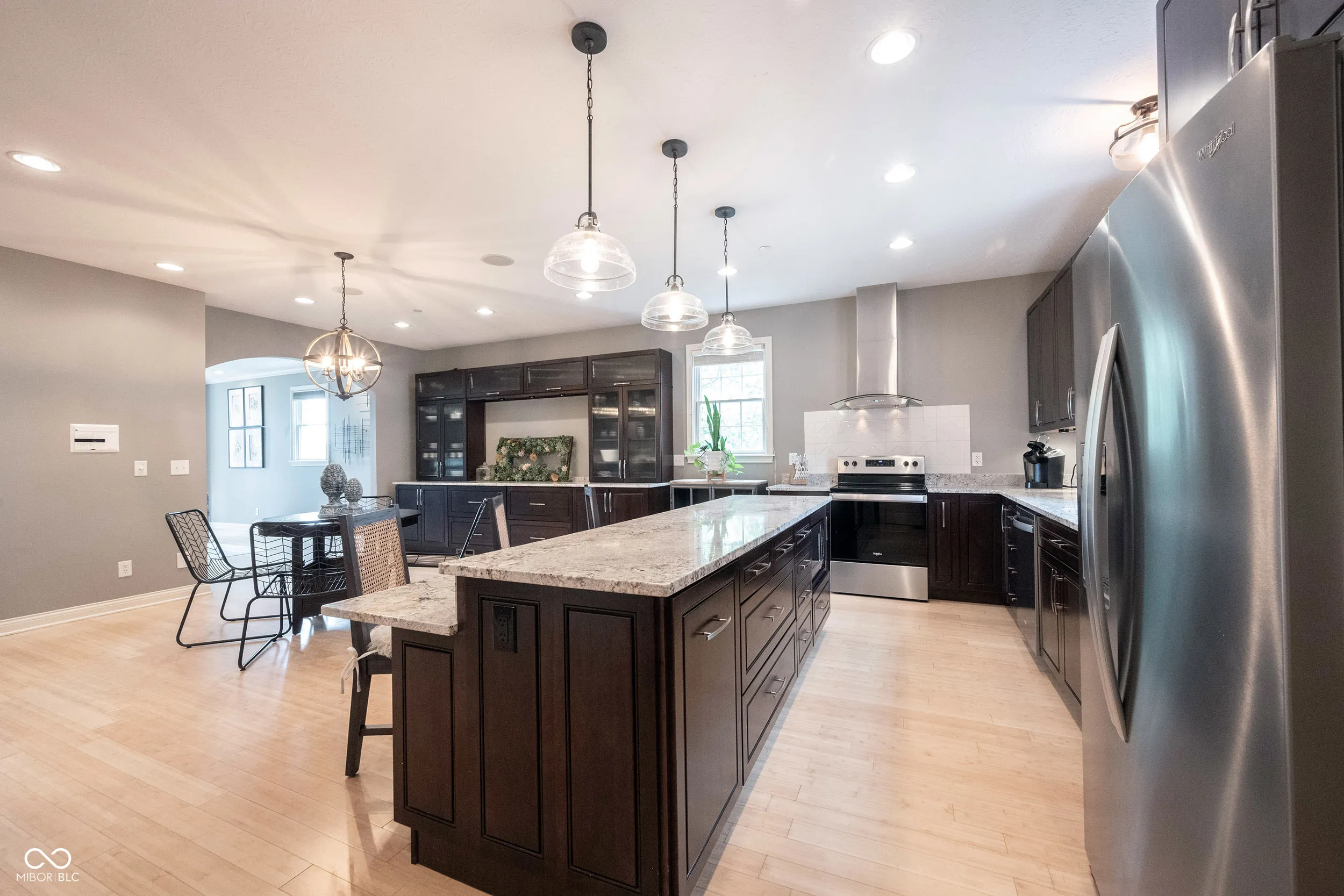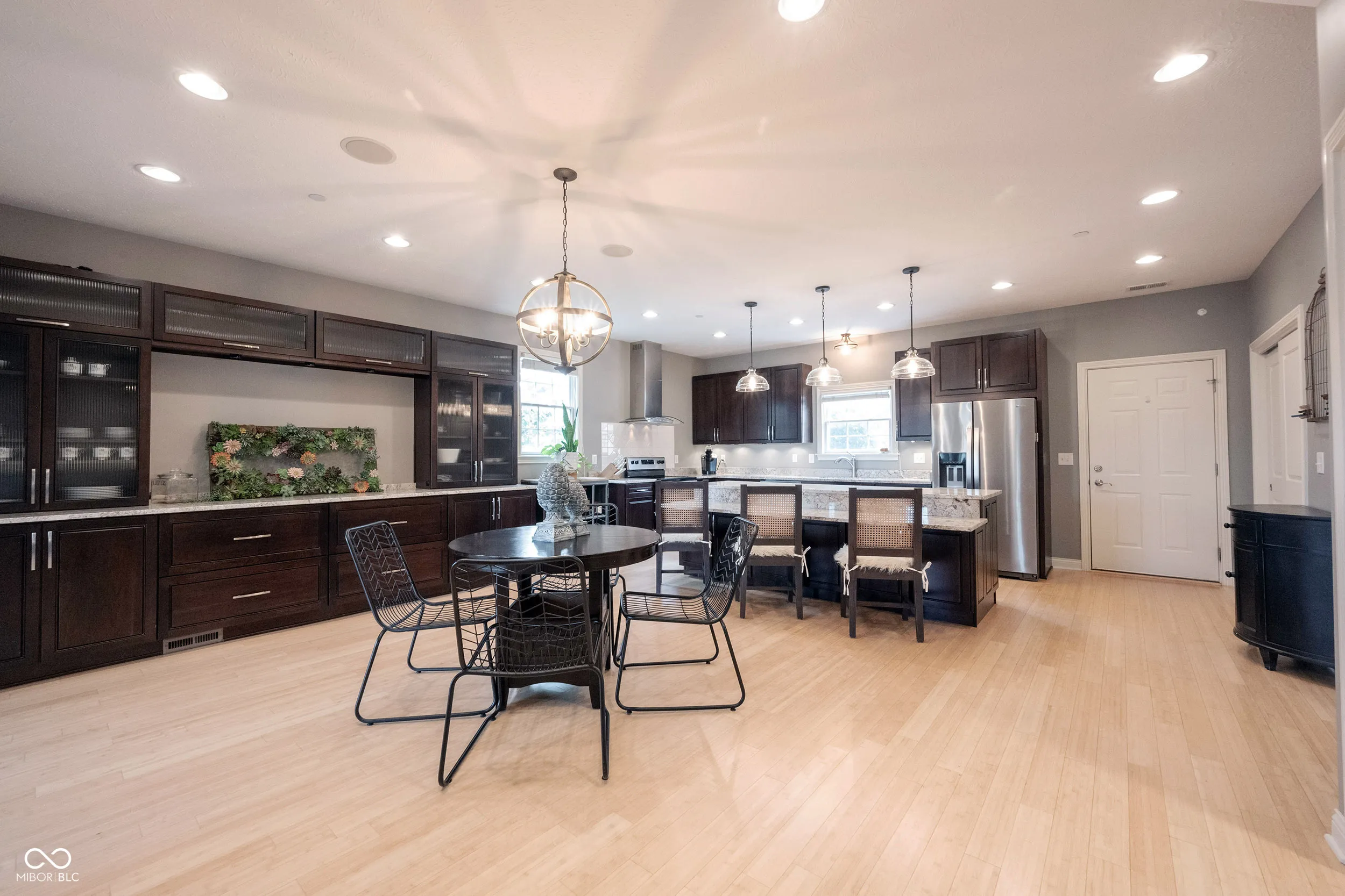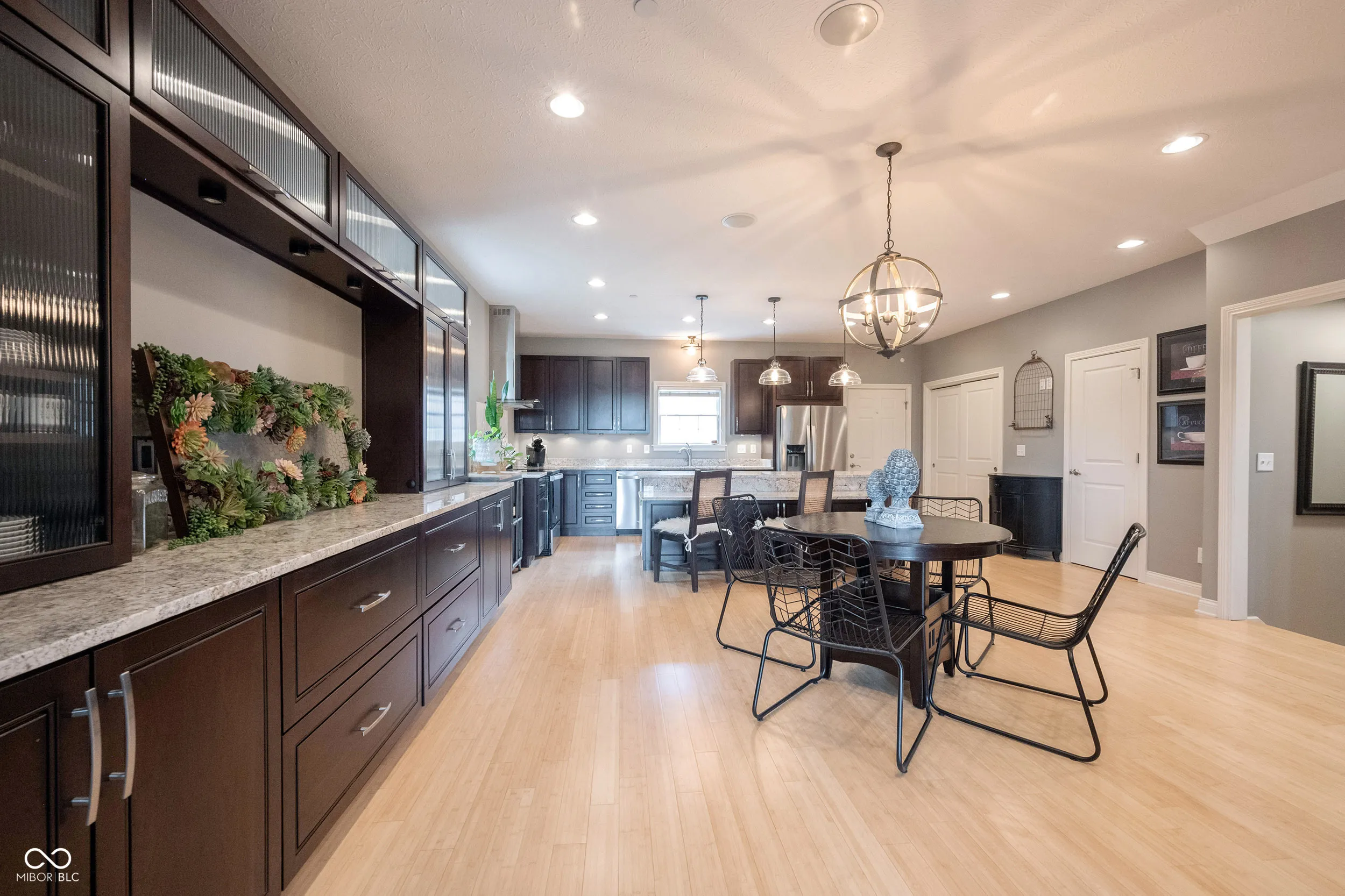 Beautiful loaded townhome, walkable to downtown Carmel Arts and Design. This home features 3 bedrooms and 3.5 baths! Amazing built ins in the 3rd bedroom and in the dining area. Large main floor bedroom with a recent closet addition and its own full bath. This room is on the same floor as the garage. The next floor has a huge kitchen with loads of counter space and cabinets with a bar area that make this kitchen an entertainers dream. Bamboo flooring and high ceilings and an Open dining space with custom wall built ins make this spacious and grand. Living space with lots of windows and light. This is an end unit that allows for extra windows on the side of the building. Upstairs is the main bedroom with an en suite that will be the envy of your friends. Dual closets and sinks along with heated floors make this spa like space so desirable for you. Well maintained unit with so much to offer to you. Close to restraints. and main roads and everything you will need. You can tell the quality of this home. Welcome home!