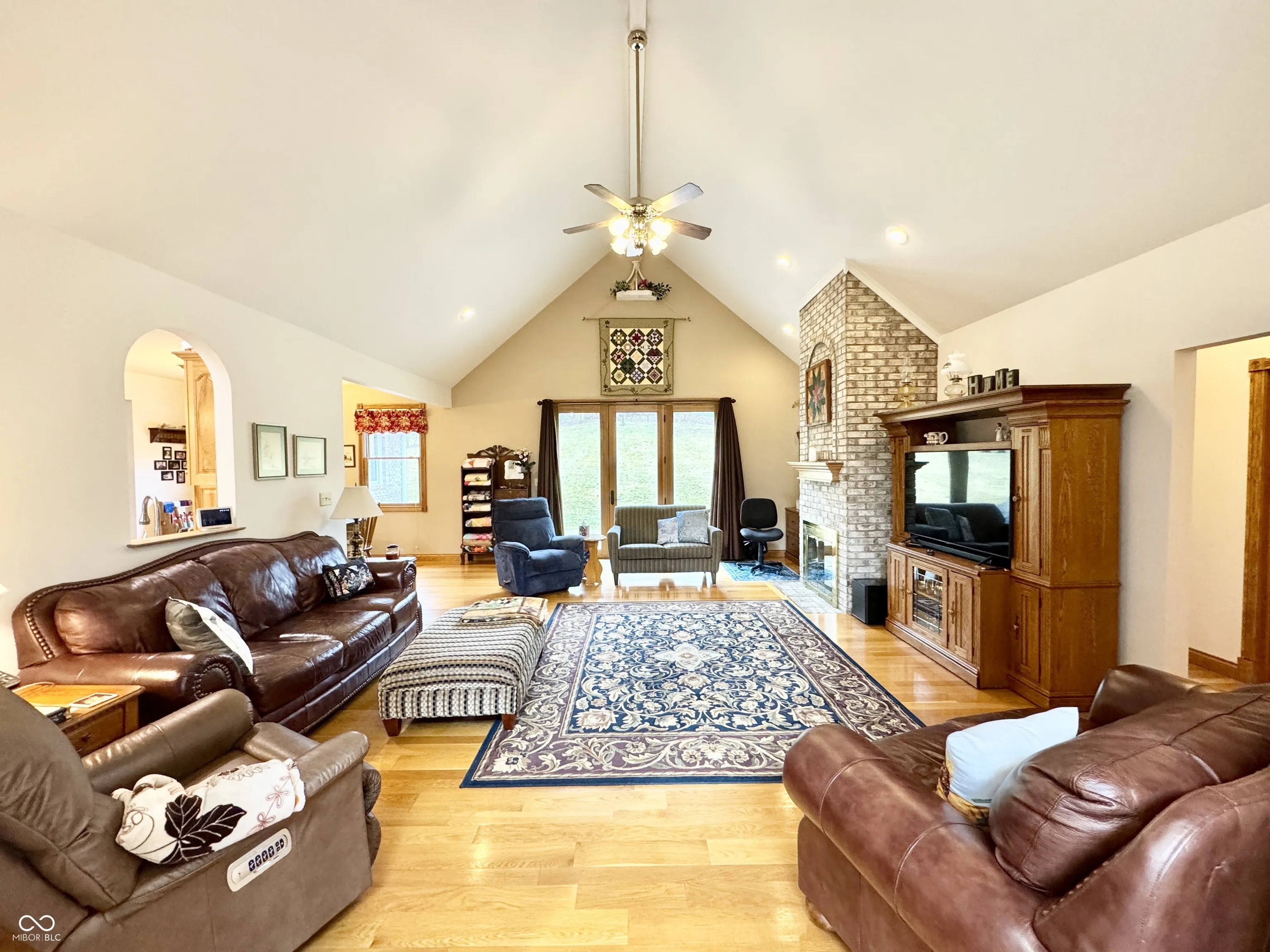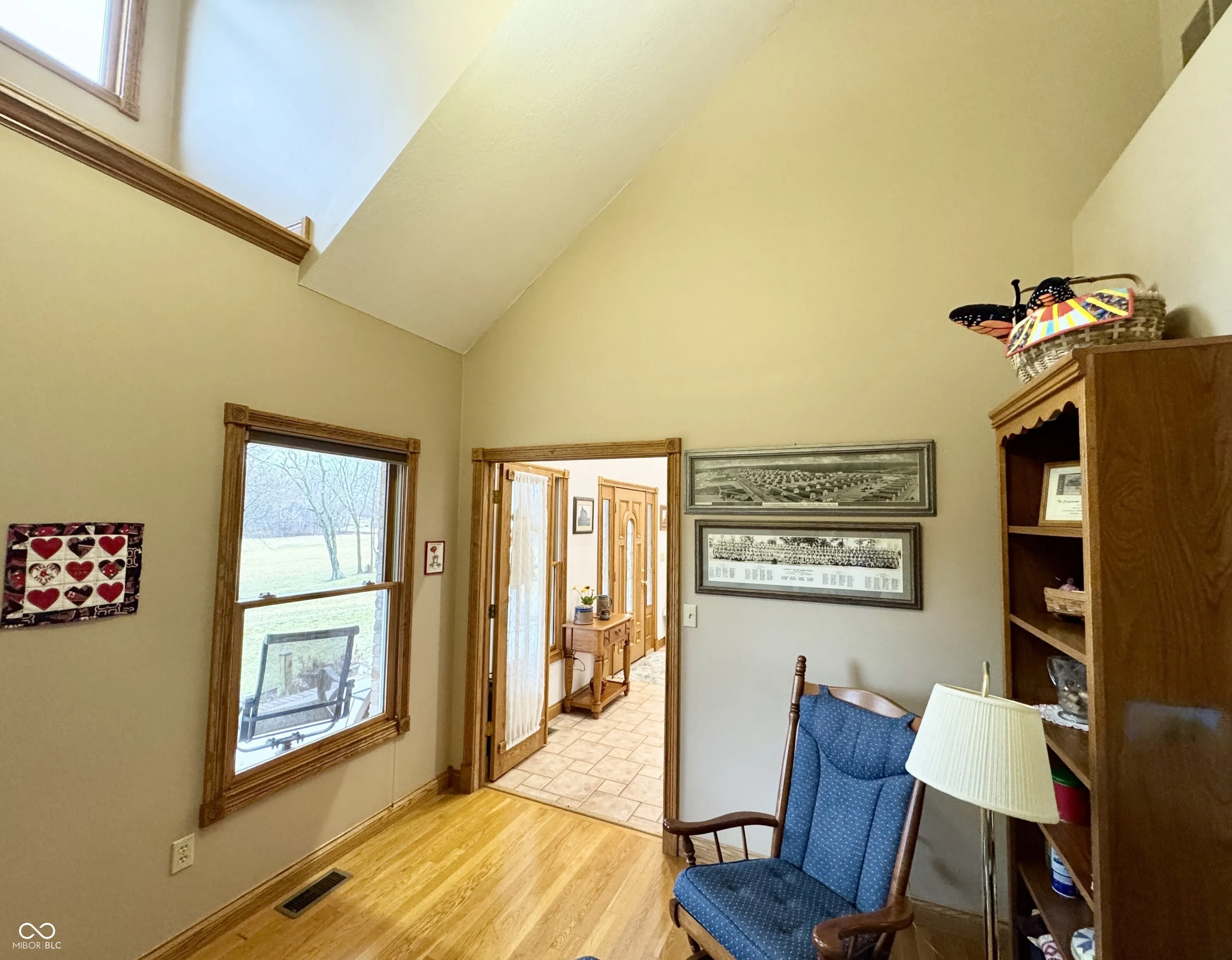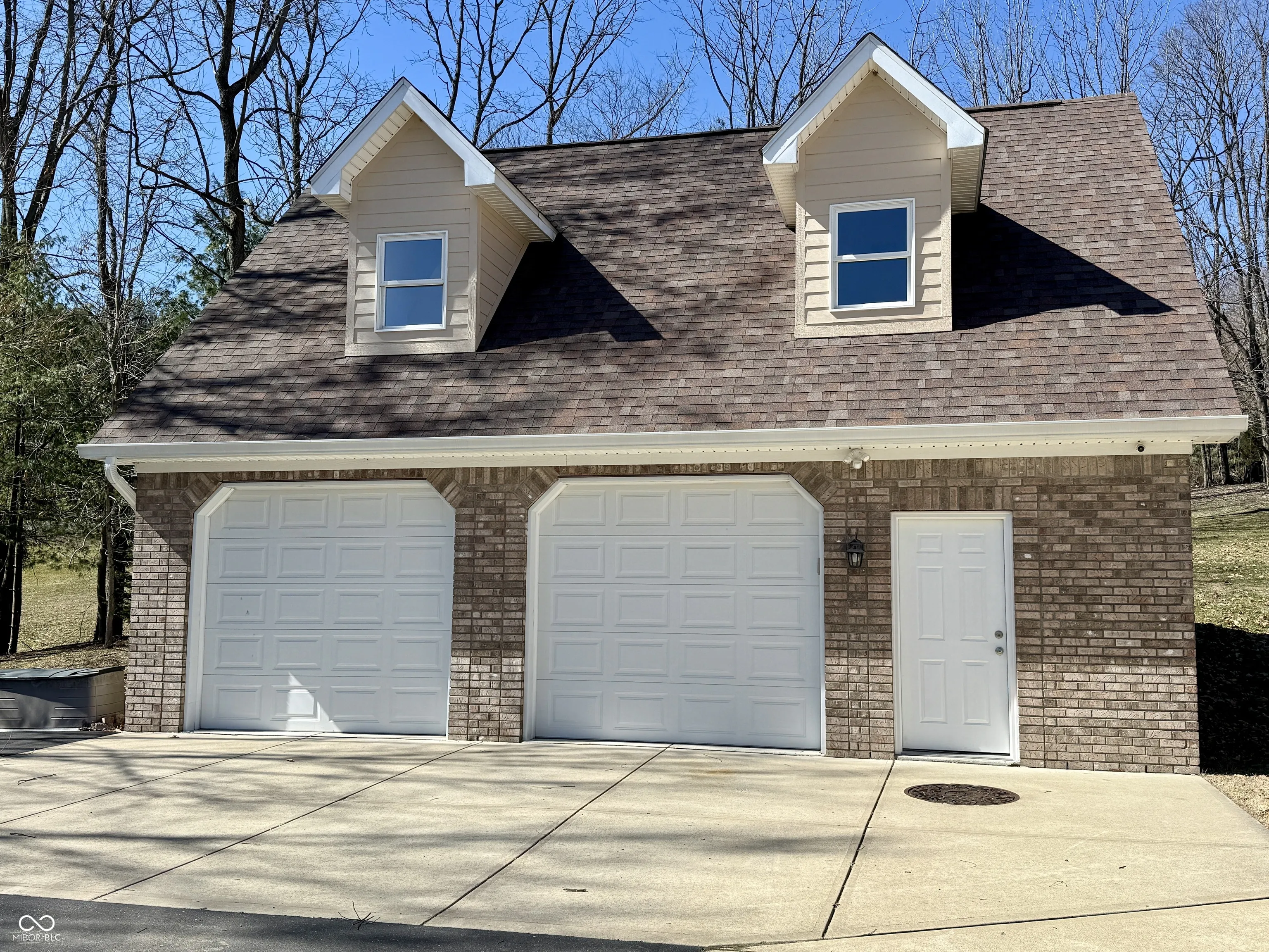 Location! Location Location! Discover your dream retreat at this stunning all-brick custom Cape Cod home. Property is located just 1.8 miles east of interstate 69. Access to the house is by an 800ft private newly paved winding driveway. The house is on a small hill overlooking almost 7 acres of wooded and open grassland that borders Clear Creek. This spacious 2,837 SF home offers the perfect blend of tranquility and convenience. The home features a large, 8x45ft covered front porch, 3 bedrooms, 2 baths, large kitchen, dining room, breakfast room, den and a massive great room which is perfect for gatherings. Additional highlights include a heated detached garage, 29x33ft, with 957 SF living area with full bath and a large multi-purpose room. Recent upgrades such as a new roof, gutters, newly paved drive. Note – The grass field has been maintained for over 20 years, for the grass, by a local farmer. Also, the Association allows 2 horses on the property. Refrigerator and microwave in detached garage are included in sale.