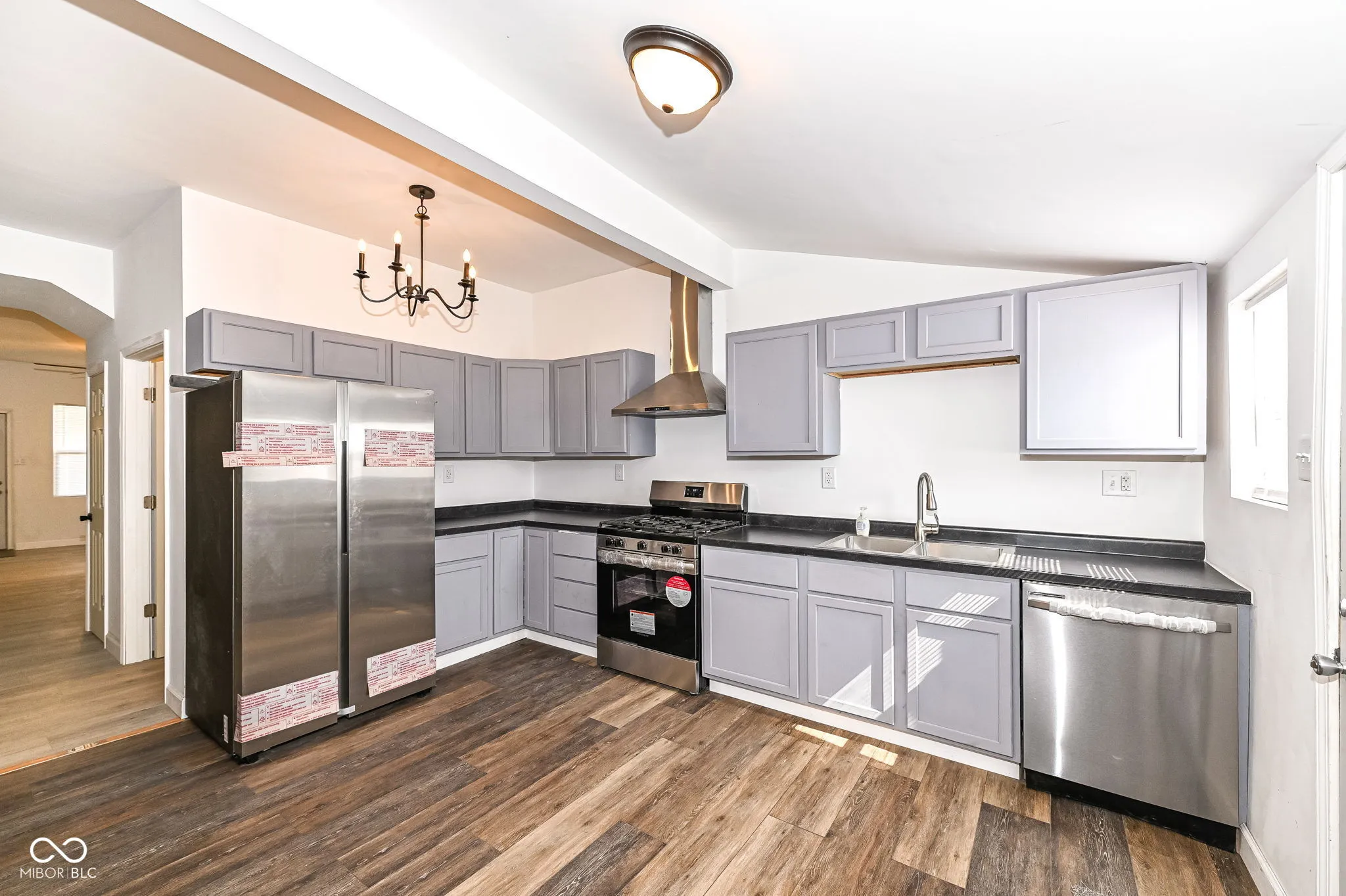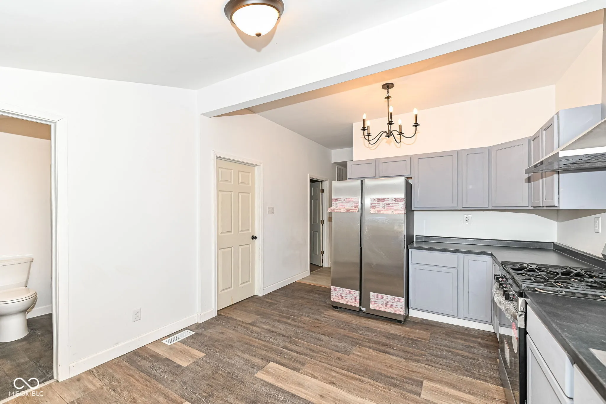 You will be impressed upon entering this completely remodeled one and half story home that offers 4 bedrooms with 3 full baths. You can choose to have the owner’s suite or in-law quarters on main level or a more private owner’s suite/flex room that is HUGE (24×11) on upper level with full bath & linen closet. Brand new updates include: vinyl windows throughout, modern light fixtures, decorative vinyl plank flooring (carpet on staircase only), freshly painted interior & exterior, all bathroom vanities, marble counter tops, toilets & tub/shower combos, 6 panel doors, kitchen cabinetry, counter top, and SS appliances, HVAC, water heater, newer roof, large 16×11 rear wood deck, + so much more. Laundry room is located on the main level. 9′ ceilings on main level.Basement offers space for additional storage. Rear parking area has new gravel and is large enough for 3+ vehicles & room to add a 2-3 car detached garage. Close to I-65 and conveniences. Move in Ready!