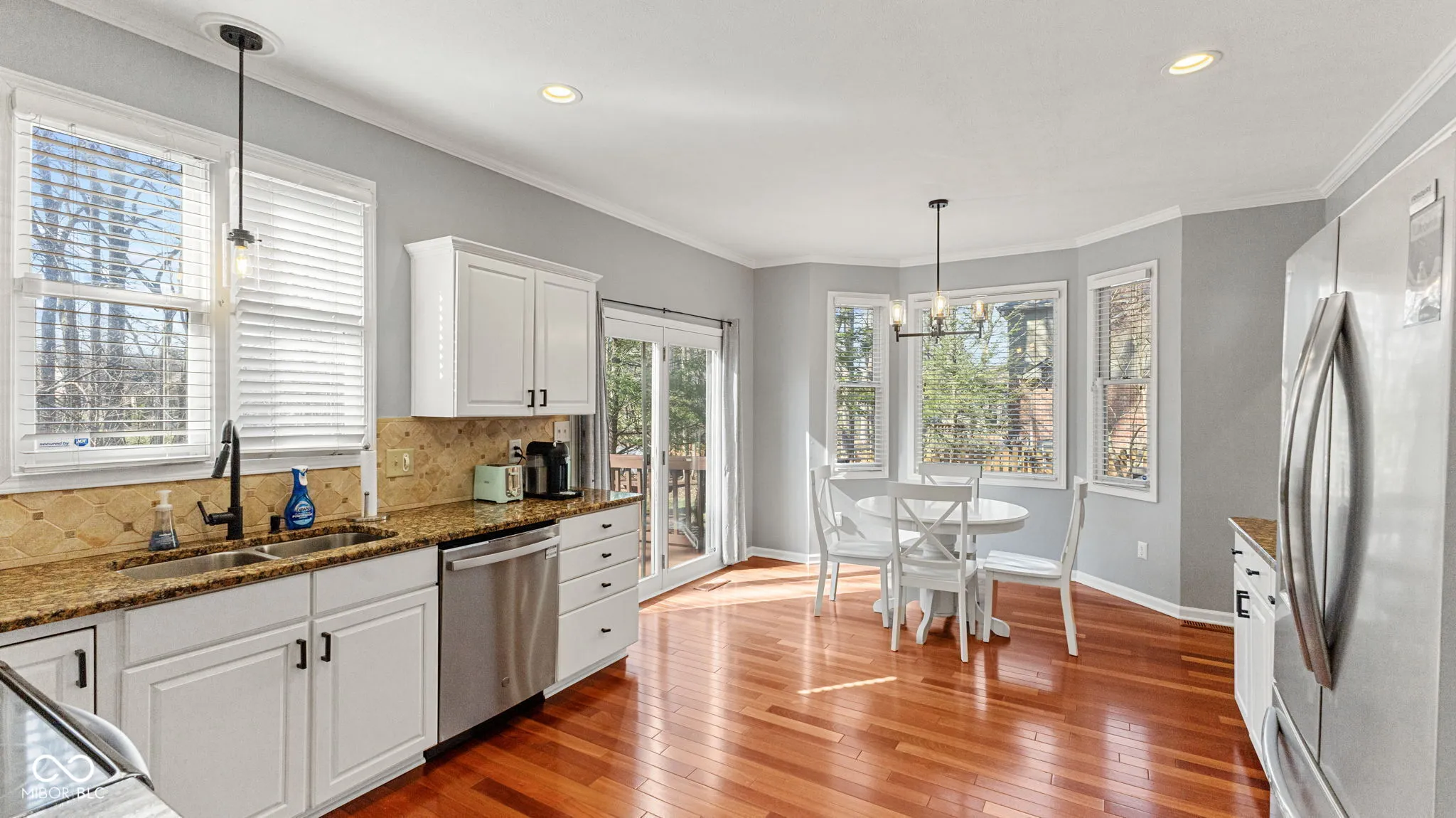 Welcome to the highly sought-after Moorings Community, where this beautifully updated 4-bedroom, 3.5-bath custom-built home with a finished basement sits on a picturesque .41-acre wooded lot with a fenced backyard. Freshly painted with updated fixtures, this home is full of charm and modern upgrades. The great room boasts a cozy fireplace and gleaming hardwood floors. The updated eat-in kitchen features granite countertops, stainless steel appliances, a pantry, and hardwood floors, making it the perfect space for cooking and gathering. The main floor also includes a private office with French doors and built-in shelving, plus a spacious formal dining room-ideal for entertaining. Upstairs, the primary suite is a true retreat with an updated spa-like bath, complete with a soaking tub, a spacious double shower, and two large walk-in closets-one with a charming sitting area. Bedrooms 2 and 3 offer generous closets, while the 4th bedroom/bonus room features double closets for extra storage. An updated hall bath completes the second level. The finished basement is ready for fun and relaxation with brand-new carpet, a full updated bath, a large family room, a bar, a bonus room, and plenty of storage. Additional highlights include an oversized 2-car garage and access to fantastic community amenities, including a pool and tennis courts. Plus, you’re just moments from shopping, dining, and more! Don’t miss your chance to call this incredible home yours-schedule your showing