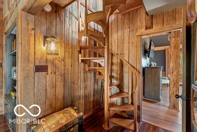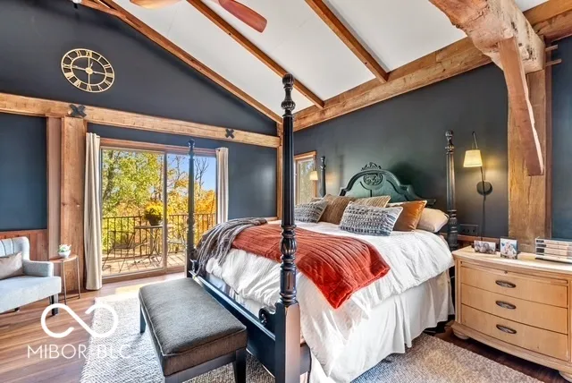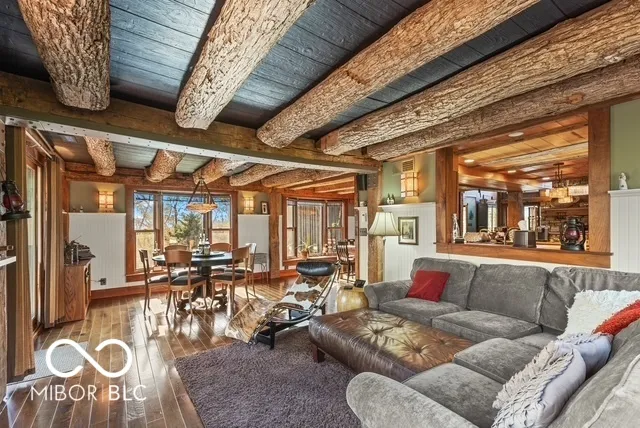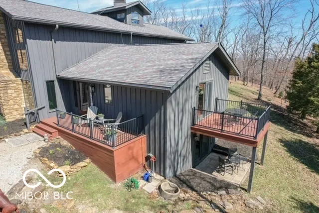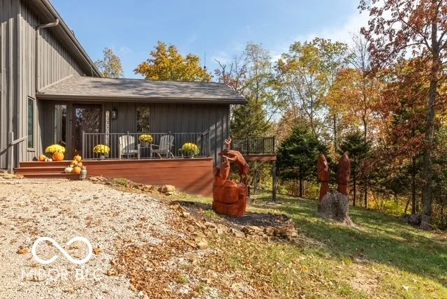Step into a one-of-a-kind masterpiece-a uniquely engaging home crafted from hand-hewn barn beams originally sourced from an 1800s Indiana farm. This stunning post-and-beam residence features a striking exterior of native rough-sawn yellow poplar and showcases exceptional craftsmanship, design, and quality throughout. Nestled on 50 picturesque wooded acres, this 3-bedroom, 2-1/2-bathroom contemporary retreat offers something special at every turn. The heart of the home is a breathtaking great room with a soaring Brown County stone fireplace and natural light streaming through expansive windows, complemented by a charming stained glass feature. The gourmet kitchen, complete with a center island, is perfect for entertaining, while the walkout lower level adds functionality and charm. The master suite is an oasis of relaxation, featuring a wet bar and access to serene outdoor views. This unique property also includes a bell tower, and recent upgrades to the deck (hot tub included!). Outdoors, nature lovers and sportsmen alike will delight in the abundance of wildlife, a small pond, and the quiet, secluded ambiance. The 48×24 outbuilding provides additional versatility for hobbies, storage, or workspace. Located just 7 miles southwest of I-65, this home is a nature lover’s paradise and a must-see for those seeking rustic charm paired with modern convenience. Schedule your private tour today to experience this unique, one-of-a-kind treasure!