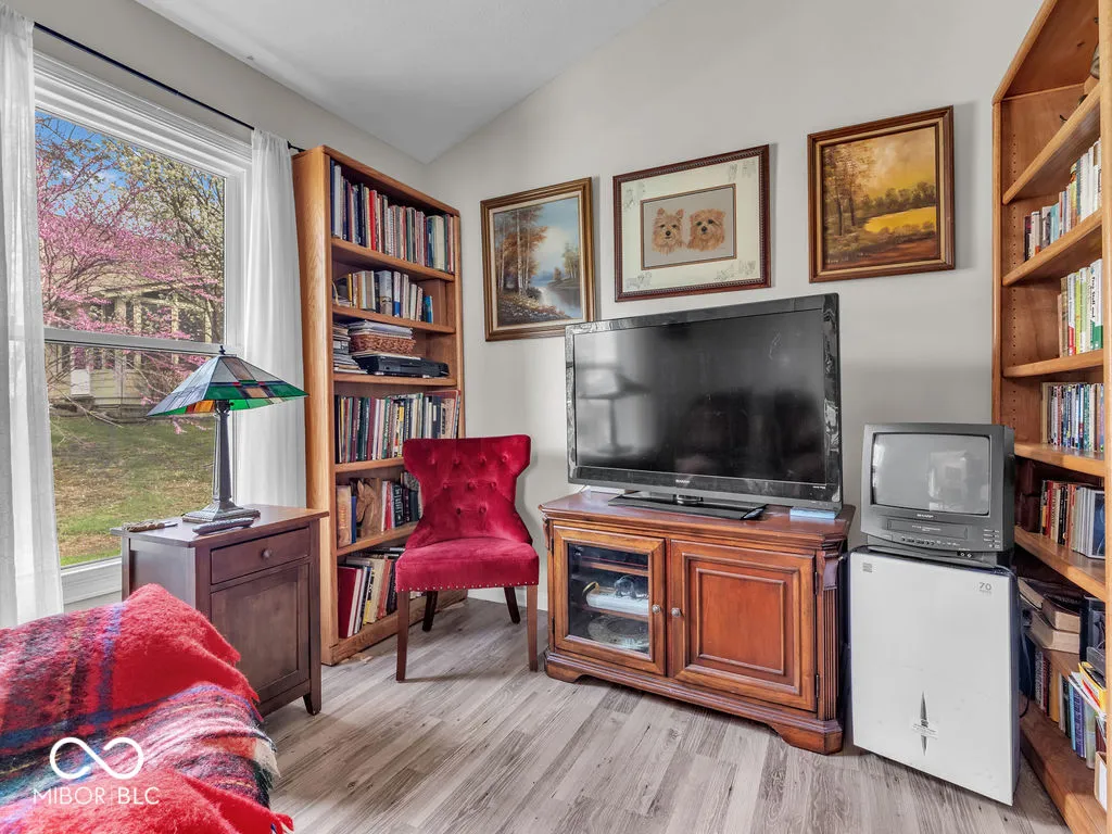 What a wonderful opportunity for truly one of a kind one level, affordable, maintenance free living condo. This 2-BR unit has an extra den/office, is in great condition & situated in fantastic location very near 96th St & Allisonville Rd for easy access to both shopping & restaurants! This unit has cathedral ceilings & neutral colors throughout. The large great room has a wood burning fireplace & sliding glass doors to the back deck. It also includes a dining room area. The large master suite also has cathedral ceilings and access to cozy screened in porch for relaxing coffee sipping in peaceful surroundings. Master bath has tile floors, dual sinks, and large walk-in closet. Come see this beauty soon because it won’t be available long!