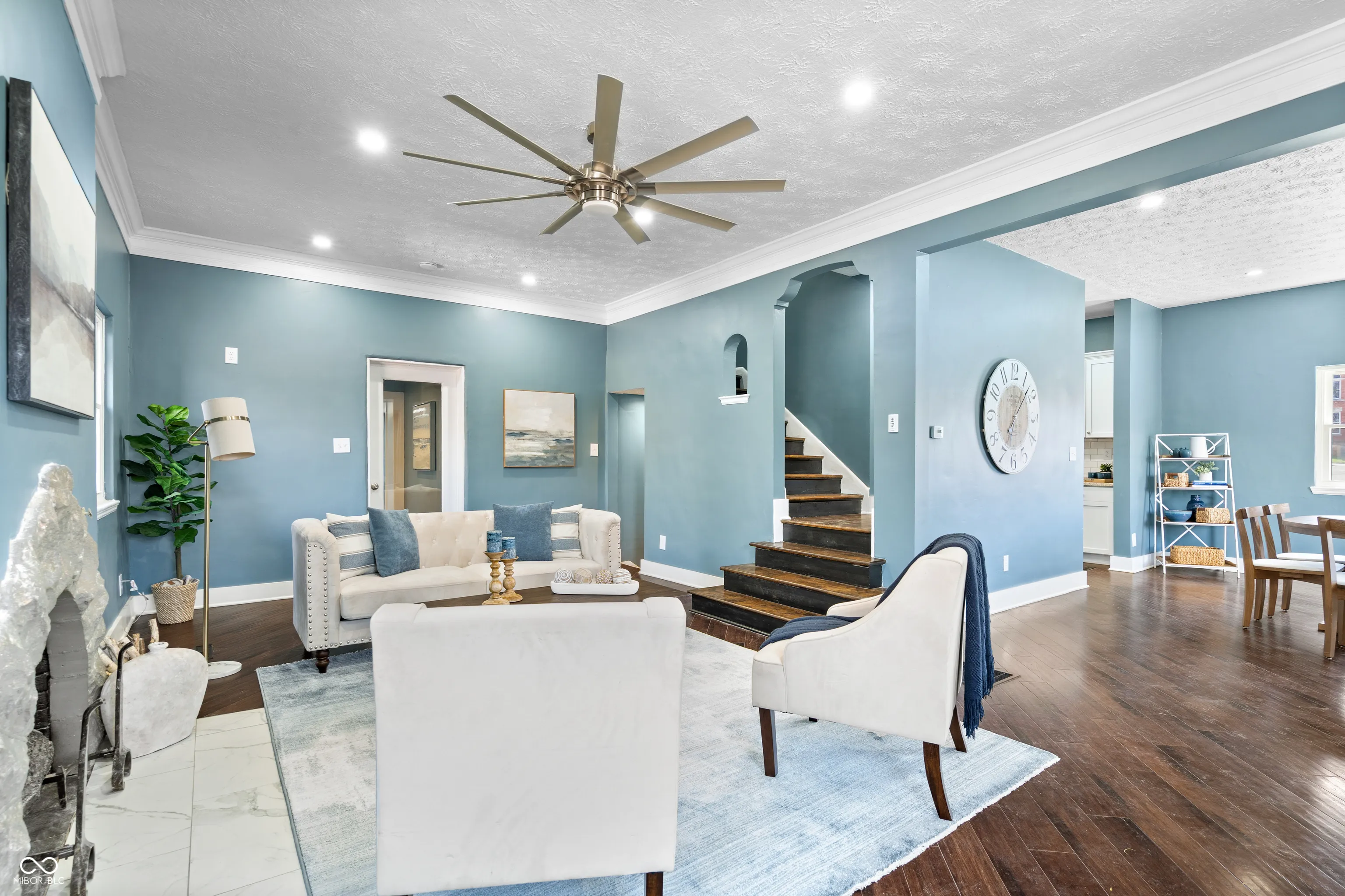 Enjoy lots of space in this fully renovated 4 bedroom, 2.5 bathroom home. The brick exterior is freshly painted, offers a recent roof, windows, gutters, new wood fencing, and large covered patio to enjoy your evening dinners. Huge 29’x25′ attached garage, great for your workshop and hobbies. Inside you will find updates throughout, such as new flooring, paint, outlets, light switches, doorknobs, & light fixtures. The large Owner’s Suite on the main level features a custom tiled walk-in shower and huge closet. The living room is accented by a decorative fireplace & crown molding. Updated kitchen includes granite, a tile backsplash, and new SS appliances. Unfinished basement + walk-up attic. Near restaurants, coffee shops, and a cafe/bakery.