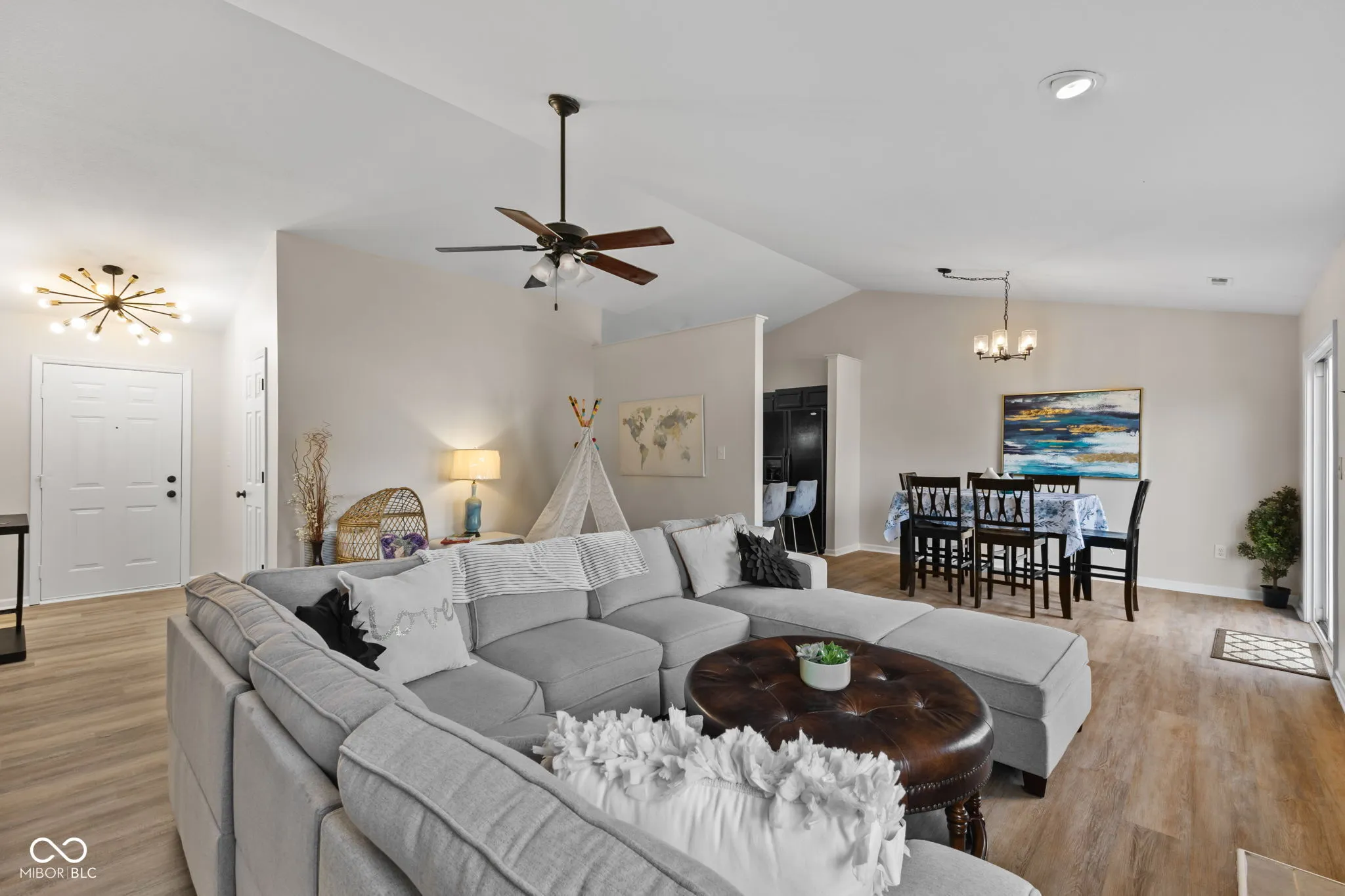 Check out this beautifully updated, three-bedroom two-bathroom ranch in the desirable Pine Ridge subdivision of Westfield- offered at just under $300,000! You will sense the pride of ownership immediately with the well-manicured yard with low-maintenance landscaping and a modern color scheme on the shutters and new garage door. Inside, the vaulted ceilings and natural light, complemented by the fresh neutral paint, create an airy and welcoming atmosphere. The new luxury vinyl plank flooring flows seamlessly throughout, offering both durability and style that will pair with any decor. The updated kitchen is a culinary delight, featuring moody black cabinets, gorgeous new granite countertops, and a bar seating area, perfect for casual meals or entertaining friends. You will love the flow of the floorplan with living areas that are defined yet open; the dining area is connected to both the kitchen and the expansive great room, which has enough additional space for an office or play area. Updated bathrooms showcase new vanities, sleek mirrors, contemporary lights, and new toilets. The backyard is a perfect escape from the daily hustle, where you can relax and enjoy a bonfire in the firepit built into the large brick patio, entertain friends with a cookout or let kids or pets play outside with the safety of the wooden privacy fence. The roof, HVAC, and water heater are all less than five years old, offering peace of mind for the new homeowner, plus there’s a small storage shed in the back. Don’t miss your chance to own this beautiful home that is located minutes from Grand Park, Downtown Westfield, and Clay Terrace. You can be at the epicenter of everything that booming Westfield has to offer- enjoy the great outdoors while biking, walking, running the Monon or explore the vast array of restaurants, shopping and entertainment nearby.