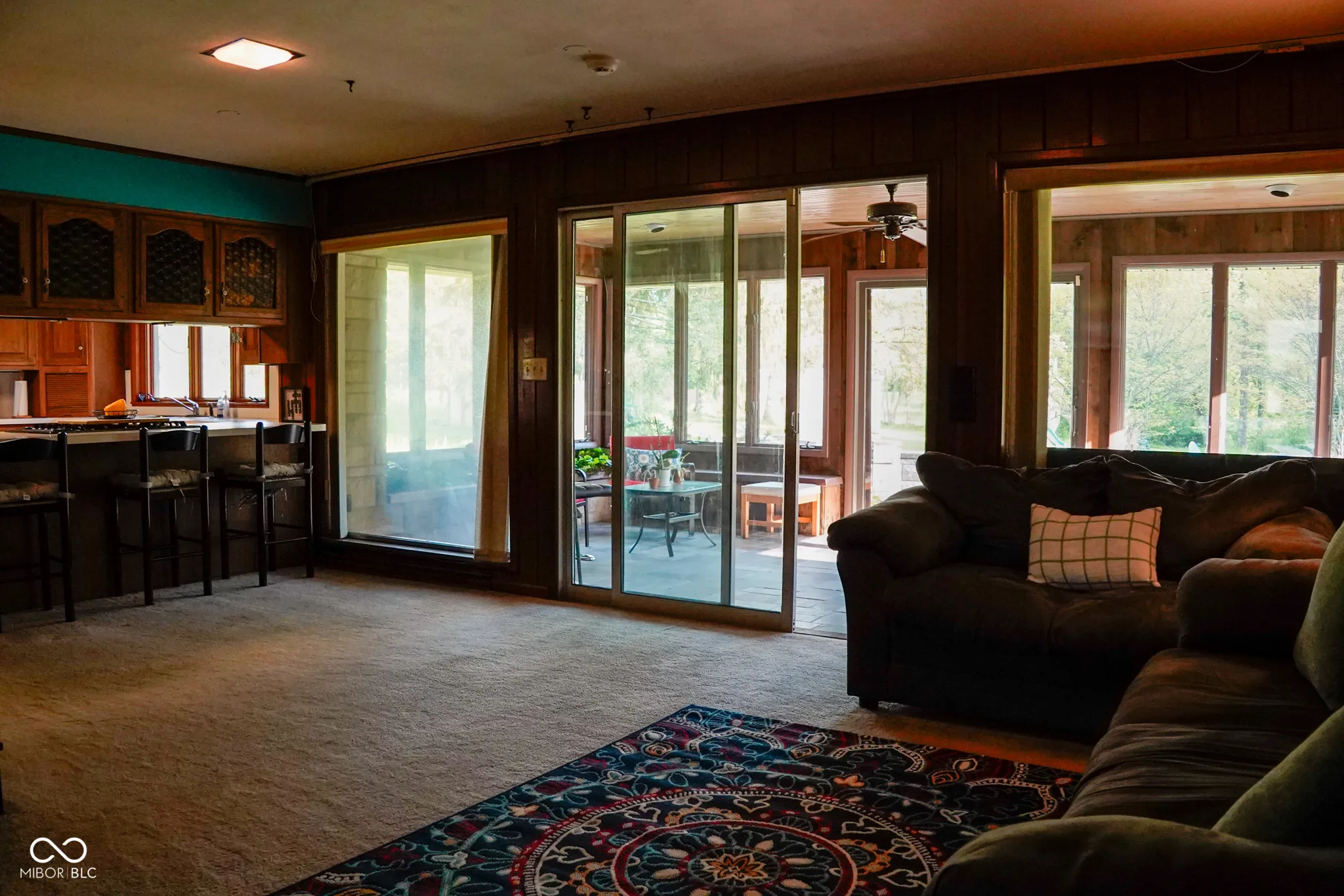 Welcome to 1863 W Country Club Rd, a beautifully maintained mid-century ranch nestled on a picturesque 4-acre lot in Connersville, Indiana. Built in 1956, this 3-bedroom, 2-bathroom home offers 2,016 square feet of comfortable living space, blending classic charm with modern amenities. As you enter, you’re greeted by a spacious family room featuring a wood-burning fireplace, seamlessly connected to an open kitchen-perfect for entertaining. Adjacent to the family room is an all-season sunroom with slate flooring, providing serene views of the expansive lawn and wooded area beyond. A formal living room with a gas log fireplace leads to a versatile den or office space, complete with built-in shelving. The home’s interior boasts a mix of carpet, hardwood, linoleum/vinyl, and slate flooring. The property also features an unfinished basement and an attached garage. Step outside to enjoy the park-like setting, complete with a cleared walking path leading to a tranquil creek. Located just across from the golf course, this home offers both privacy and proximity to recreational amenities. Don’t miss the opportunity to own this well-maintained gem in a sought-after location.