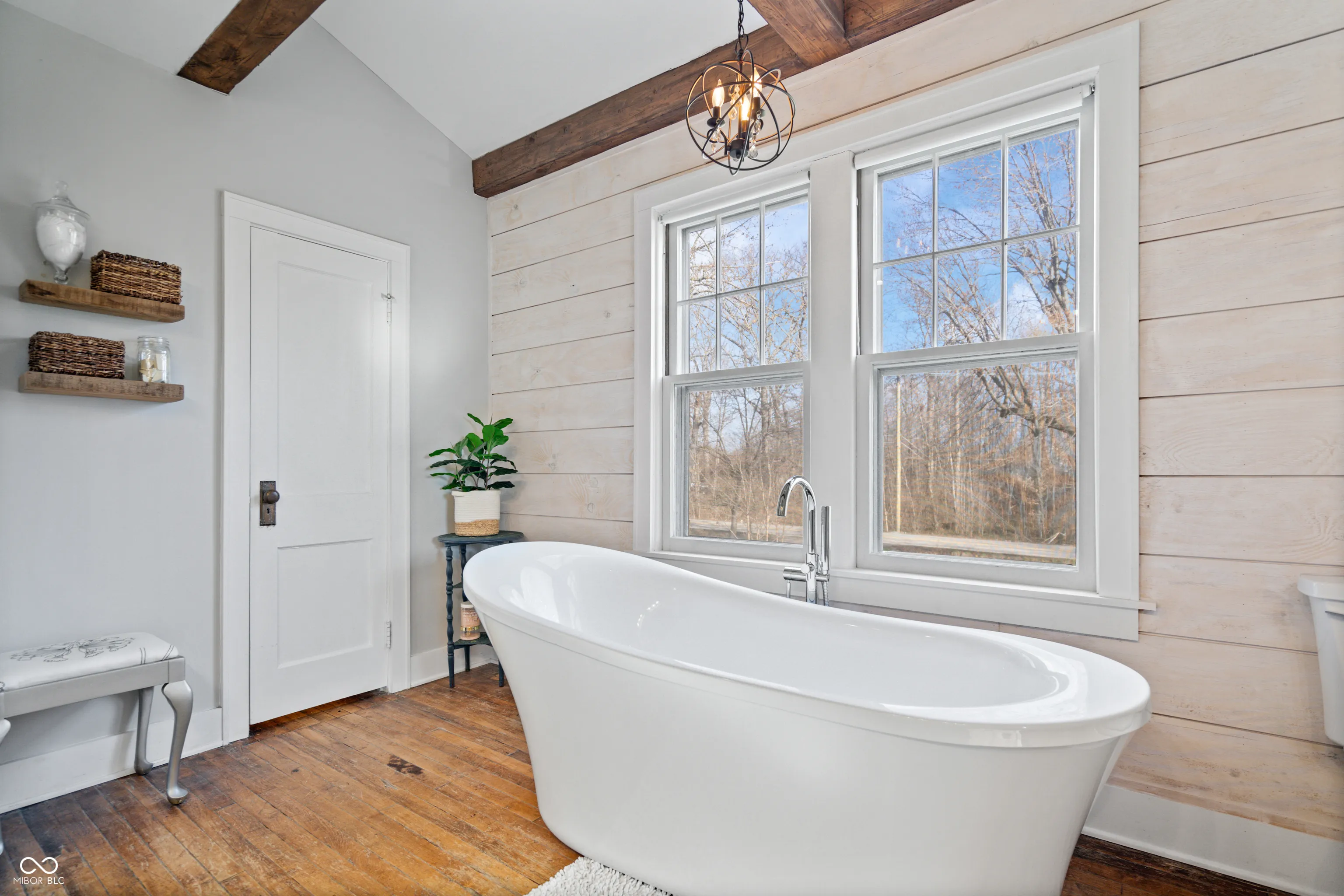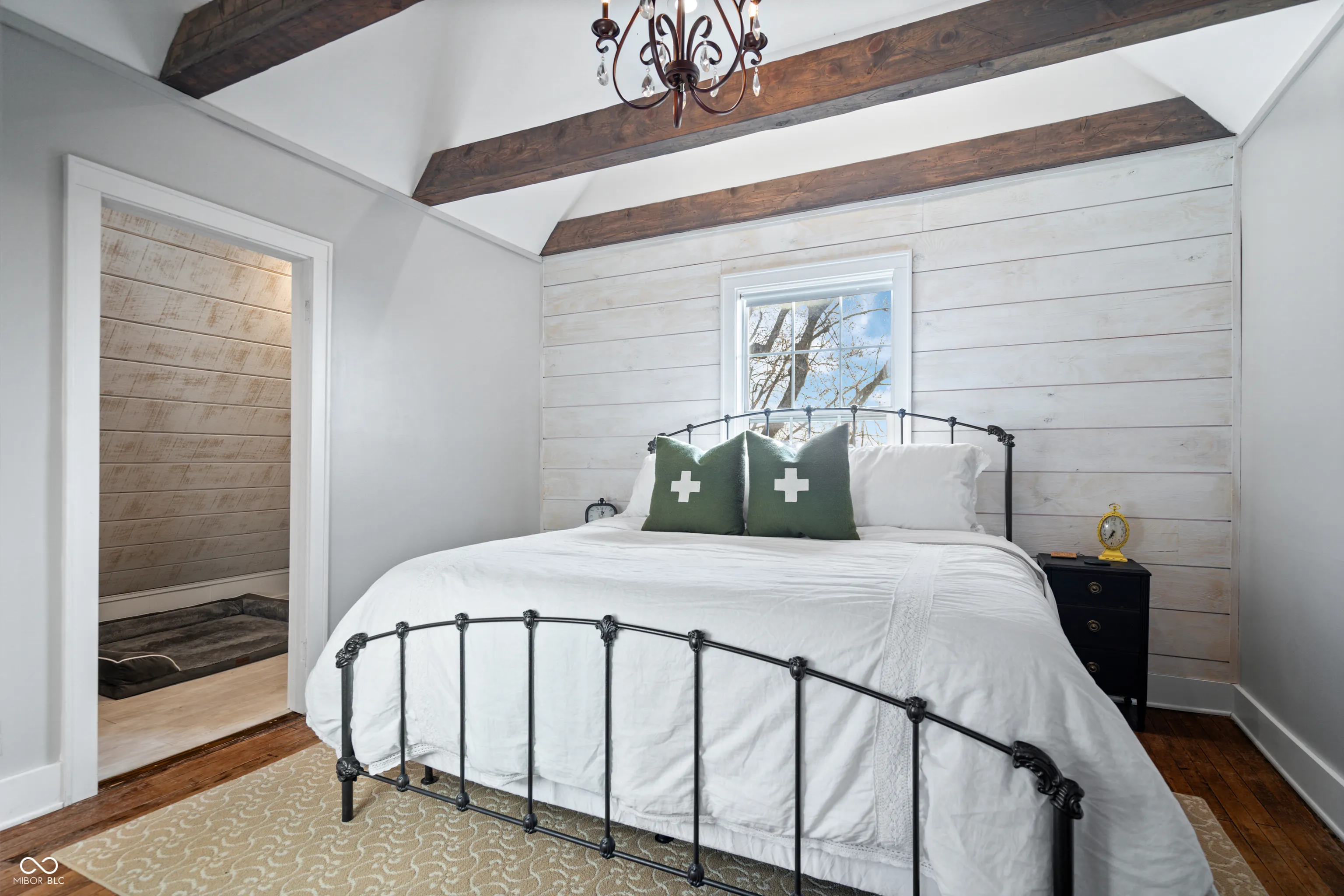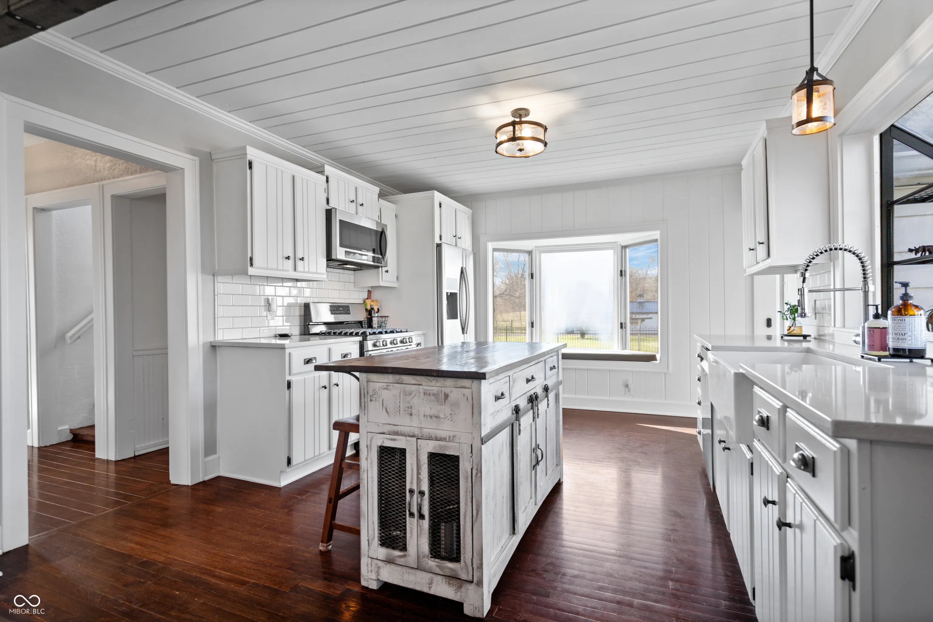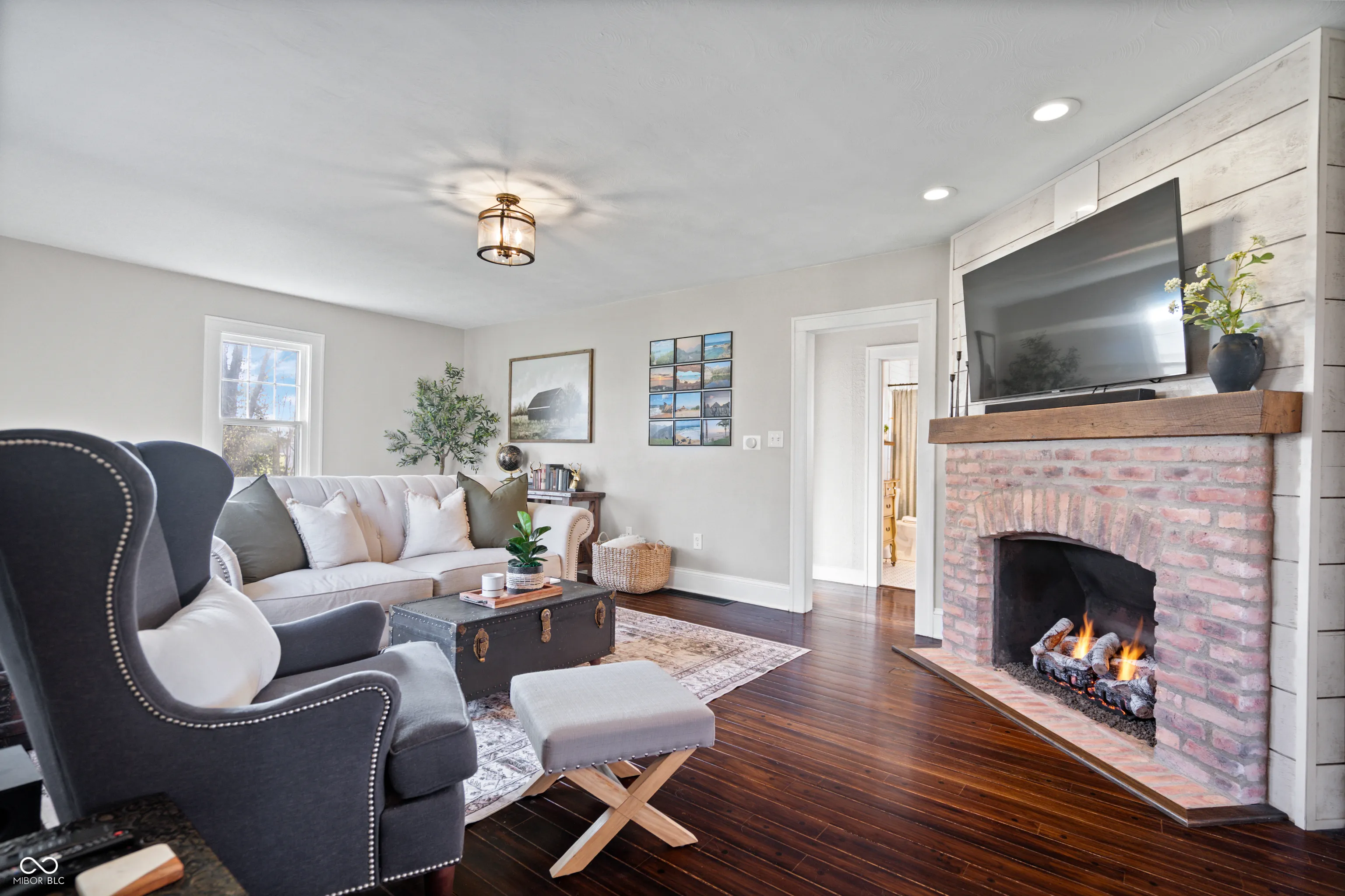 Updated farmhouse on the SE side of Indy! With over 2 acres, it’s perfect for your urban farm! 50’x28′ (1400/SF) outbuilding with new roof, horse stalls, running water, heat, and electricity. 1 acre of fenced pasture include peaceful walking paths. Animal enclosure for ducks or chickens, and lots of space for your own garden. The home was thoroughly updated in 2017. The kitchen features quartz countertops, tile backsplash, SS appliances, farmhouse sink, and a center island. The Owner’s suite offers a raised ceiling with exposed wood beam, plus a luxury bathroom featuring a double vanity sink, tiled shower, and a very relaxing soaker tub. Hardwood floors throughout. Exposed brick chimney, crown molding, ship lap, and a gas log fireplace!