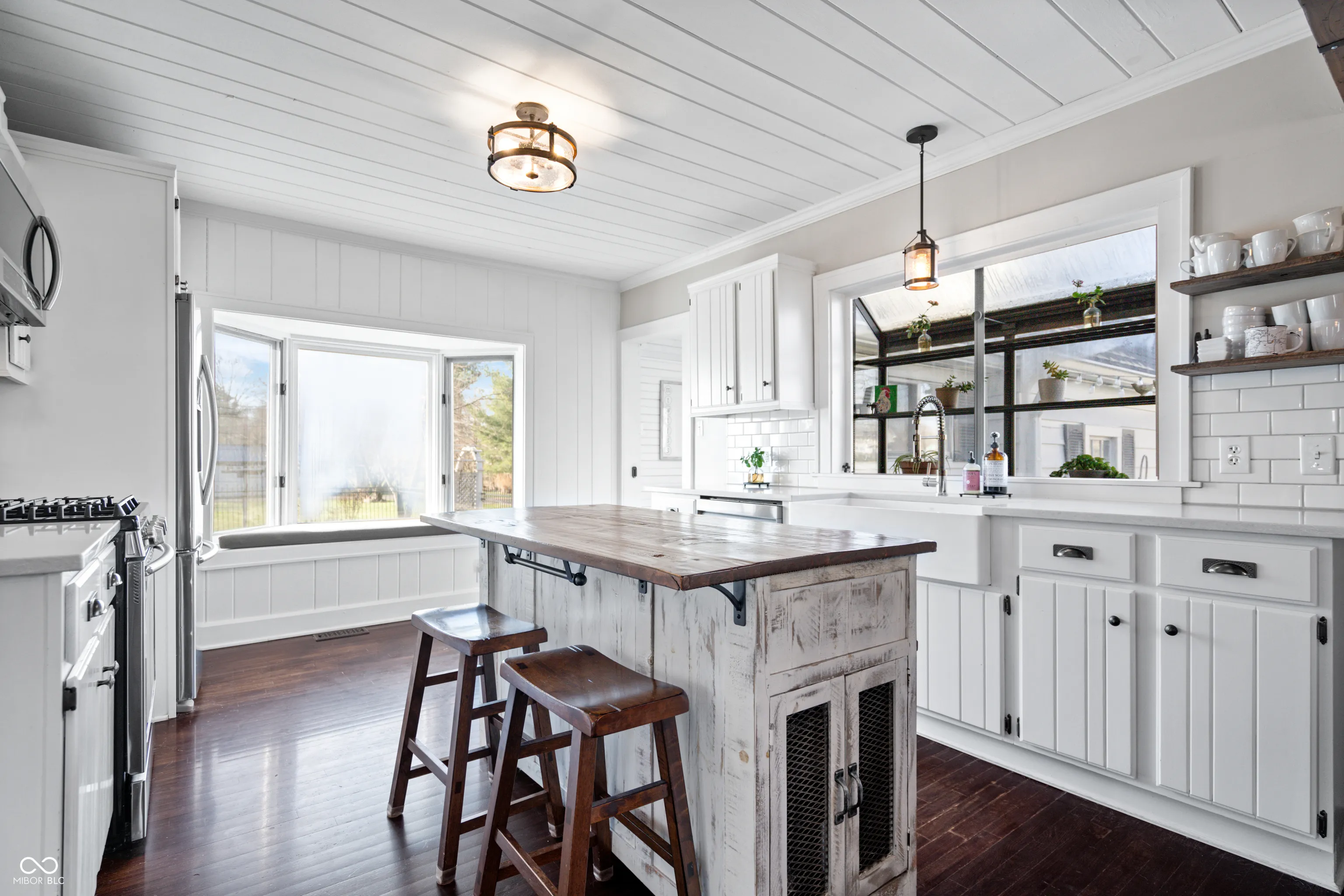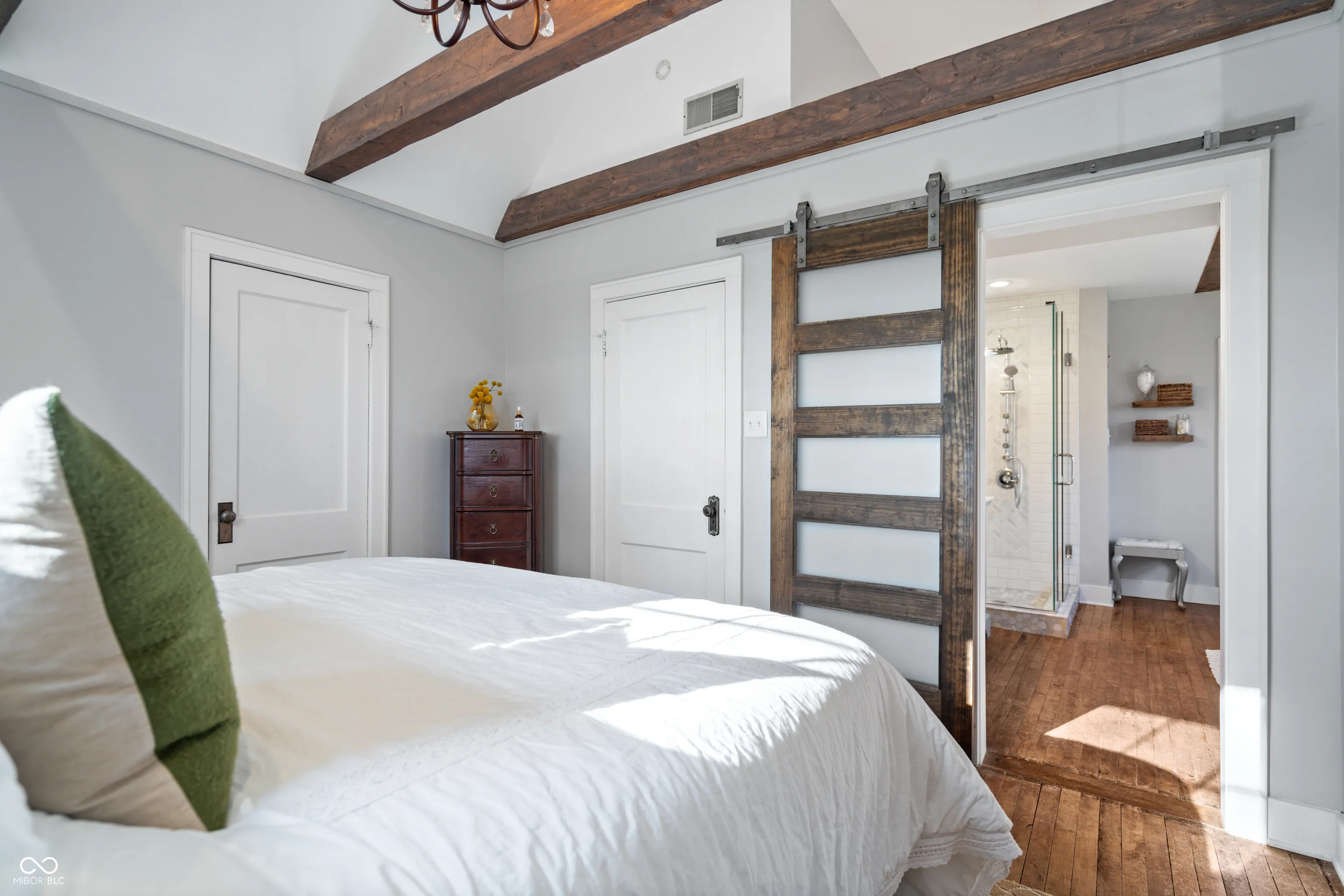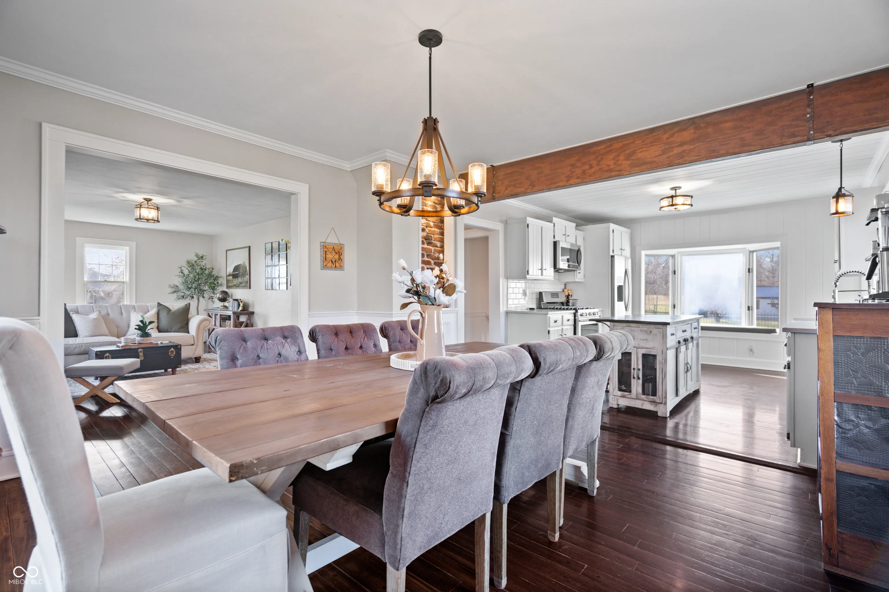 Updated farmhouse on the SE side of Indy! With over 2 acres, it’s perfect for your urban farm! 50’x28′ (1400/SF) outbuilding with new roof, horse stalls, running water, heat, and electricity. 1 acre of fenced pasture include peaceful walking paths. Animal enclosure for ducks or chickens, and lots of space for your own garden. The home was thoroughly updated in 2017. The kitchen features quartz countertops, tile backsplash, SS appliances, farmhouse sink, and a center island. The Owner’s suite offers a raised ceiling with exposed wood beam, plus a luxury bathroom featuring a double vanity sink, tiled shower, and a very relaxing soaker tub. Hardwood floors throughout. Exposed brick chimney, crown molding, ship lap, and a gas log fireplace!