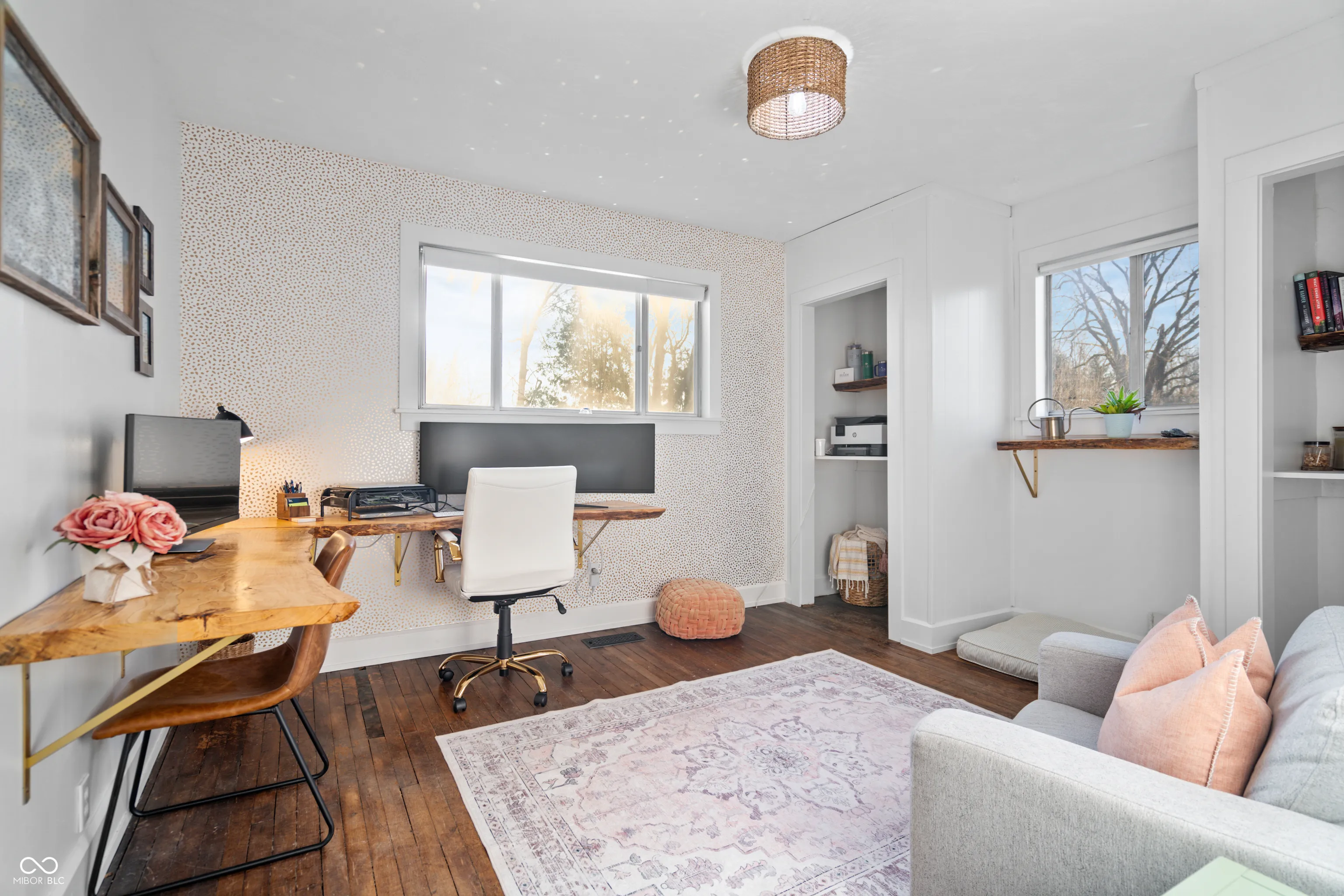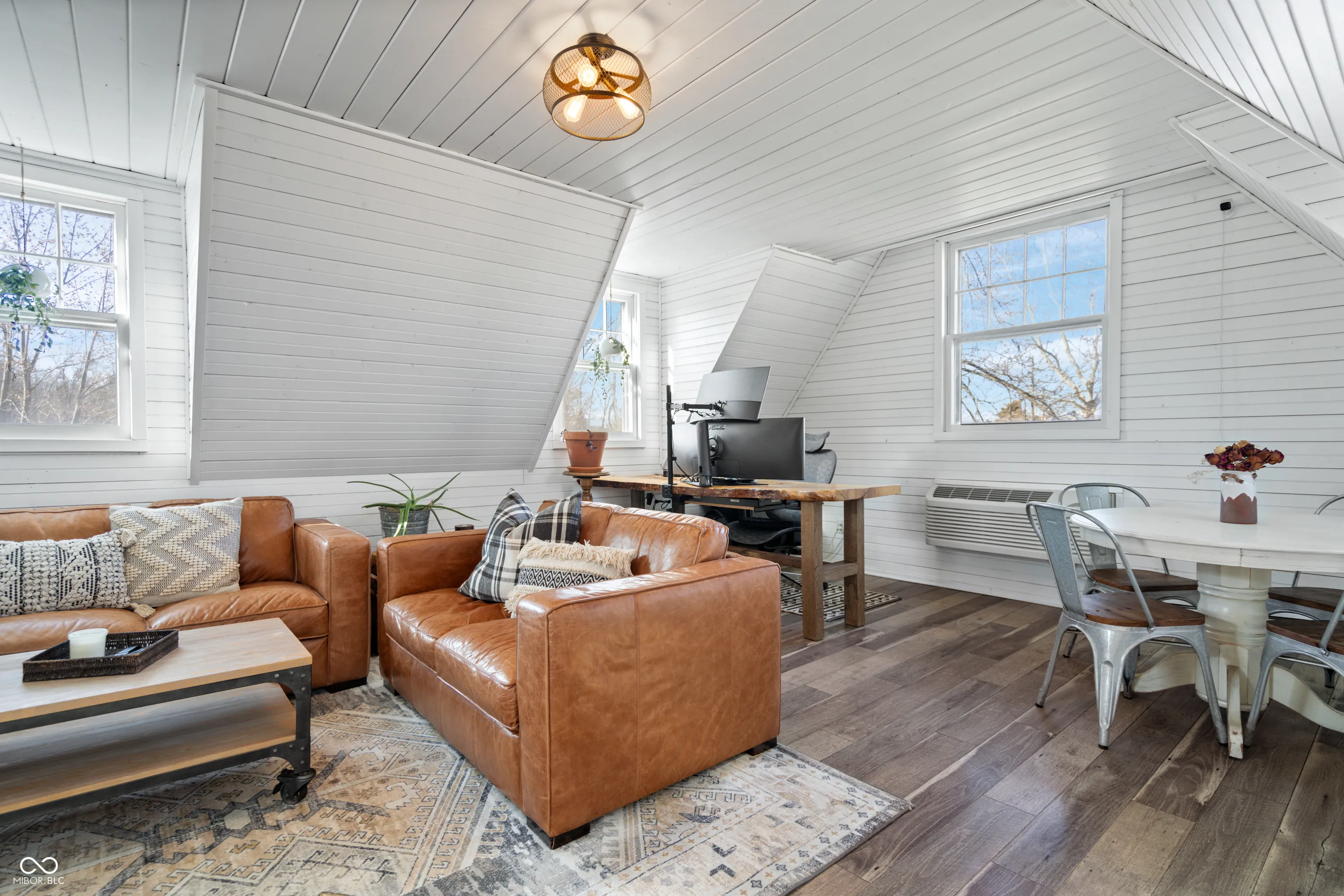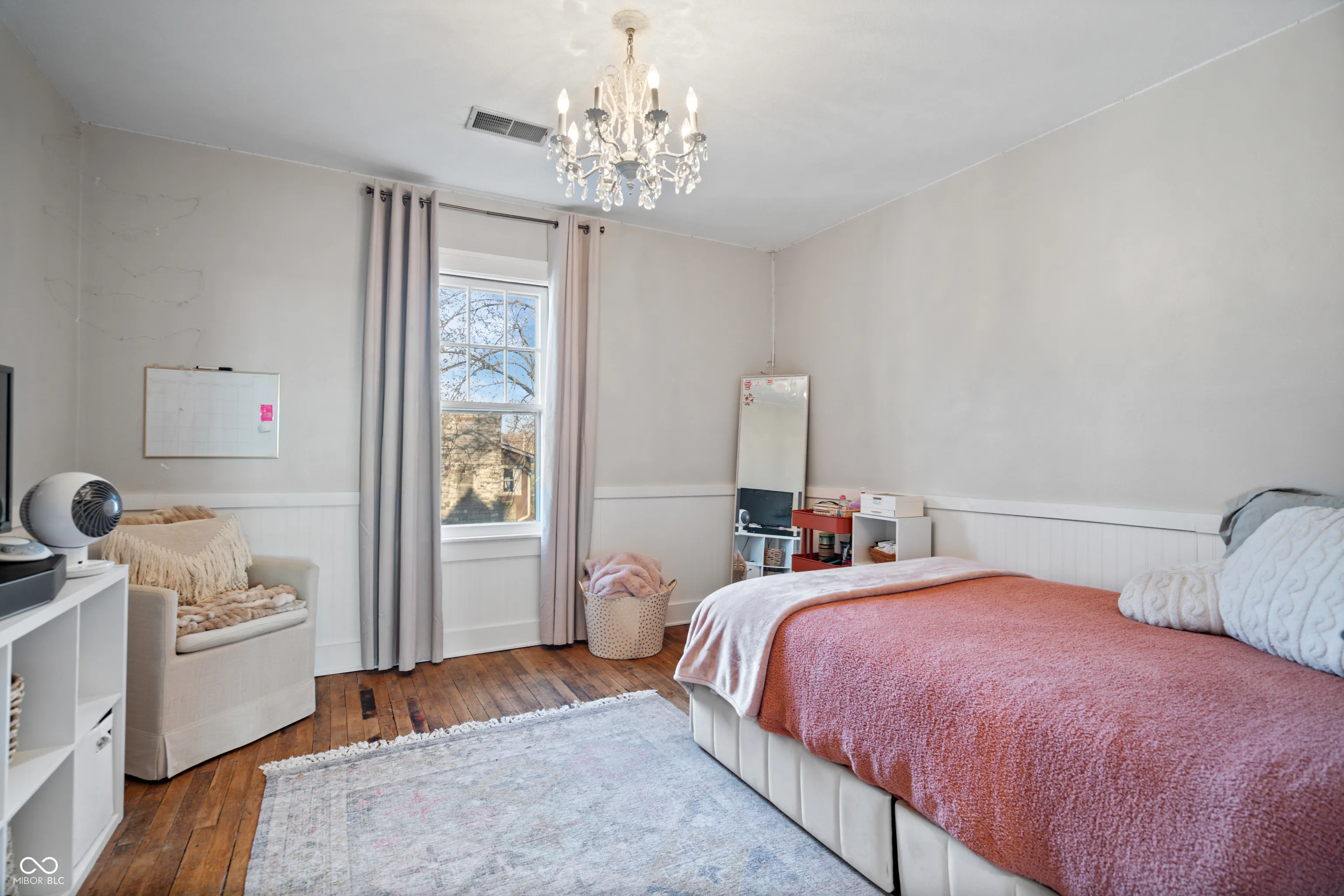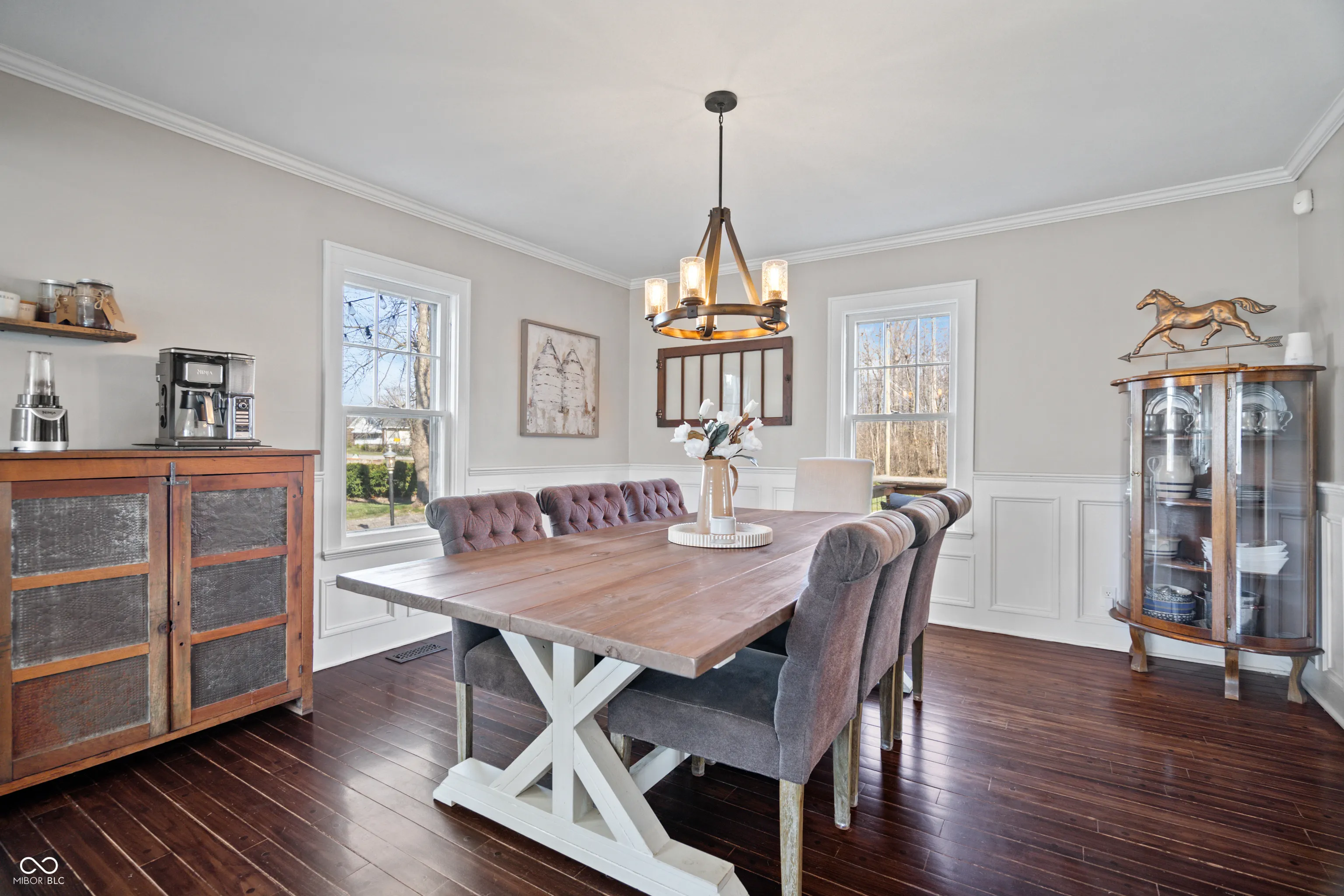 Updated farmhouse on the SE side of Indy! With over 2 acres, it’s perfect for your urban farm! 50’x28′ (1400/SF) outbuilding with new roof, horse stalls, running water, heat, and electricity. 1 acre of fenced pasture include peaceful walking paths. Animal enclosure for ducks or chickens, and lots of space for your own garden. The home was thoroughly updated in 2017. The kitchen features quartz countertops, tile backsplash, SS appliances, farmhouse sink, and a center island. The Owner’s suite offers a raised ceiling with exposed wood beam, plus a luxury bathroom featuring a double vanity sink, tiled shower, and a very relaxing soaker tub. Hardwood floors throughout. Exposed brick chimney, crown molding, ship lap, and a gas log fireplace!