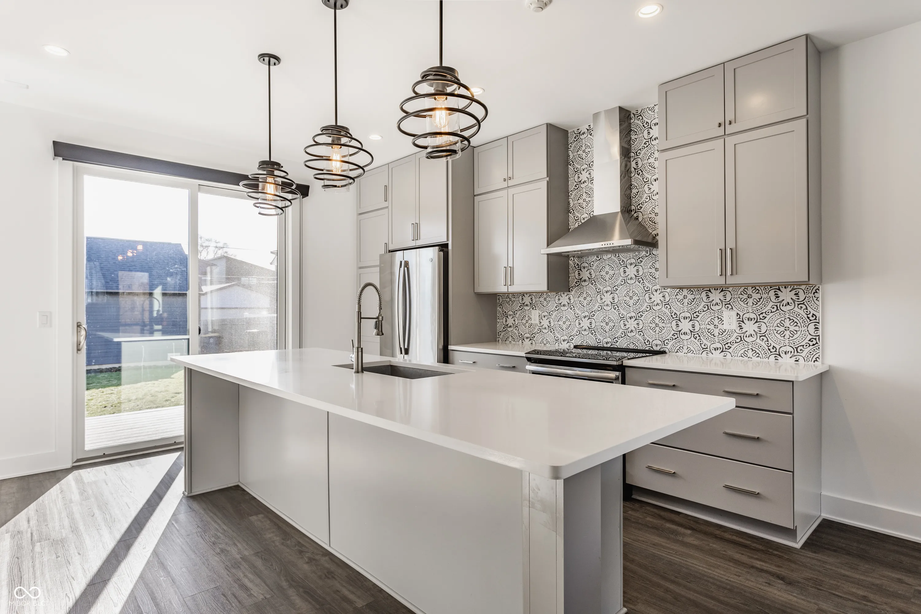 This better than new ReDev home in Monon 16 is just steps from the Monon Trail. The bright and inviting main floor flows seamlessly onto a Trex deck, overlooking a fully fenced yard with custom grow beds, espaliered fruit trees, and low-maintenance landscaping. The mudroom and dual pantries offer ample storage space. The finished basement features a fourth bedroom and bath, along with a cozy secondary living area. Solid wood stair treads and custom built-in shelves add customization and quality in the home. The home is also pre-wired for a dining room chandelier and TV above the fireplace. Stroll down the Monon Trail to enjoy nearby spots like The Alchemist coffee shop, Provider, CoHatch, and Bottleworks! Lennar townhomes across the street are nearing completion, making this a fantastic opportunity to join a vibrant, growing community.