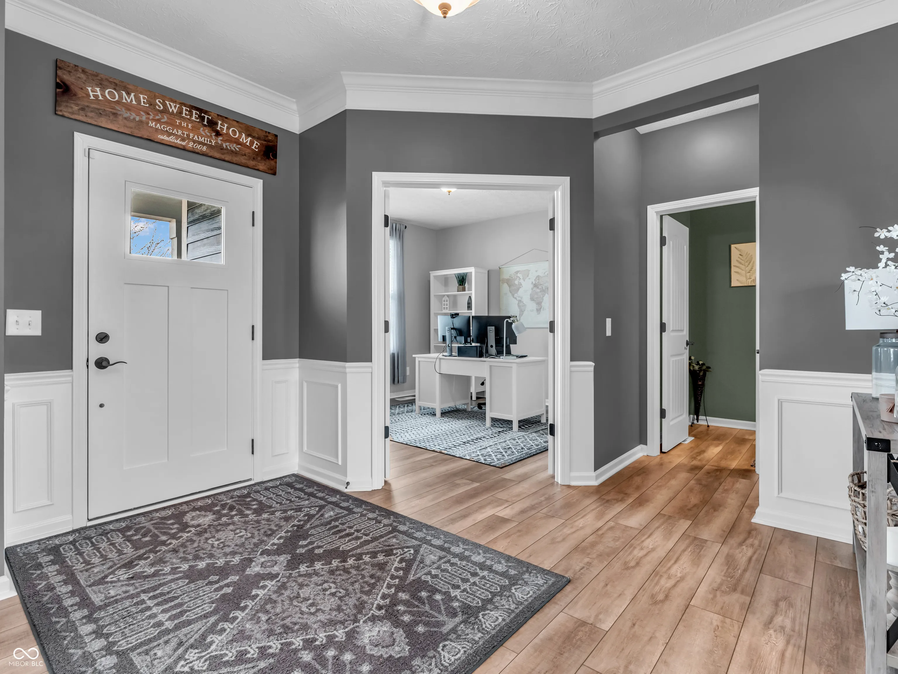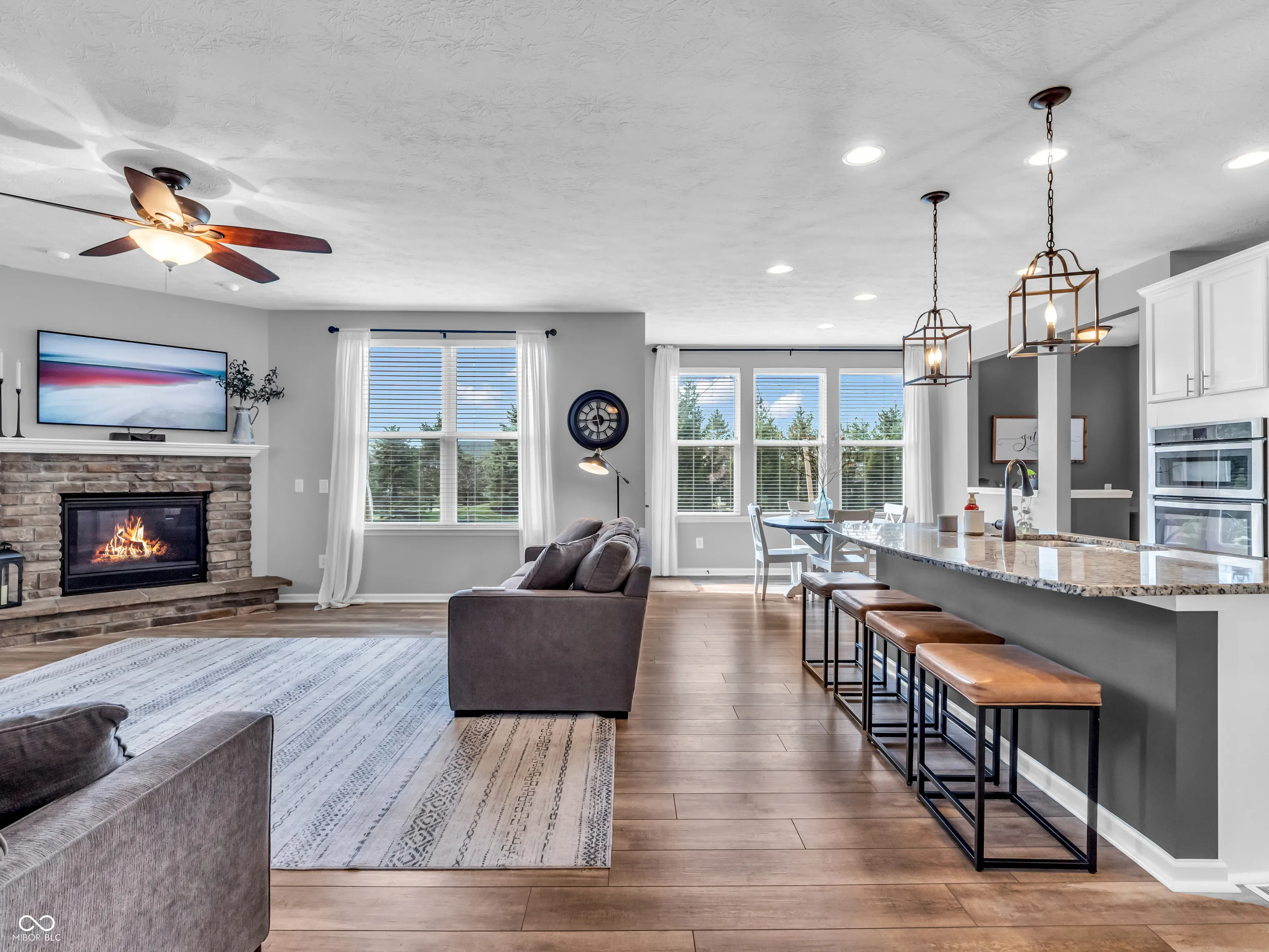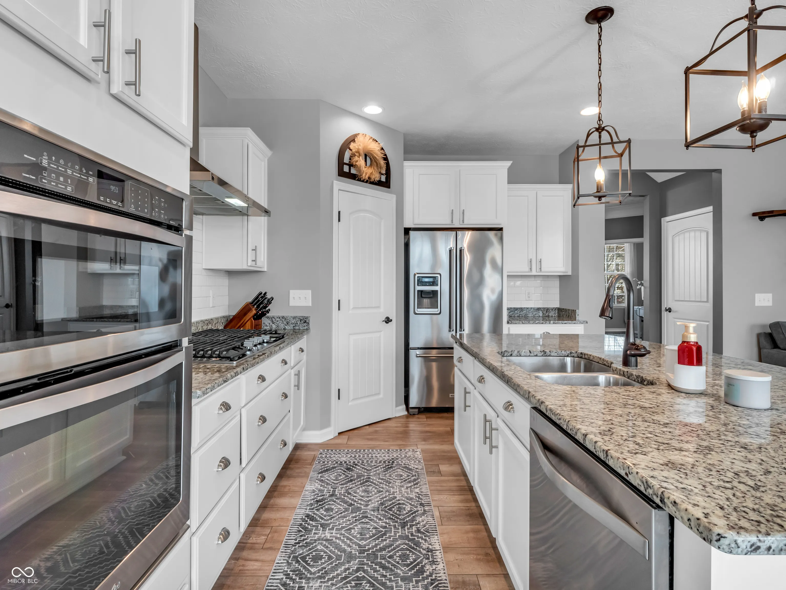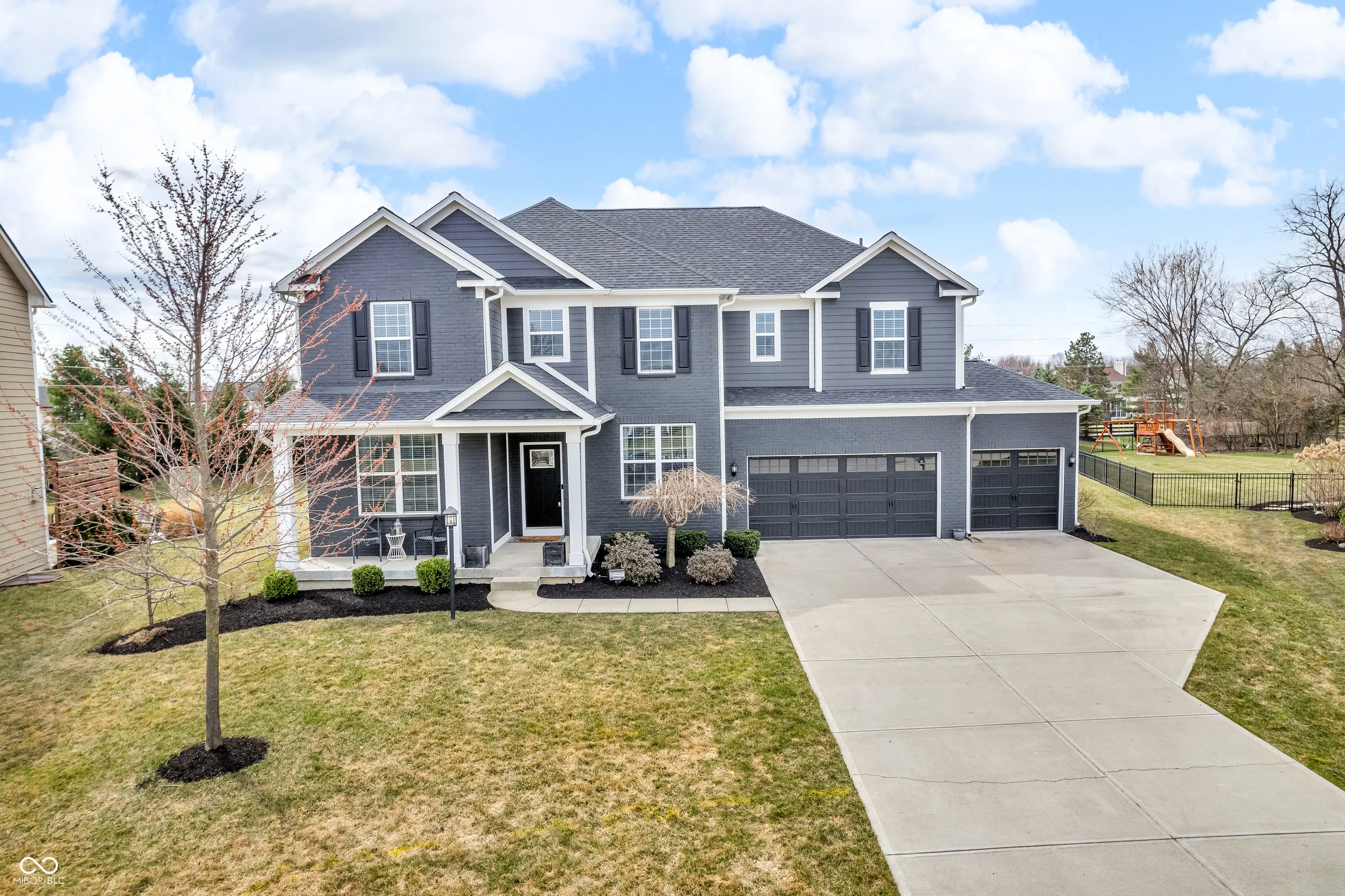 Nestled on a quiet cul-de-sac, this beautifully updated Viking Meadows home is designed for modern family living. The wrap-around front porch is perfect for sipping morning coffee while watching the kids hop on the school bus, setting the tone for the warmth and charm this home exudes. Recently renovated with a complete exterior makeover, this home boasts a new roof, gutters, exterior lighting, fresh paint, and a stamped concrete patio. Step into your own private backyard sanctuary, complete with mature trees for privacy and a luxurious hot tub, perfect for unwinding after a long day. With a convenient pathway leading directly to the clubhouse, pool, and fitness center, the location couldn’t be more ideal for an active lifestyle. The three-car garage is a dream-fully finished, insulated, and designed with a built-in workstation alcove, making it perfect for weekend projects, extra storage, or even a home gym. Inside, you’ll find a fresh, modern aesthetic, with a perfectly curated paint palette and brand-new luxury vinyl plank flooring flowing throughout the main level. The open-concept kitchen and living space is designed for both effortless entertaining and everyday family moments. The granite countertops provide ample prep space, while the oversized island serves as the heart of the home. The sleek white cabinets, updated backsplash, and stylish hardware create a clean, contemporary feel. A charming breakfast nook and a recently added mudroom make busy mornings a breeze. The fully finished basement offers a 9-ft ceiling, a dedicated entertainment area with a custom-built bar, a full bath, and an additional workout space-ideal for moms looking for a personal retreat without leaving home. Upstairs, a spacious loft creates the perfect setting for family movie nights or a quiet reading nook. The elegantly designed master suite is a true escape, featuring a walk-in shower, dual sinks, and an oversized closet with ample storage.