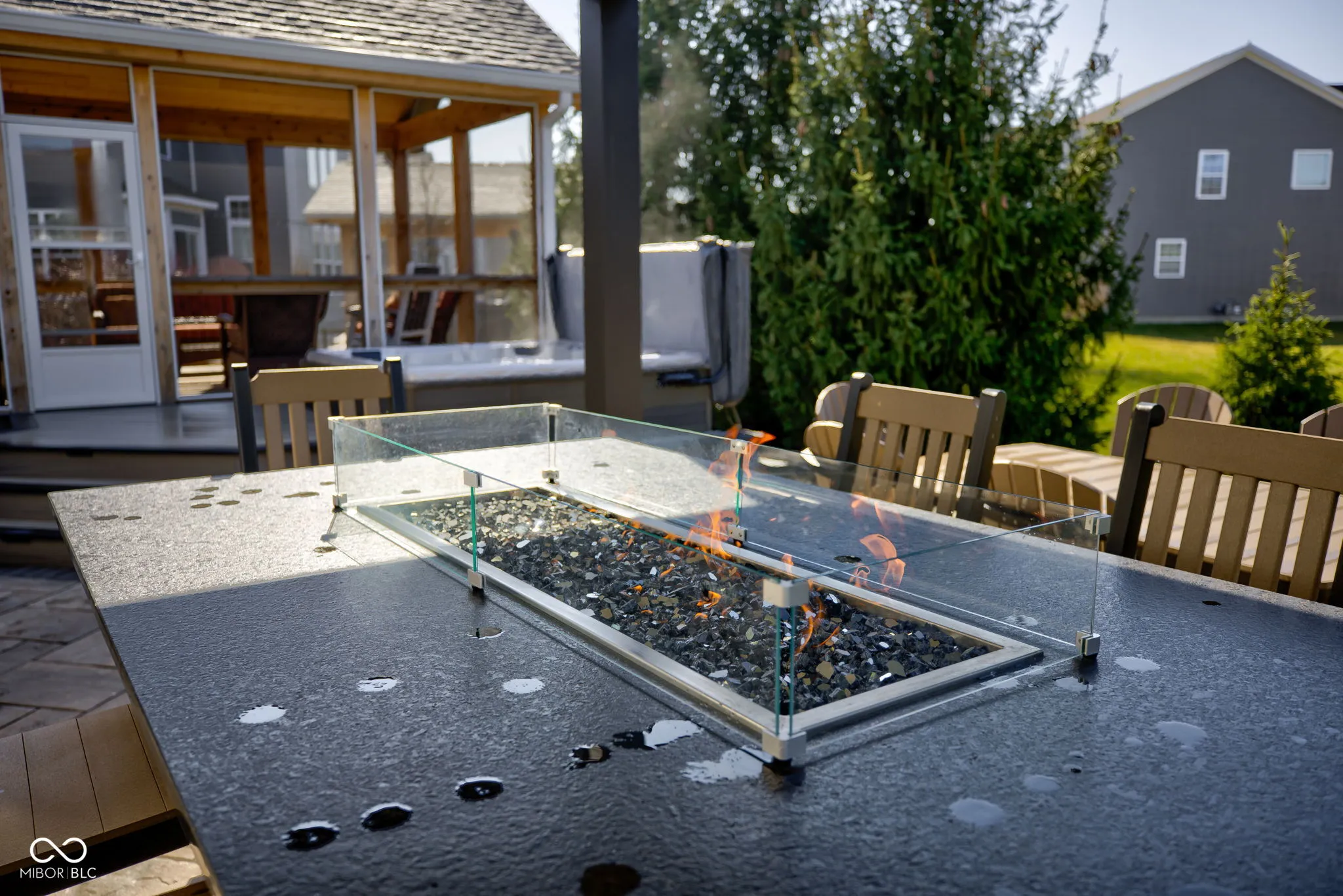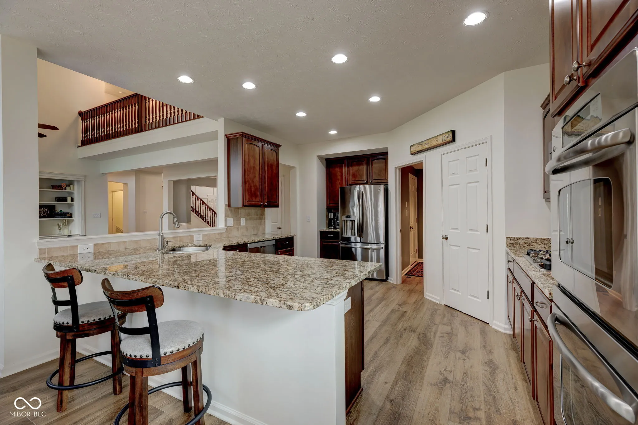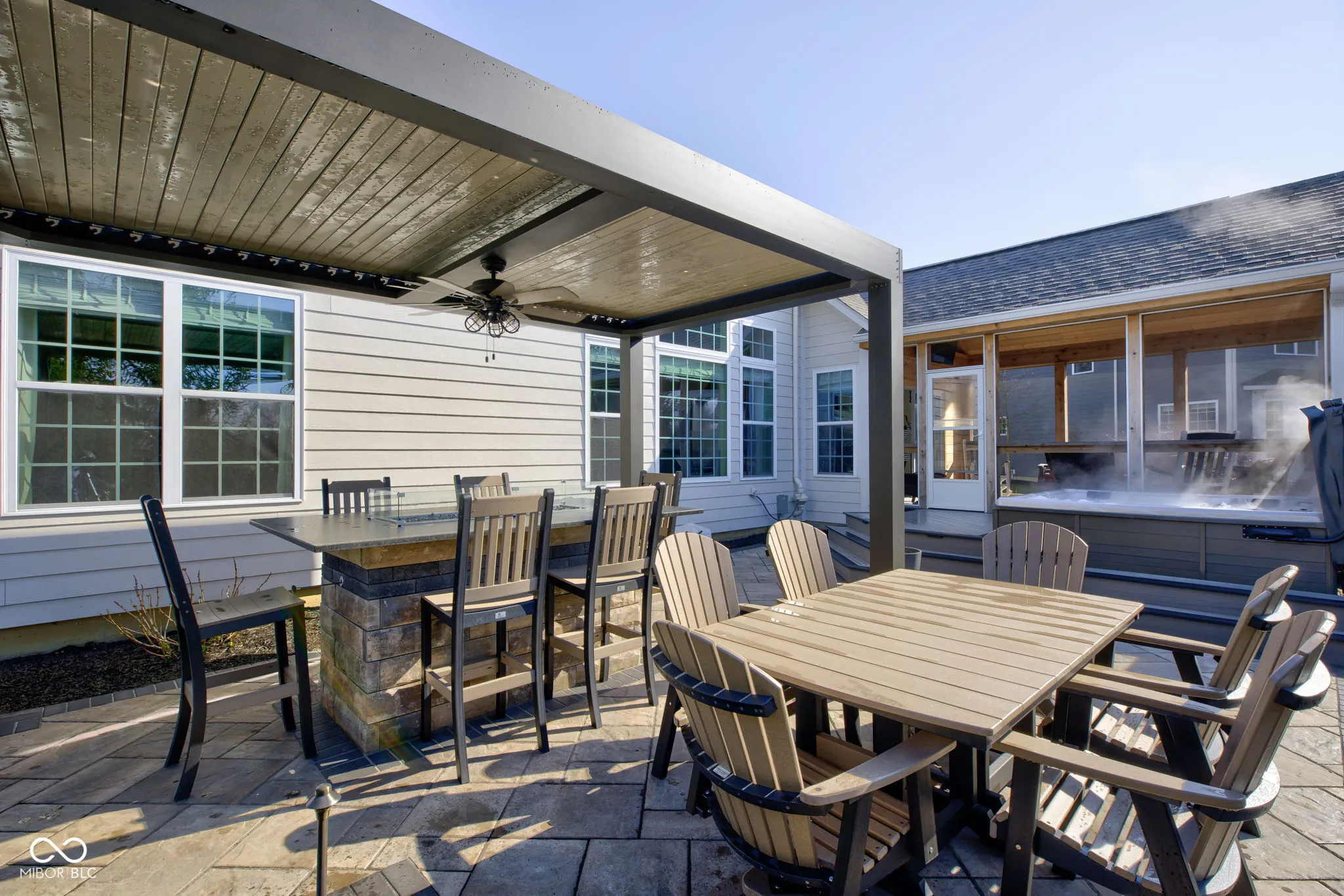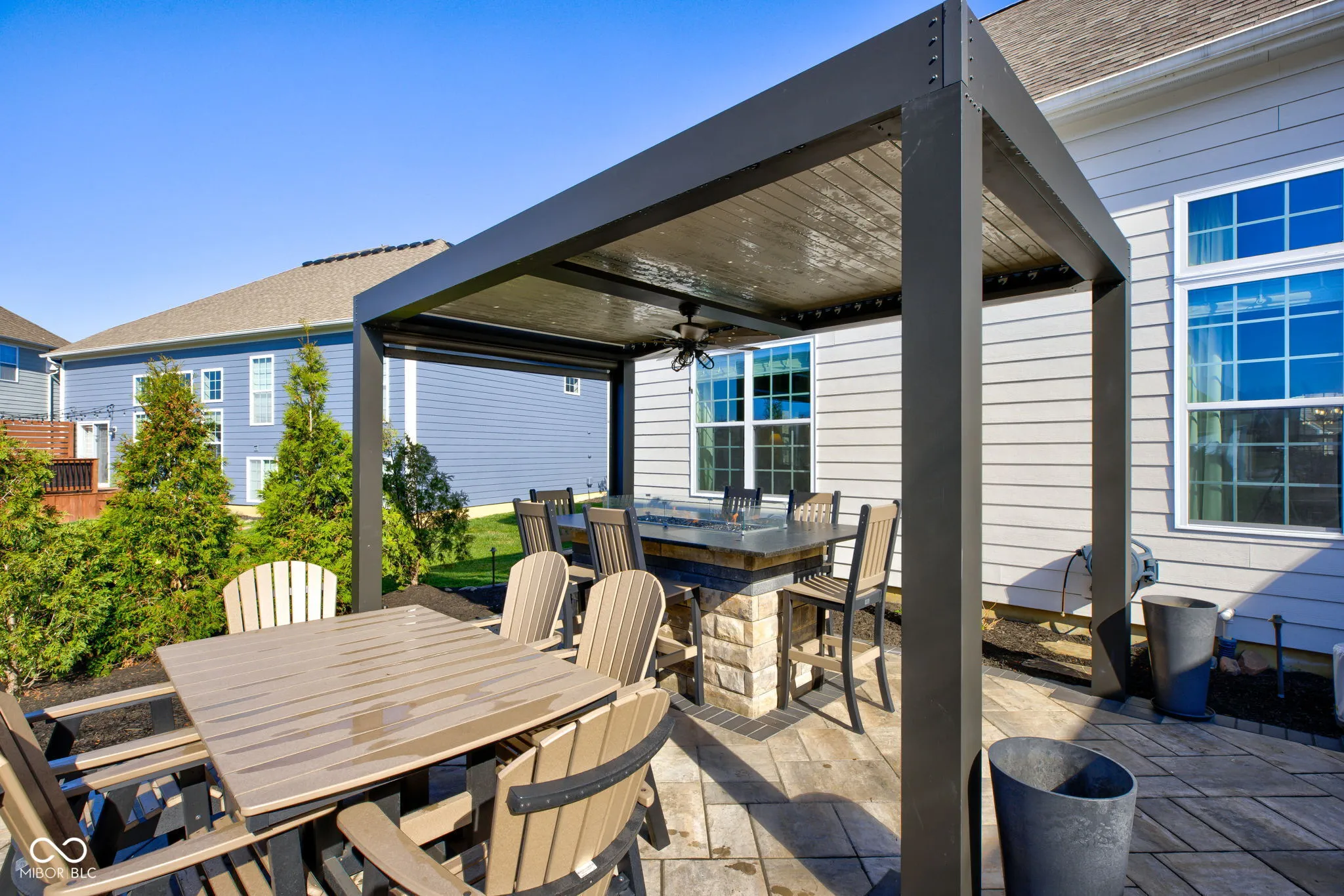 Welcome home to Ambria, located within award winning HSE Schools! Immaculate 4 bdrm/4 bath, a hard find w/the Primary bedroom on the main! This home has TONS of upgrades, including a Newly Finished bsmt & STUNNING outdoor living which is a true extension of this gorgeous home! Charming covered front porch, side load 3 car garage w/extended pad for plenty of parking greet you upon arrival. Open the door to an abundance of trim detail in the two story foyer, it will impress your guests w/the stately chandelier! NEW LVP flrs run seamlessly throughout the main floor. Dining rm w/wainscoting & tray ceiling, gives a nice focal point upon arrival! Home office tucked off the foyer w/bay windows. HUGE greatroom w/gas fireplace flanked w/built-ins, and trim floor to ceiling! Towering ceilings & a wall of windows drenching this room in natural light, giving a spectacular view of mature pines and the newly designed hardscape for an extension of your home! Open to the kitchen/hearthroom. Kitchen features 42″ cabinetry, beautiful granite counters, SS applnc including double ovens/gas range all included! Lrg breakfast bar w/plenty of room for prep work and seating! Primary bedroom off the rear of the home on the main floor ftrs a vaulted ceiling and beautiful ensuite bath including tile shower, soaking tub, comfort height, dual sink vanity w/granite cntrs. Upstairs: 3 generous sized bedrooms & a full bath. Recently Finished bsmt ftrs game room, “Costco Closet”, Built-in’s, possible 5th bedroom, Full Bath, Family Room, w/bar & seating for Game Day! Step outside onto the New addition of the Cedar screened in porch with vaulted ceilings! A focal point for the backyard! New Composite Decking takes you down to the tastefully done paver patio w/living space, dining space including a retractable roof pergola for those hot summer nights! Lush landscape all around the house & towering trees frame the homesite. Professionally installed exterior lighting giving the home a striking ambiance!