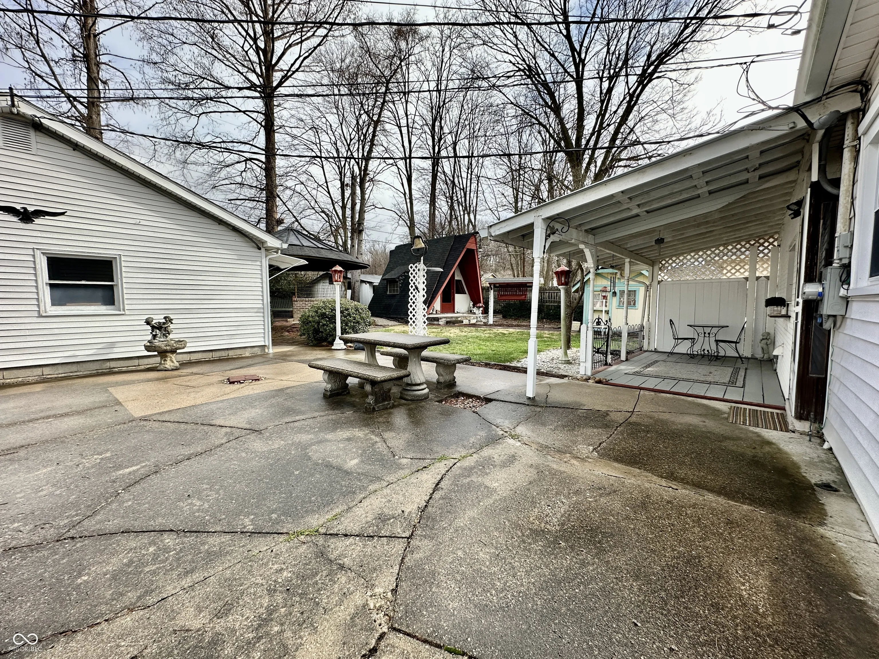 Nestled in the heart of Martinsville and backing up to the serene city park, this enchanting Dutch Colonial home is brimming with charm, history, and warmth. Lovingly cherished by the same family for over 40 years, this one-of-a-kind residence feels like a fairytale come to life-so much so, you might just believe Snow White once lived here! From the moment you arrive, you’ll be captivated by its timeless appeal, stunning architecture, and picturesque surroundings. Inside, the home boasts three (possibly four) bedrooms and two full baths, with the primary suite conveniently located on the main floor. The suite features a spacious walk-in closet and a private retreat for relaxation. The expansive Great Room is a true gathering space, filled with natural light from gorgeous oversized windows. Double doors open to a charming side patio, perfect for entertaining or unwinding in the fresh air. At the heart of the home, the formal dining room seamlessly connects the Great Room and kitchen, creating an inviting flow for family meals and celebrations. Cozy up by one of three fireplaces, adding warmth and character to this already stunning home. The sunroom is an absolute dream-an idyllic spot for morning coffee, a good book, or simply enjoying the changing seasons. Upstairs, you’ll find two oversized bedrooms, each with walk-in closets, along with a second full bathroom. The additional office/4th bedroom offers a perfect space for work, creativity, or a cozy guest retreat. The unfinished basement provides an abundance of storage, ensuring there’s a place for everything. Step outside to discover a sprawling backyard oasis. A detached 3-car garage with workshop space provides ultimate functionality, while the screened-in gazebo offers a peaceful escape. The historic A-frame Santa House is a whimsical treasure, ideal as a neighborhood clubhouse or imaginative play space. With two additional storage sheds and a covered patio, there’s truly no shortage of space.