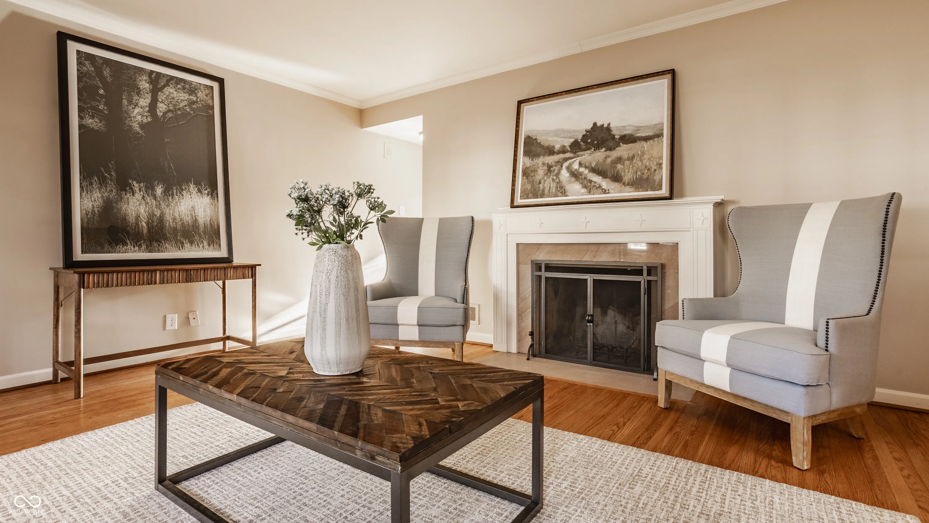 Discover this well-kept brick ranch in the desirable Arden neighborhood, conveniently close to Park Tudor School. The home boasts hardwood floors throughout, a newer roof, furnace, water heater and AC. The main floor features a primary bedroom, two additional bedrooms, and a full-hall bathroom. Enjoy the large living room with an inviting gas fireplace. The updated kitchen and formal dining room provide a perfect space for meals and entertainment, and the main-level laundry closet provides added convenience. The exquisite finished sunroom impresses with vaulted ceilings, built-in shelves, AC, heating, recessed lighting, and an abundance of natural light. The finished basement offers a rec room, half bath, and utility room. Outside, the private and professionally landscaped backyard oasis includes an open paver patio, irrigation system, full privacy fence, and a one-car attached garage. This home offers a perfect mix of classic style and modern convenience.