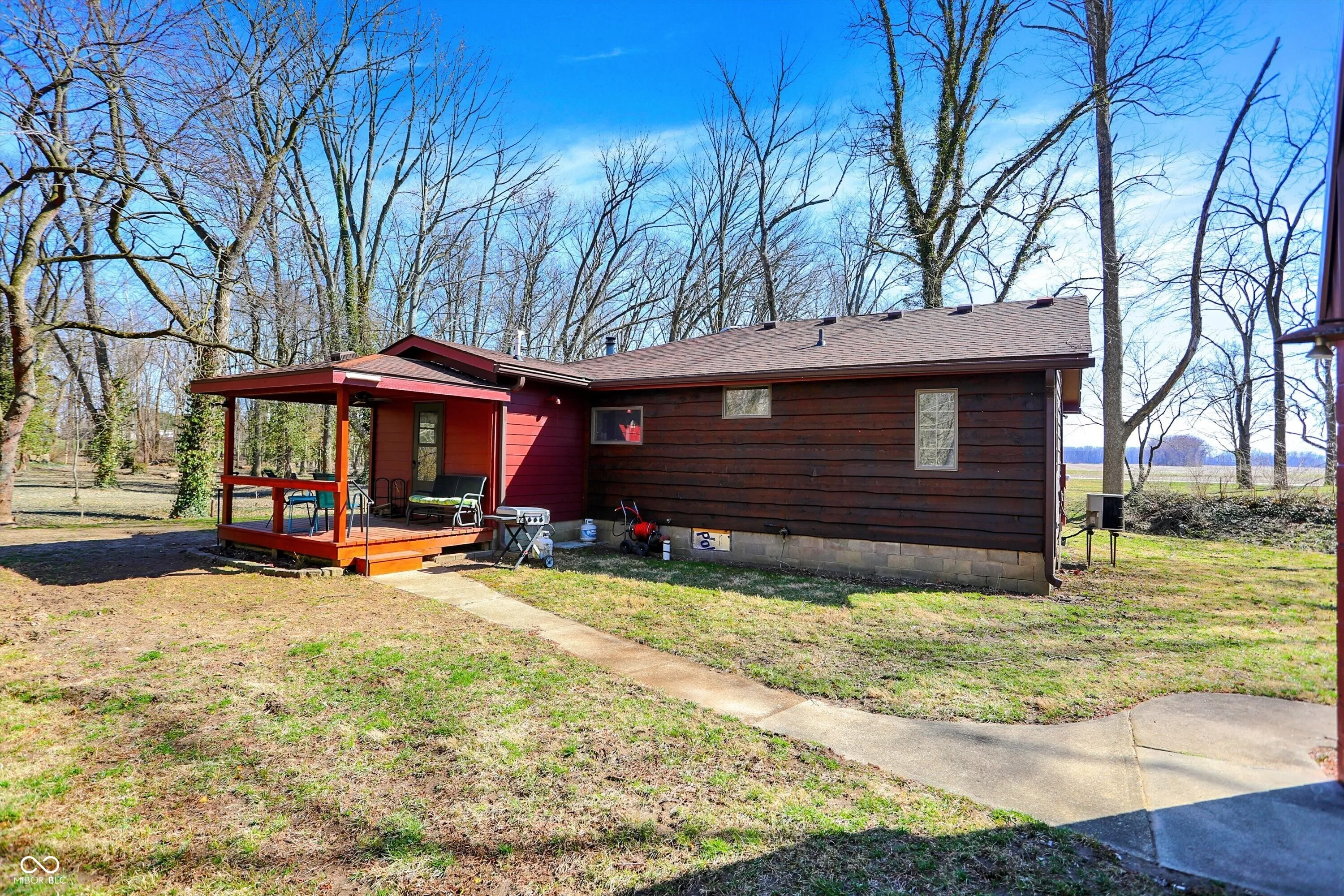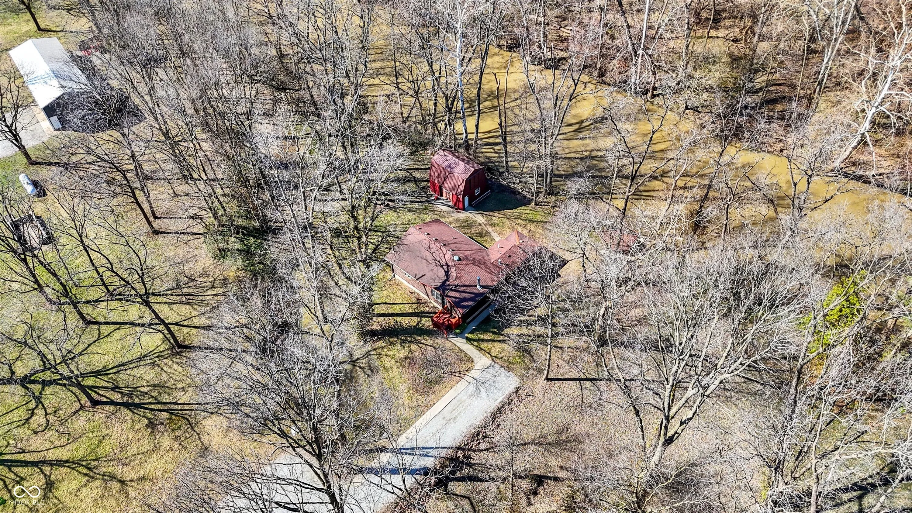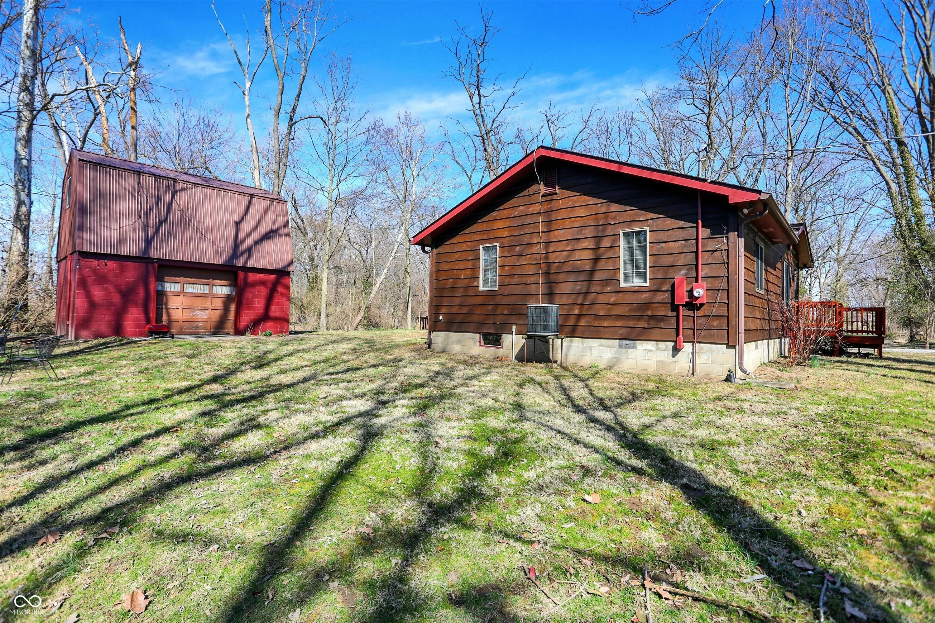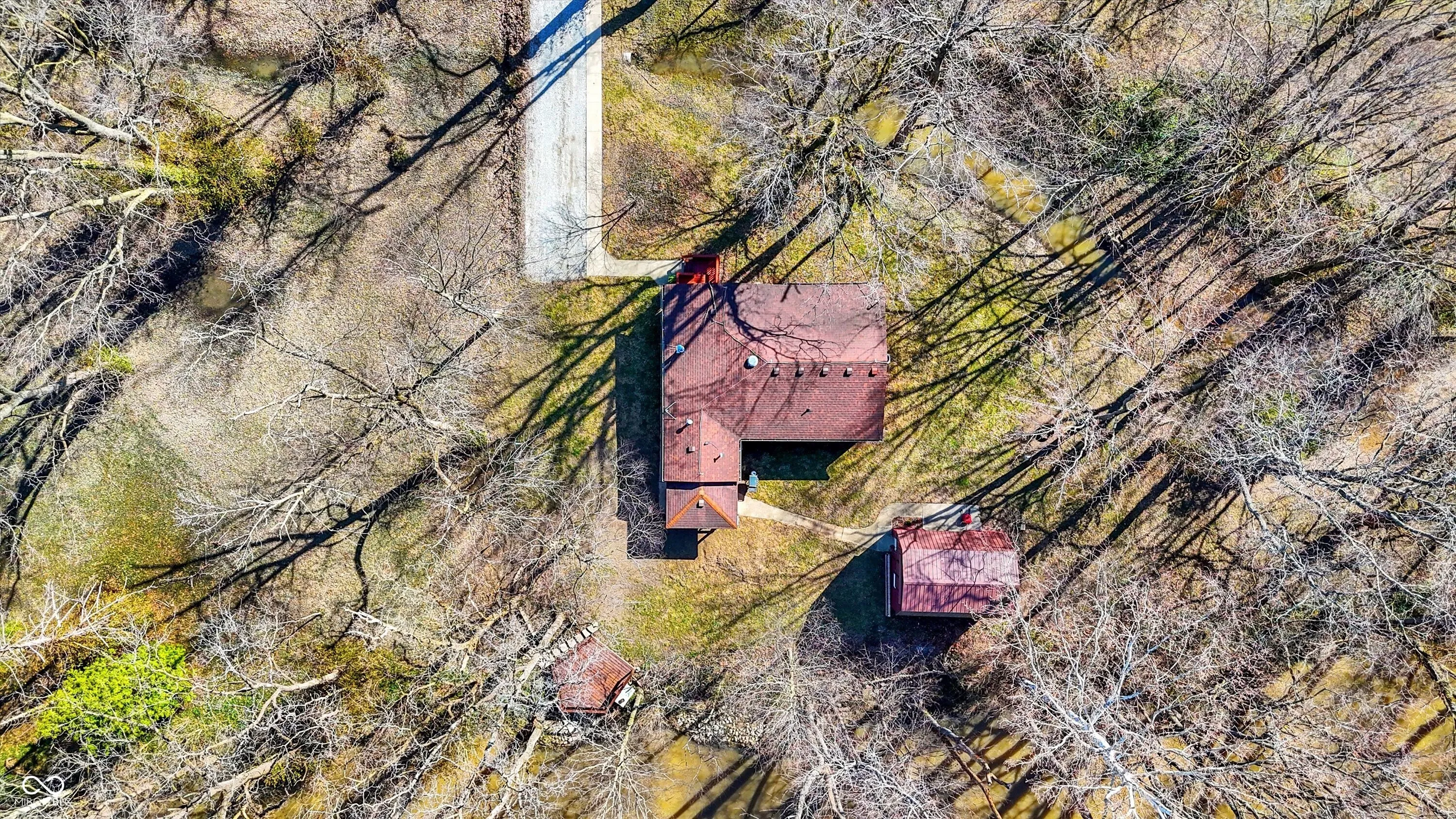 Nestled on over 5 wooded acres along the scenic Sugar Creek, this charming 2-bedroom home offers a tranquil retreat where you can enjoy a year-round vacation lifestyle. The residence features beautiful hardwood floors, a dining area with a bay window overlooking the serene landscape, and a cozy wood-burning fireplace. Step outside to the covered patio deck and take in the peaceful views of the creek. For hobbyists or mechanics, the property includes a spacious 70’x24′ pole barn equipped with electricity, heat, and a concrete floor. Additionally, there is a concrete block 1-car detached garage with loft storage. Conveniently located with easy access to major roads and interstates, this unique property blends privacy, nature, and practicality in one perfect package!