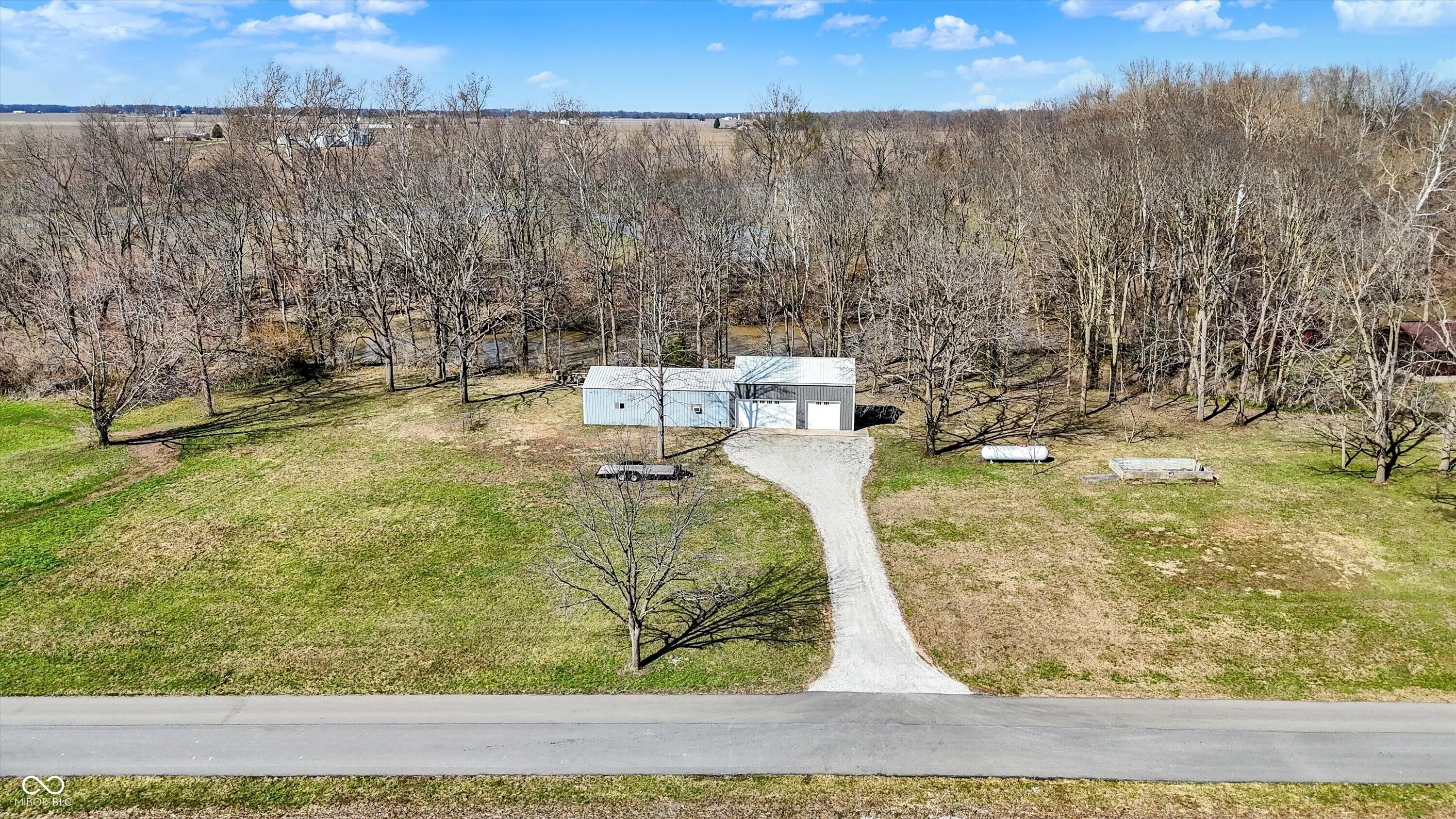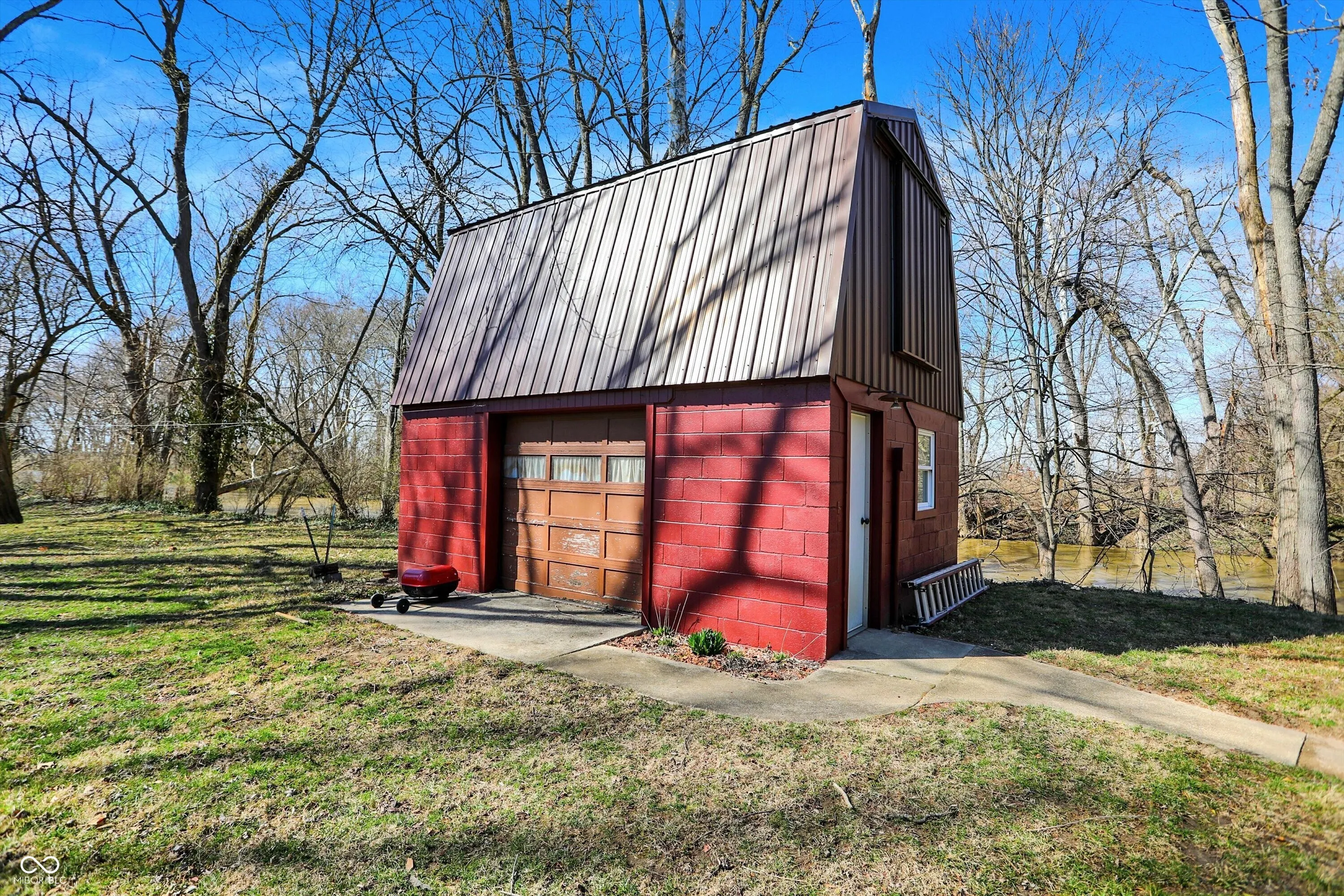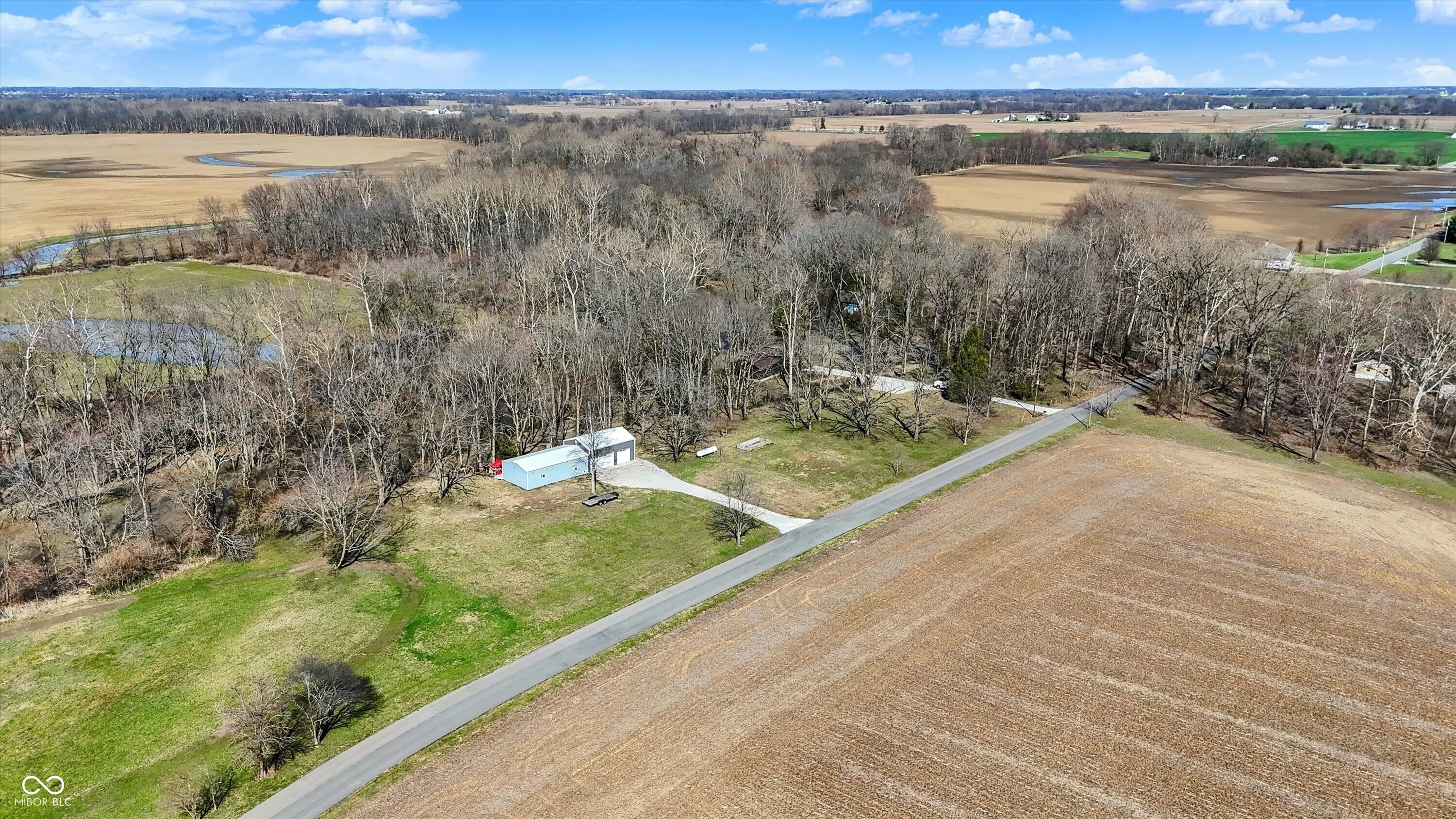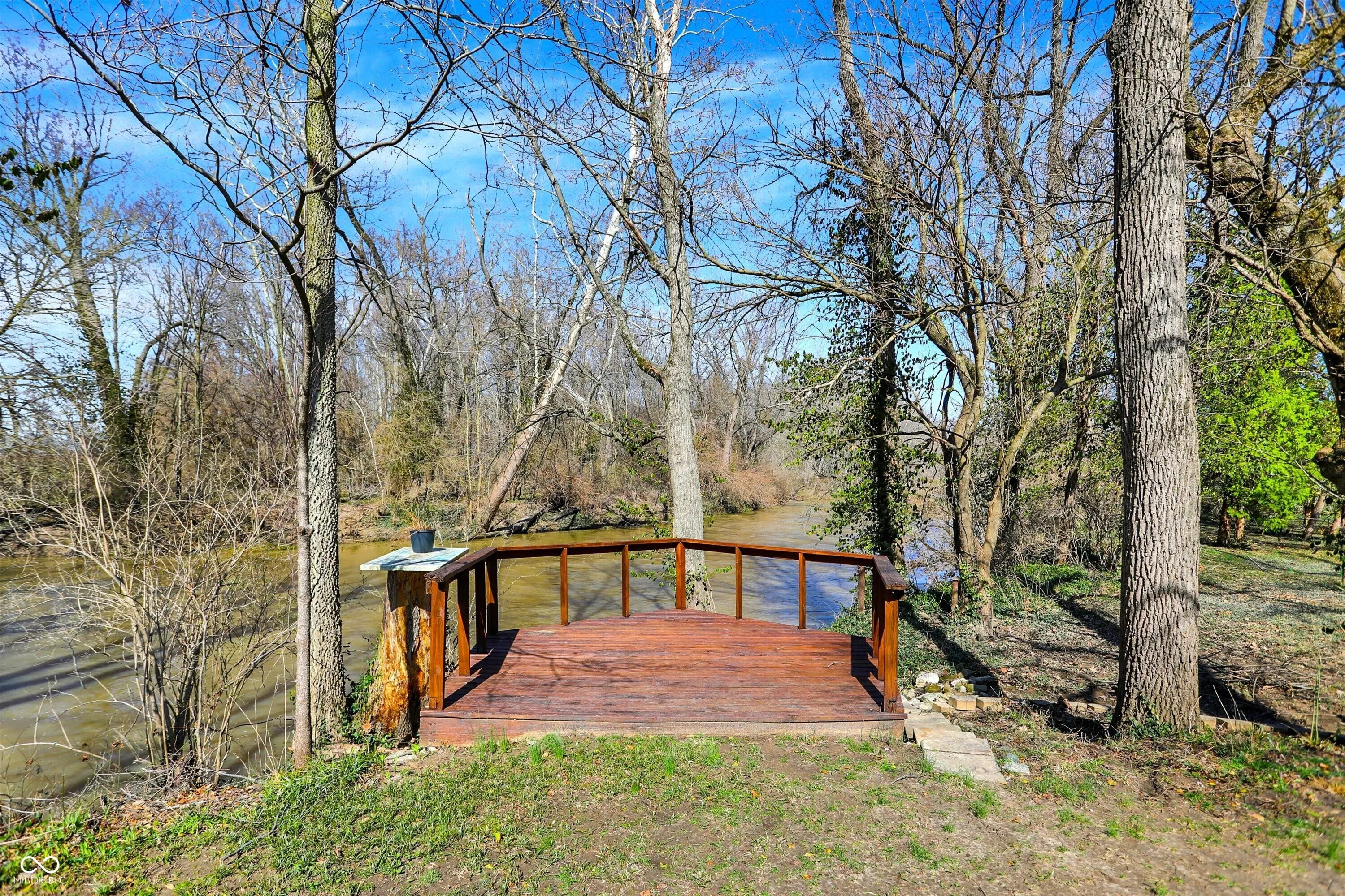 Nestled on over 5 wooded acres along the scenic Sugar Creek, this charming 2-bedroom home offers a tranquil retreat where you can enjoy a year-round vacation lifestyle. The residence features beautiful hardwood floors, a dining area with a bay window overlooking the serene landscape, and a cozy wood-burning fireplace. Step outside to the covered patio deck and take in the peaceful views of the creek. For hobbyists or mechanics, the property includes a spacious 70’x24′ pole barn equipped with electricity, heat, and a concrete floor. Additionally, there is a concrete block 1-car detached garage with loft storage. Conveniently located with easy access to major roads and interstates, this unique property blends privacy, nature, and practicality in one perfect package!