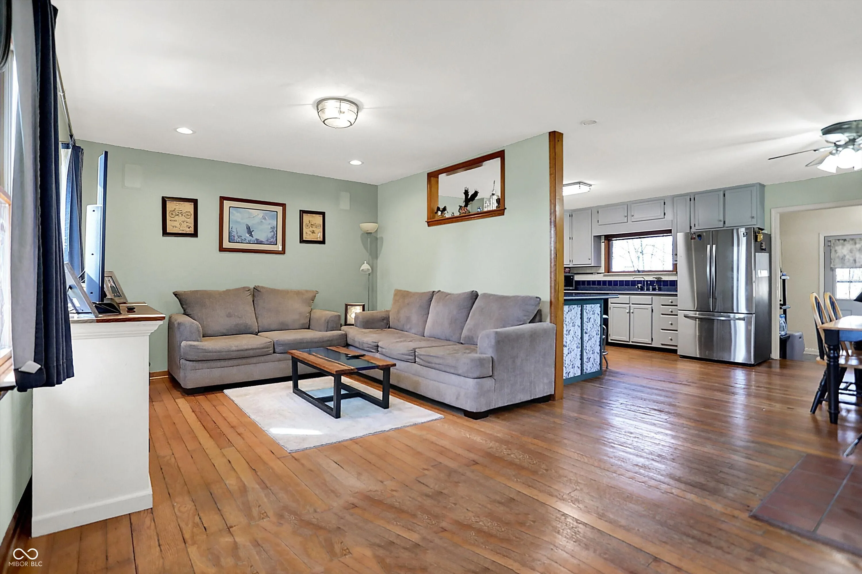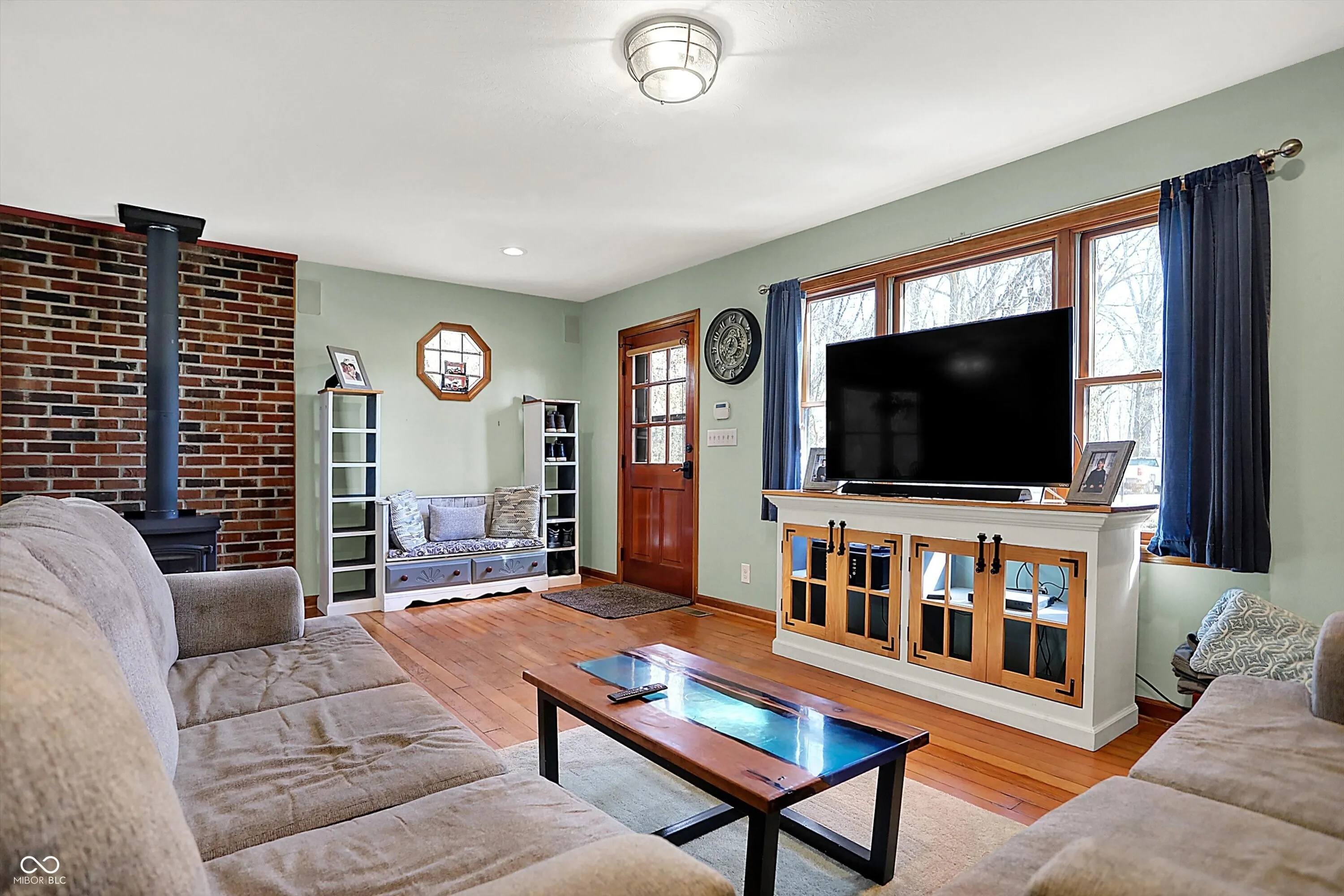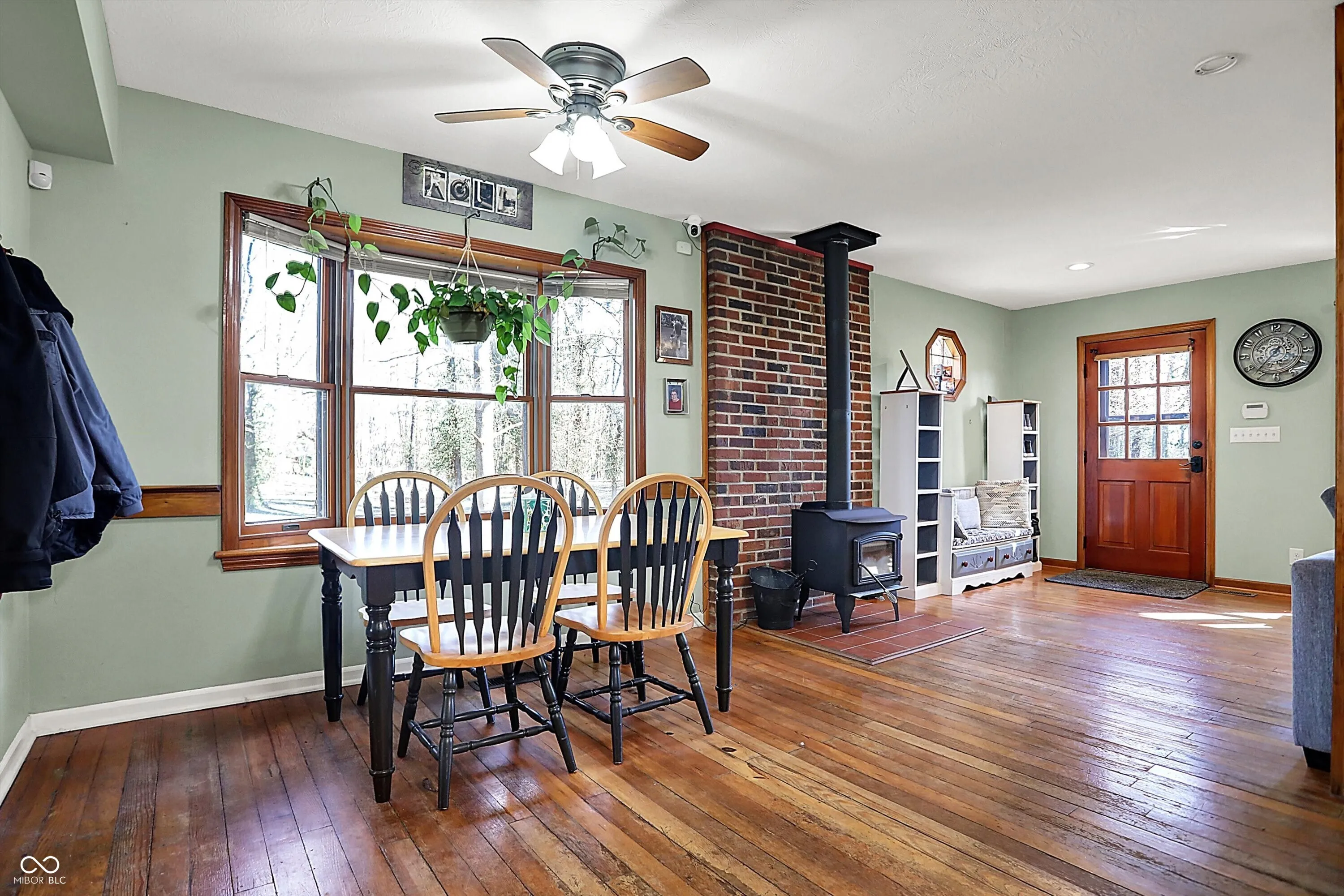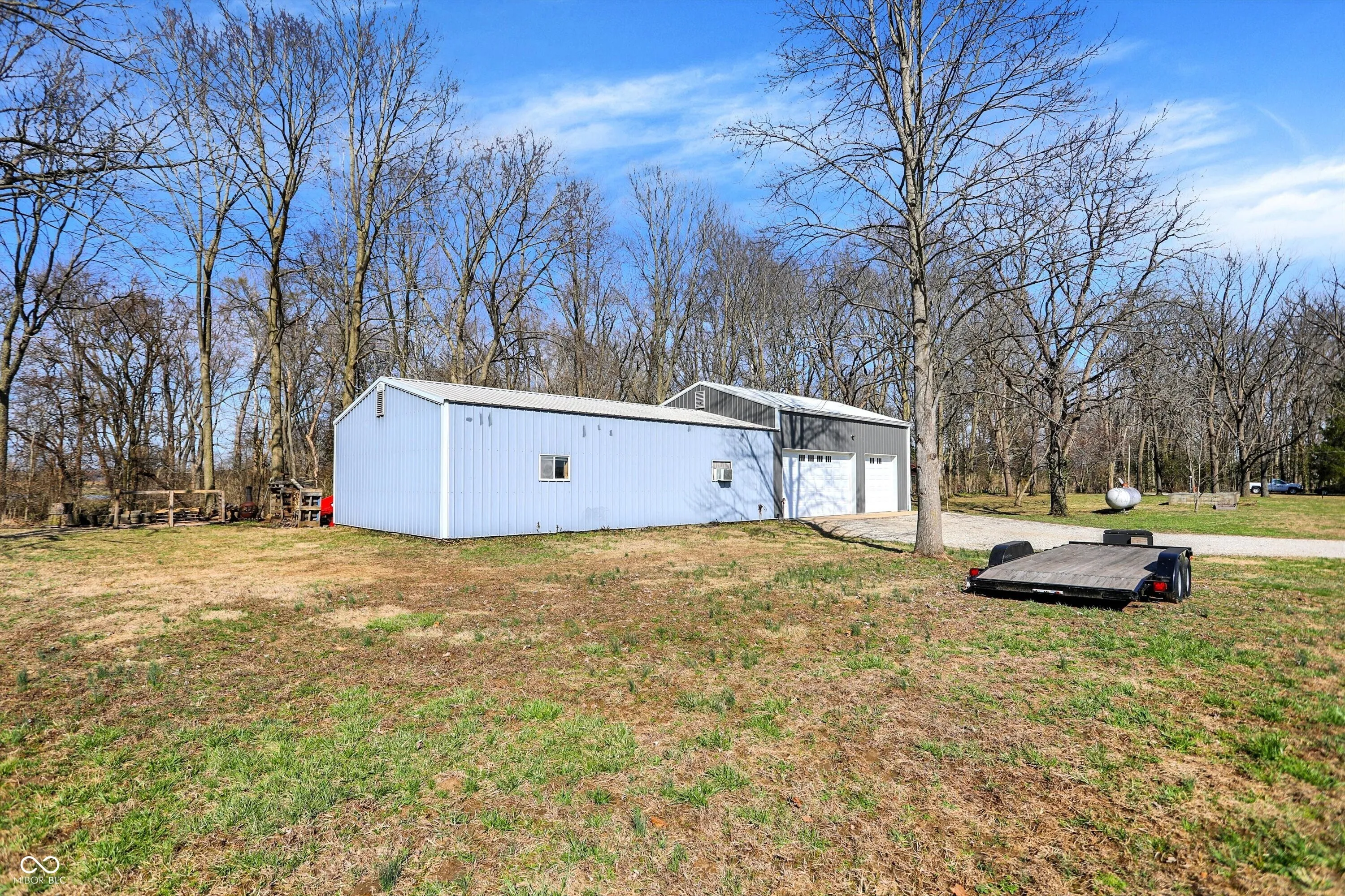 Nestled on over 5 wooded acres along the scenic Sugar Creek, this charming 2-bedroom home offers a tranquil retreat where you can enjoy a year-round vacation lifestyle. The residence features beautiful hardwood floors, a dining area with a bay window overlooking the serene landscape, and a cozy wood-burning fireplace. Step outside to the covered patio deck and take in the peaceful views of the creek. For hobbyists or mechanics, the property includes a spacious 70’x24′ pole barn equipped with electricity, heat, and a concrete floor. Additionally, there is a concrete block 1-car detached garage with loft storage. Conveniently located with easy access to major roads and interstates, this unique property blends privacy, nature, and practicality in one perfect package!