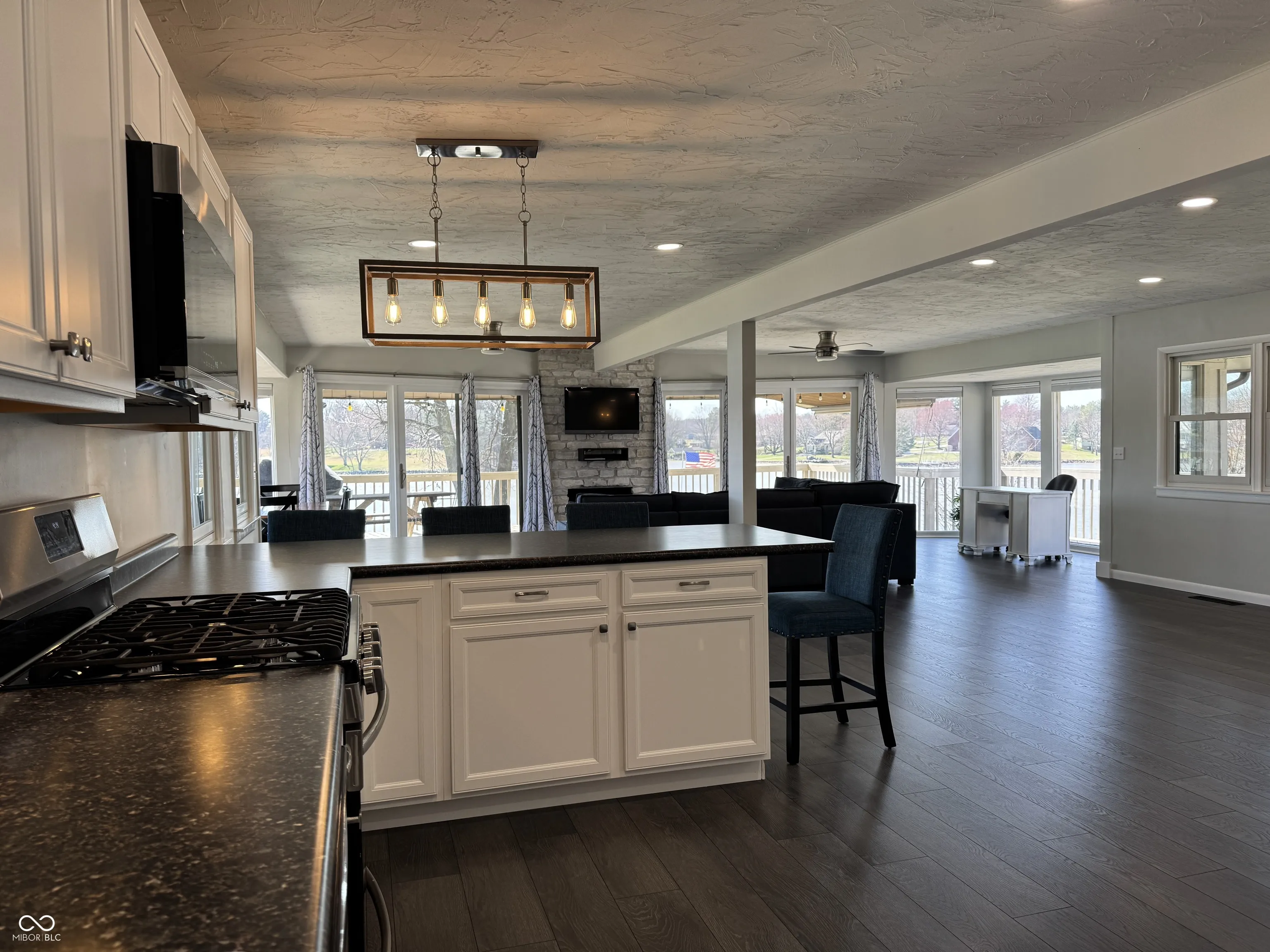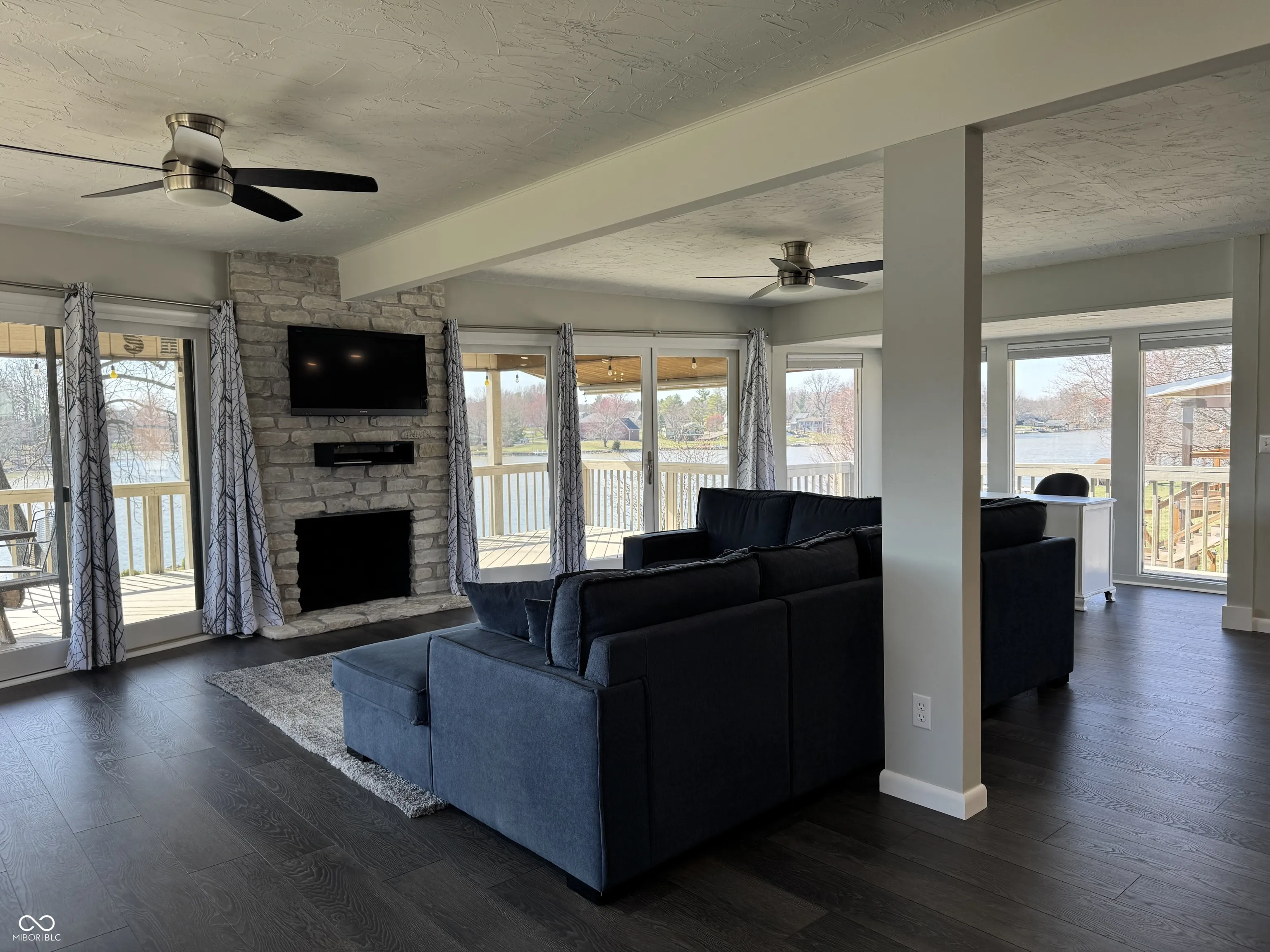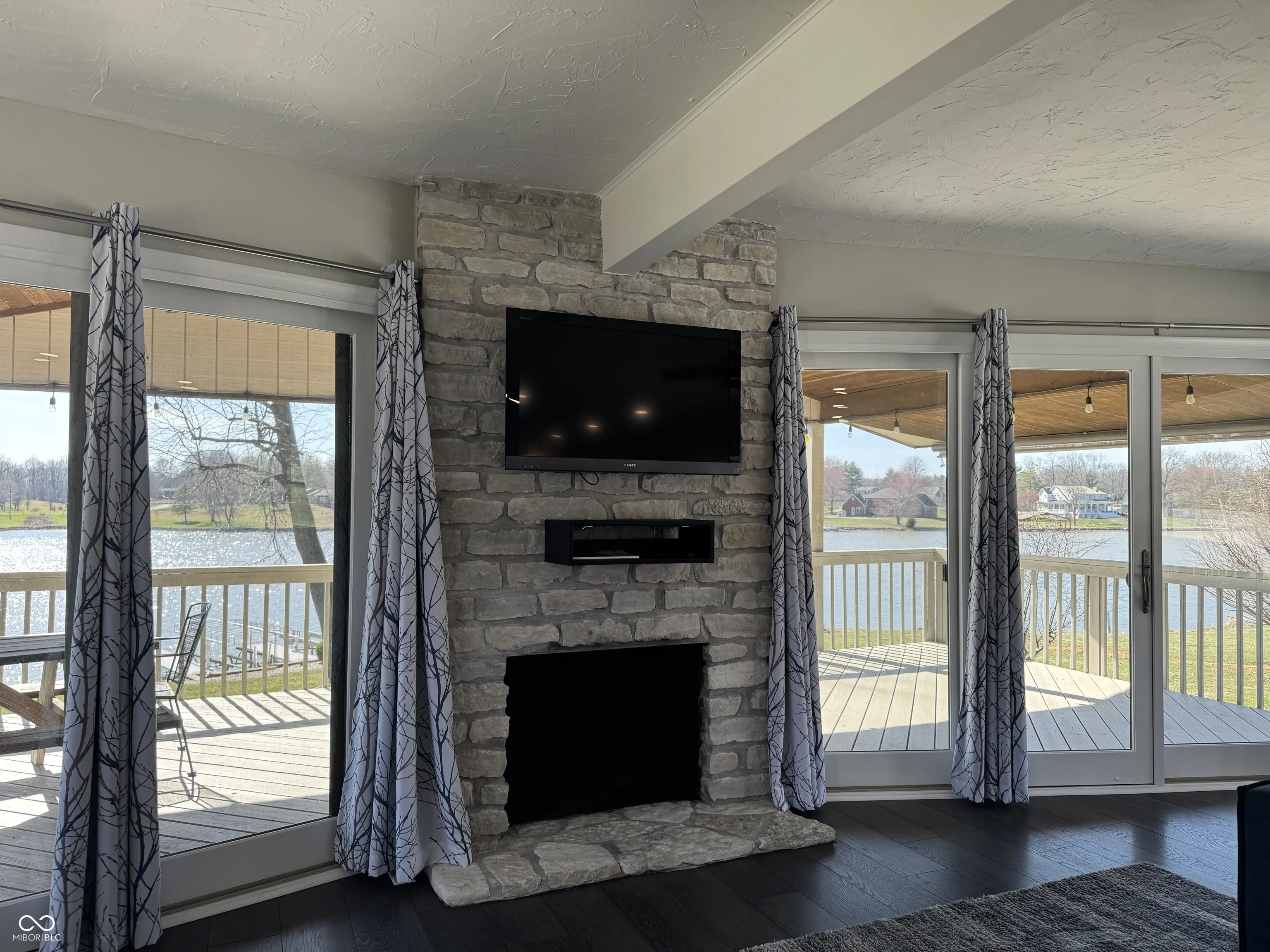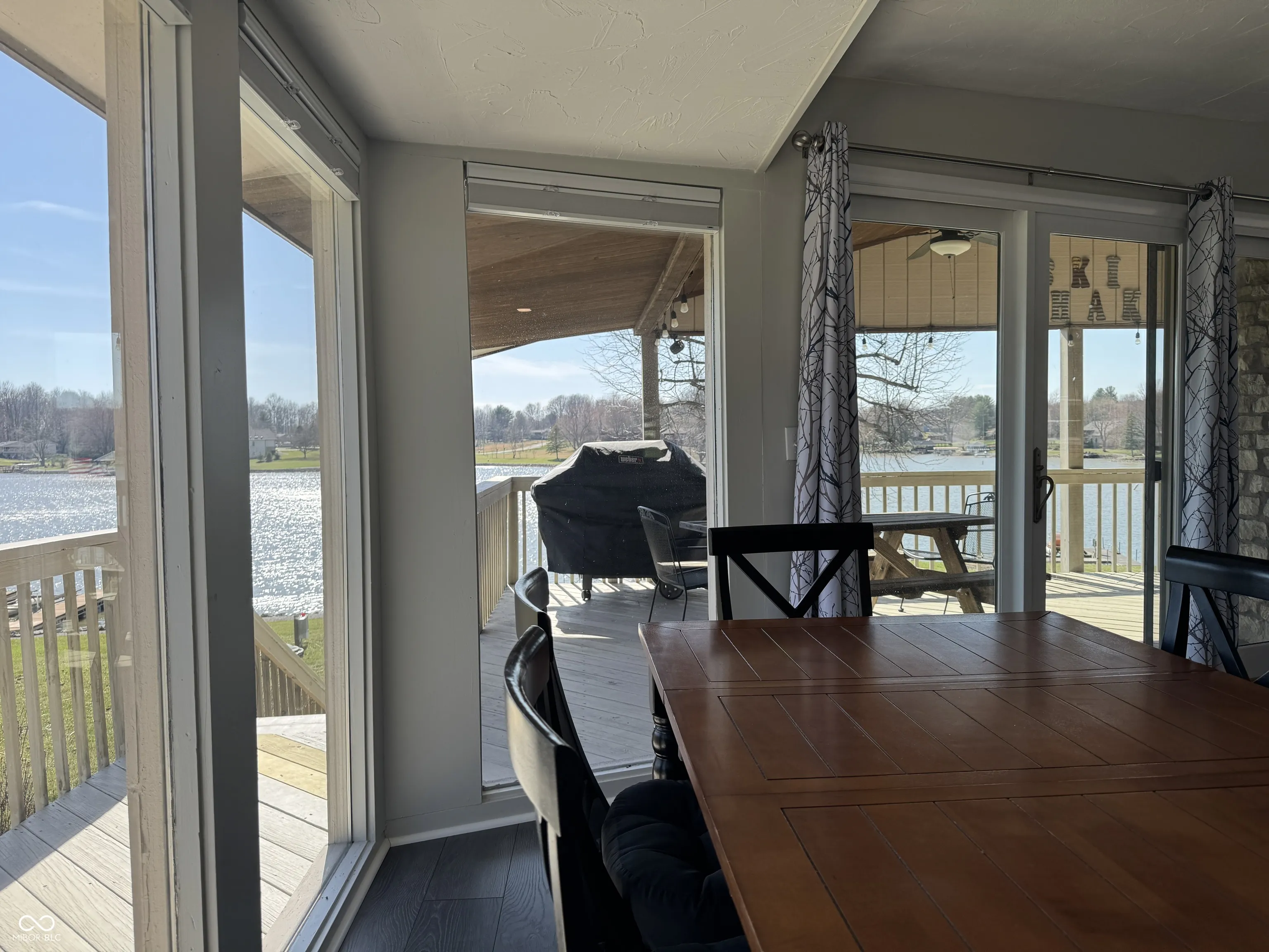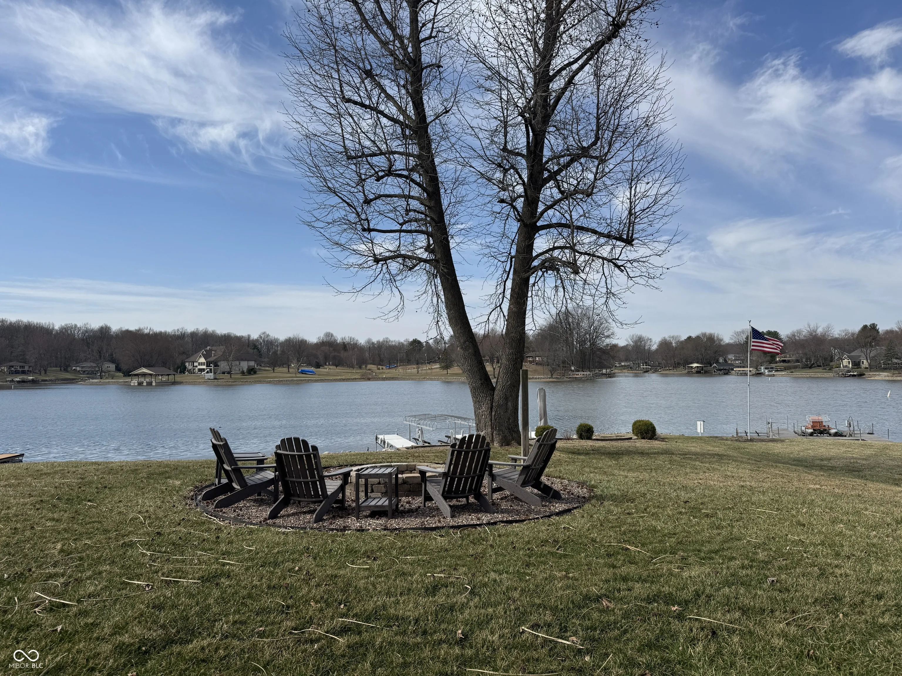 Whether you are wanting a lake home to entertain or just sit back, relax, and enjoy the sunsets, this could be the home you’ve been waiting for. Floor to ceiling windows on both sides of the masonry fireplace maximizes the phenomenal view. Recently renovated, this 3 bedroom 2 bath home is ready to move right in and enjoy lake life. Extra-large great room creates an open space that will fit the needs of any family. Two bump outs add additional space currently used as a dining area and simple office. The outdoor covered deck extends the living space literally bringing the outdoors in and the indoors out. Beautiful kitchen with appliances remaining has ample counter and cabinet space. Enjoy s’mores at the outdoor fire pit or hang out on the paver patio near the waters edge while you enjoy stunning sunsets. No maintenance dock has two electric boat lifts. Having overnight guests is super easy with the master bedroom on one side of the home and two additional bedrooms on the other. The basement offers great storage with lots of possibilities. Three-bay detached extra deep garage has all the room you need for your lake toys and is large enough to provide boat storage in the off season.