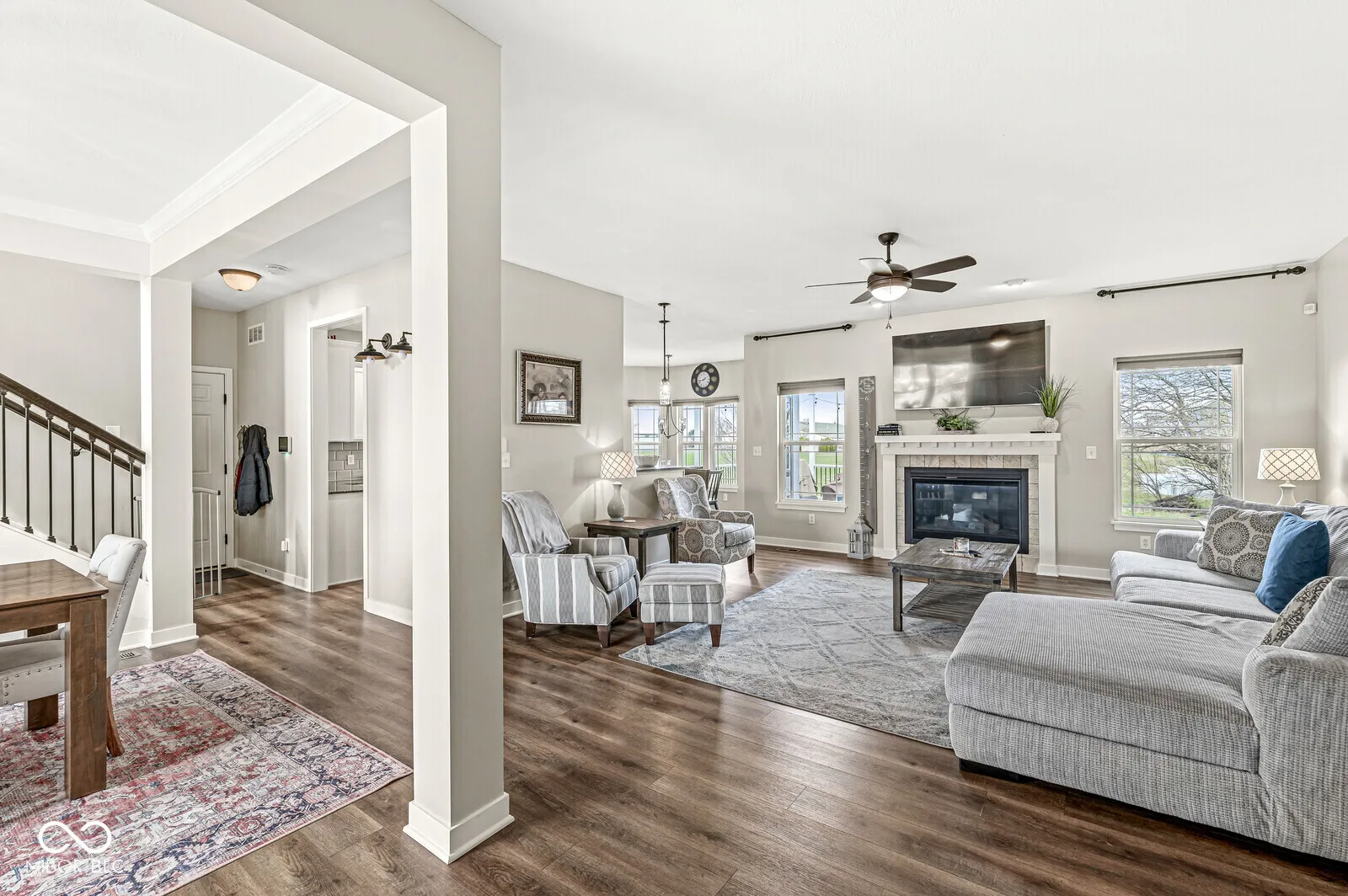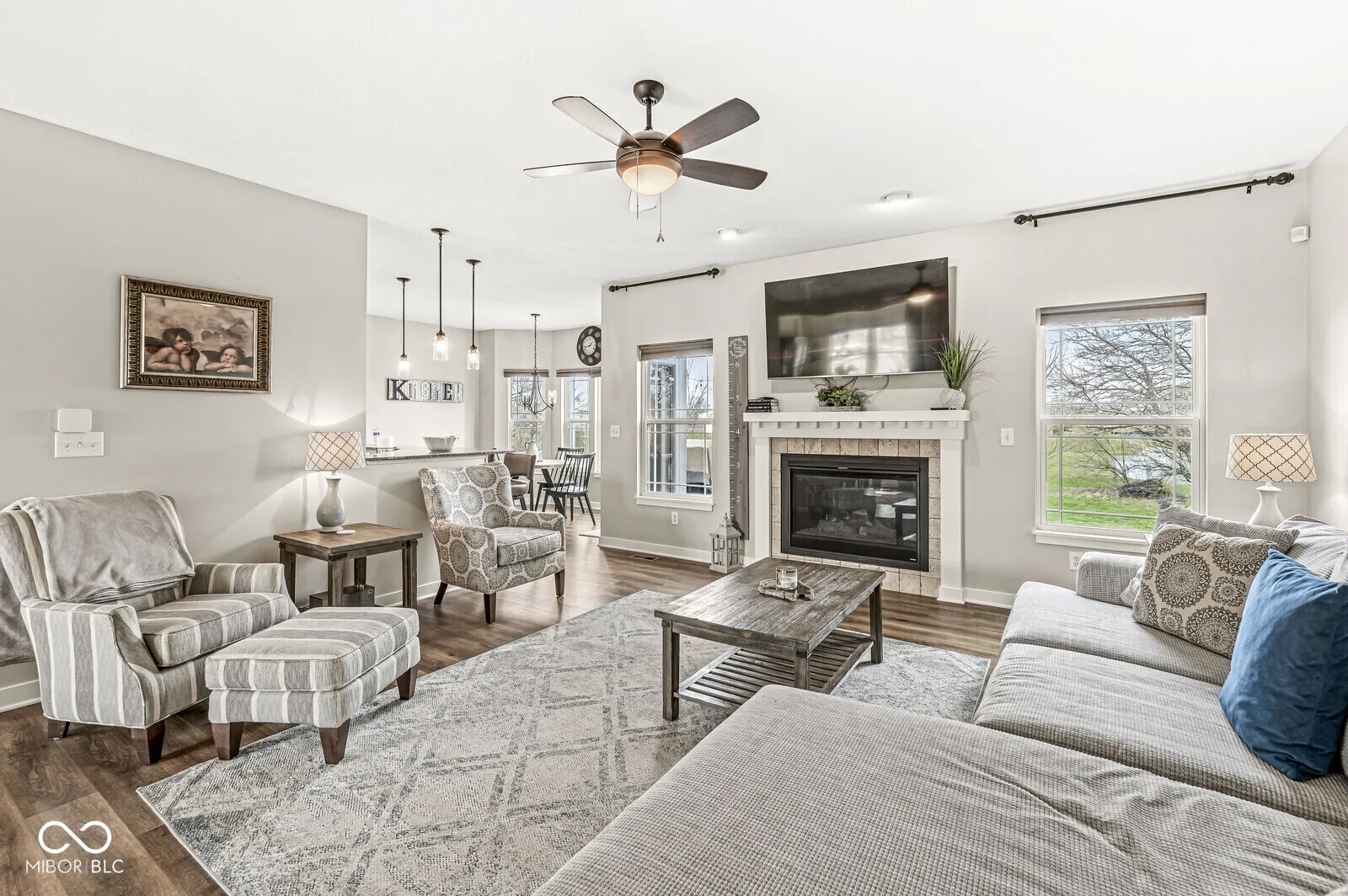Absolutely beautiful 3 (possibly 4) Bedrooms, 3.5 Baths with a full finished Basement you will definitely love. Craftsman style construction & attention to detail. The open floor plan includes a Great Rm with gas log fireplace, Dining Rm, Kitchen & Breakfast Rm. Engineered hardwoods thoughout the 1st floor & in the Basement. Refinished white cabinets, granite countertops & breakfast bar, tile backsplash & stainless appliances coordinate well. Upstairs enjoy 3 Bedrooms, convenient Laundry closet & a 20×11 Rec/Play room (or easily 4th Bedroom). The updated Primary Bath includes a tiled shower, garden tub w/tile surround & double vanities. Continue the fun in the lower level finished Basement watching movies, playing games or just hanging out. There is also a full bath, no need to go upstairs when nature calls. Next you will really love the backyard, either on the newer Trex deck or on the stamped concrete patio with built in firepit. All this overlooks a backyard that is open to a pond & field that can be used for more playtime. Included is a Vivent Security system – doorbell camera, remote pad lock, door sensors, fire monitor, Great Rm motion detector & a camera off the deck in back. There is also an invisible fence the seller will leave 1 collar for. Make sure to come see this home.