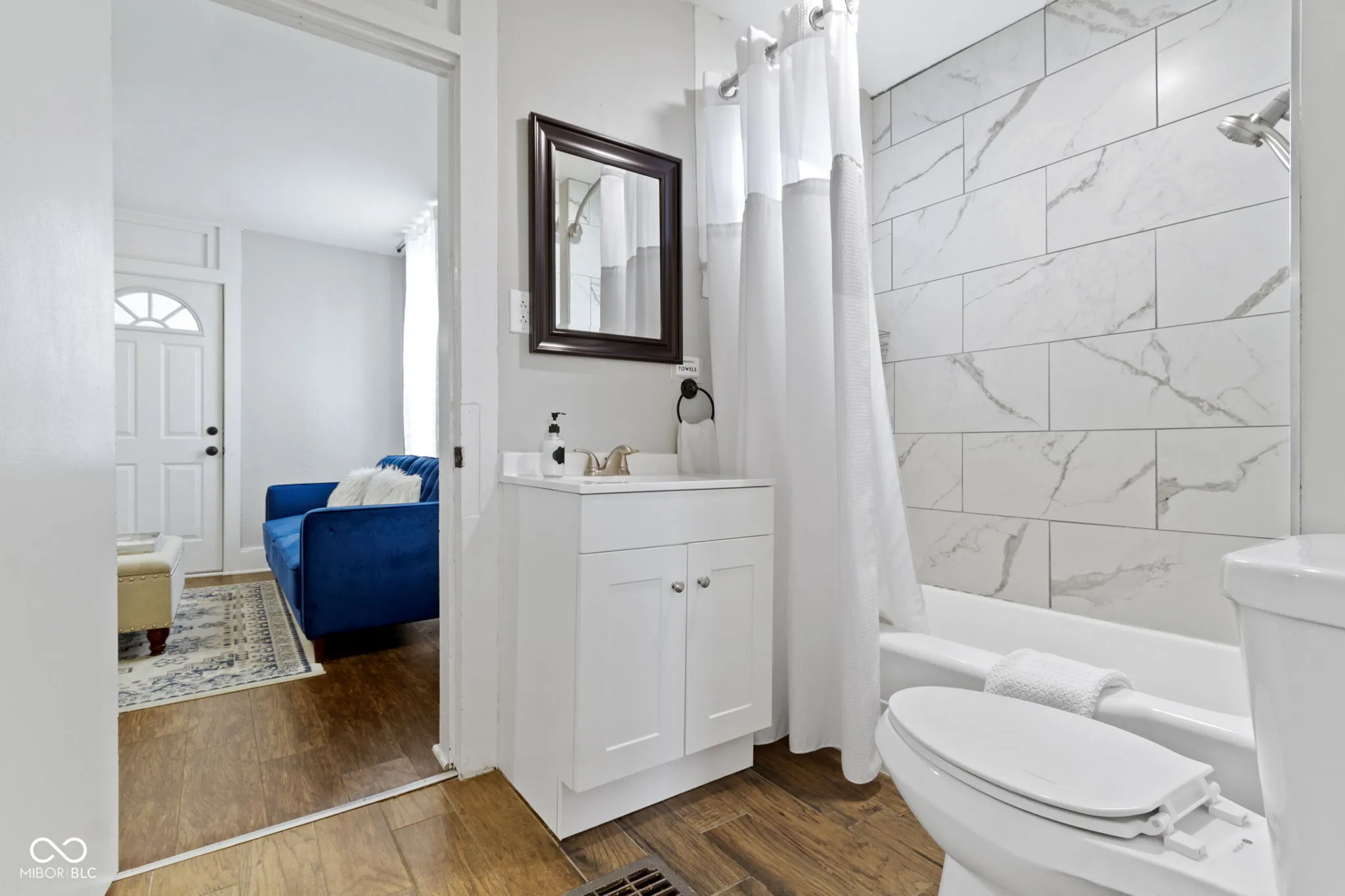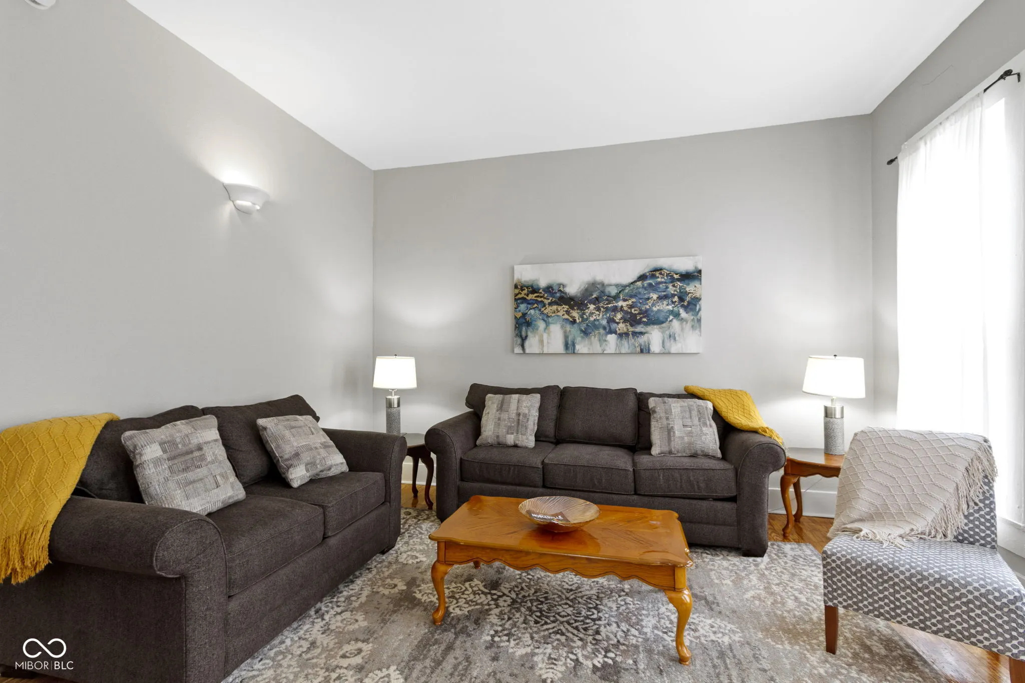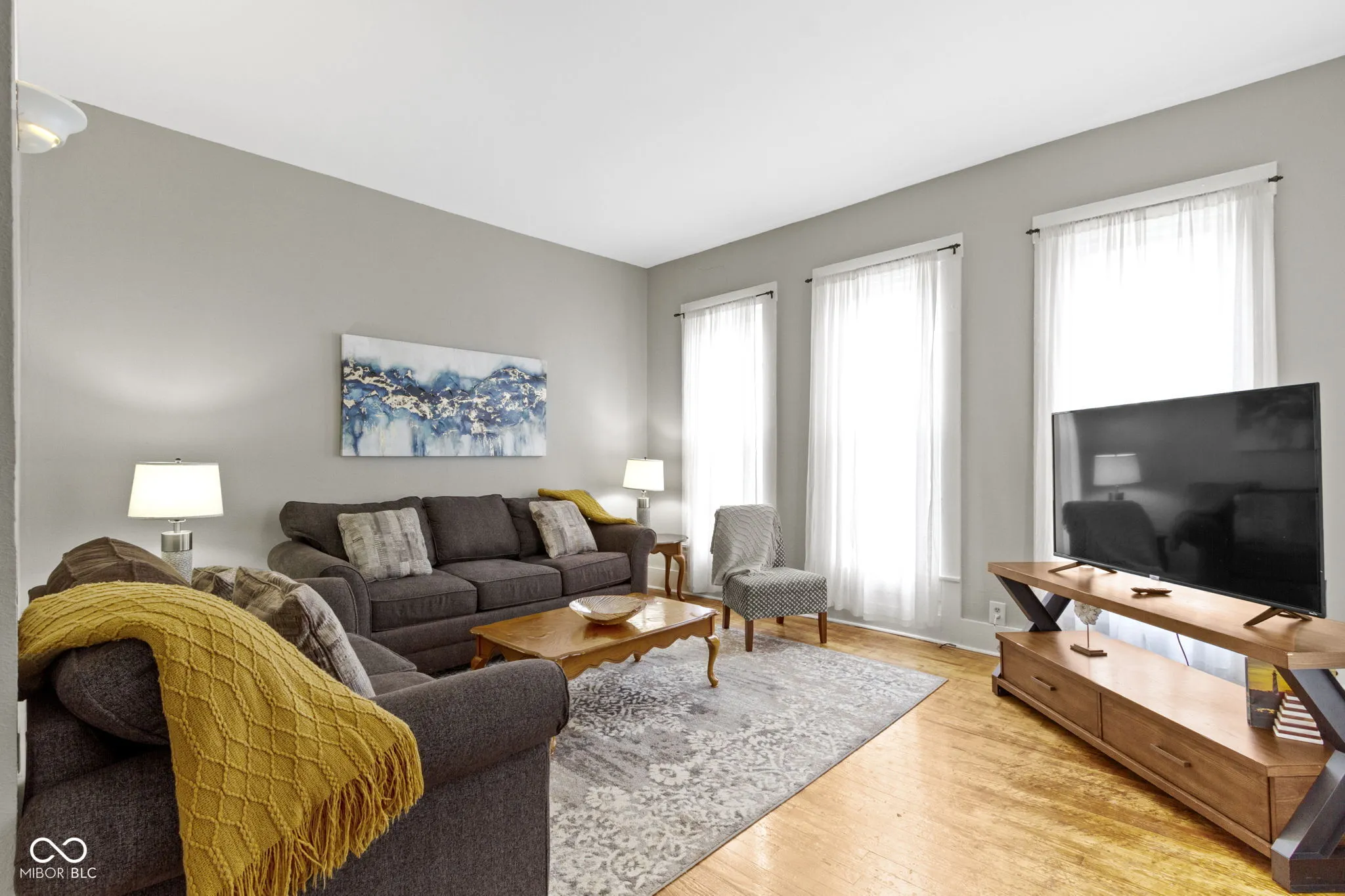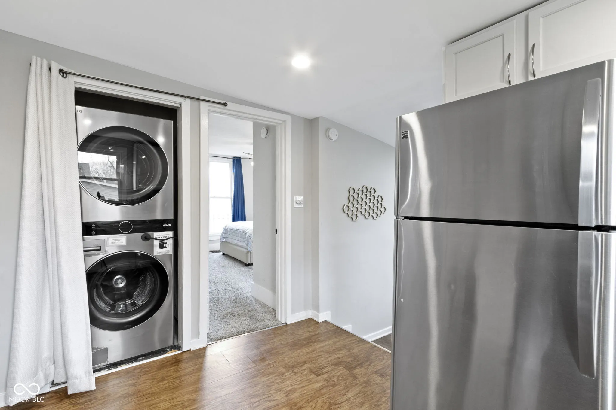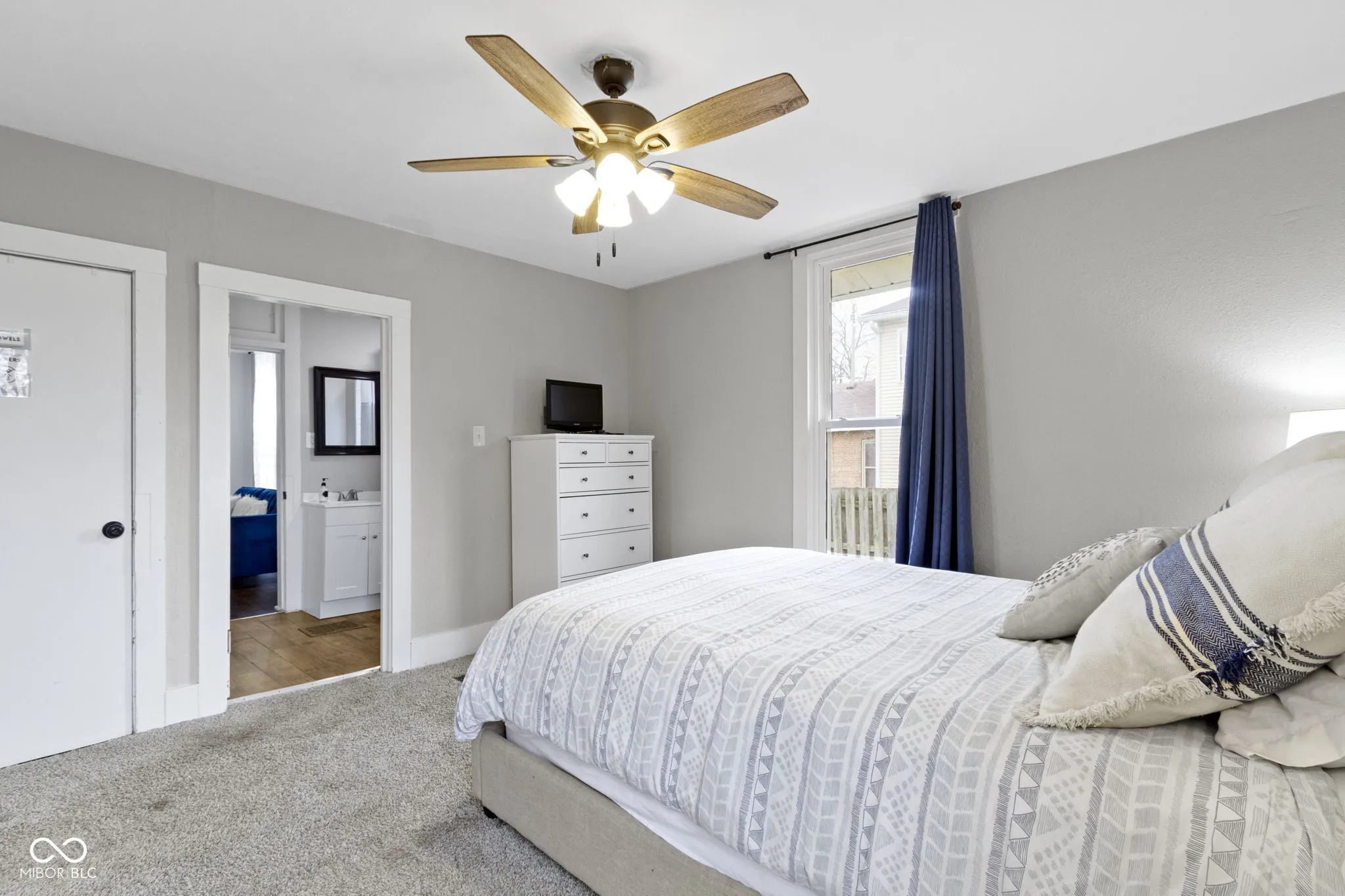 Welcome to 1240 Wayne Street, a beautifully renovated historic gem nestled in a serene neighborhood just steps from downtown Noblesville. This home seamlessly blends classic charm with modern upgrades, offering the perfect balance of character and convenience. Step inside to discover a bright and airy open-concept living space, featuring fresh paint, new hardwood flooring, and abundant natural light streaming through brand-new windows. The living room flows seamlessly into a versatile dining area, which opens to the updated kitchen, creating an ideal layout for entertaining or everyday living. Recessed lighting and a ceiling fan enhance the space, ensuring a comfortable atmosphere year-round. The kitchen boasts sleek stainless steel appliances (all new!), including a double-door refrigerator, electric range, and over-the-range microwave. Crisp white cabinetry, granite countertops, and ample storage make this space both functional and stylish. A convenient in-unit stackable washer and dryer add to the home’s practicality, while large windows offer views of the backyard. The primary bedroom features plush carpeting, a neutral color palette, and plenty of natural light, creating a peaceful retreat. The updated bathroom showcases elegant marble-look tile, a sleek vanity, and a tub/shower combo, providing a modern, spa-like experience. Outside, the home’s charming blue exterior is complemented by a well-maintained lawn and a concrete patio area, perfect for enjoying quiet evenings. The backyard offers space for gardening or outdoor activities, with mature trees providing shade and privacy. This home has been meticulously updated with new flooring, fresh paint, modern appliances, energy-efficient windows, and a new HVAC system, ensuring comfort and low maintenance. Located just a short walk from downtown Noblesville’s shops, restaurants, and events, this historic treasure offers the best of both worlds. Schedule your private tour today!