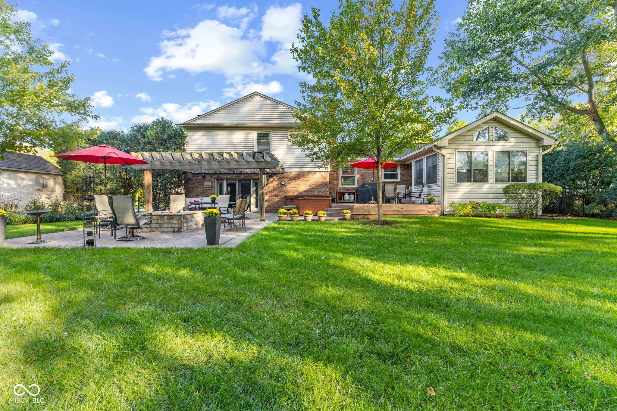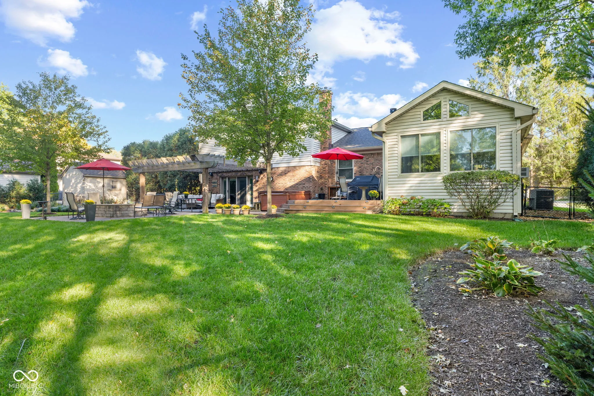 Welcome to 3453 Briar Creek Ln. This beautifully updated 4-bedroom, 2.5-bathroom home offers nearly 4,000 square feet of thoughtfully designed living space in one of Carmel’s most sought-after neighborhoods. From the moment you walk in, you’ll notice the warmth, care, and quality that make this house feel like home. The main level features a bright, open layout with hardwood floors and fresh paint (2023), offering multiple living and dining areas perfect for both entertaining and everyday living. The kitchen is well-appointed with generous counter space, updated appliances, and a layout that makes everything feel connected and functional. A cozy family room invites you to relax, and the sunroom-with its walls of windows-creates a bright, peaceful space to enjoy all year long. Upstairs, you’ll find all four bedrooms, including a spacious primary suite with a walk-in closet and private bath. Updated flooring (2020) and freshly painted bedrooms create a clean, cohesive feel. The fully finished basement, remodeled in 2024, adds valuable flex space-ideal for a home office, media room, rec area, or gym-with additional storage to keep everything organized. Out back, this home truly shines. A custom deck, stone patio, pergola, built-in firepit, and hot tub create a private backyard oasis, surrounded by mature trees and landscaping. There’s even a sprinkler system to keep the yard looking its best. Recent upgrades including a new roof (2020), furnace and A/C (2013), sump pump (2025), water heater (2019), and epoxied garage floor ensure the home is as reliable as it is beautiful, with thoughtful features like sunroom blinds and gutter covers adding extra comfort. The home blends space, style, and long-term peace of mind-all in a prime Carmel location close to schools, parks, and local amenities. This is a home where you can settle in and truly stay awhile.