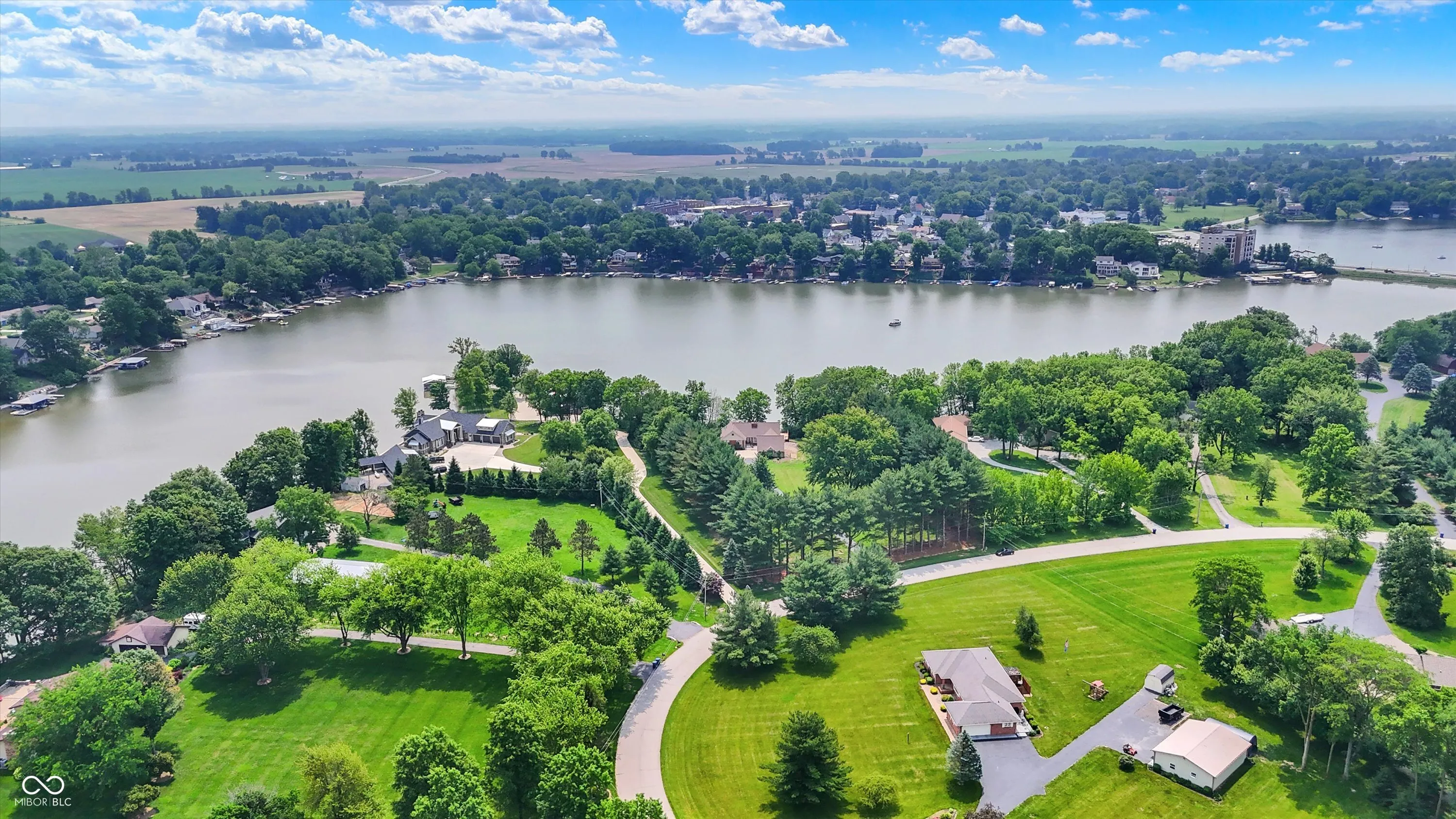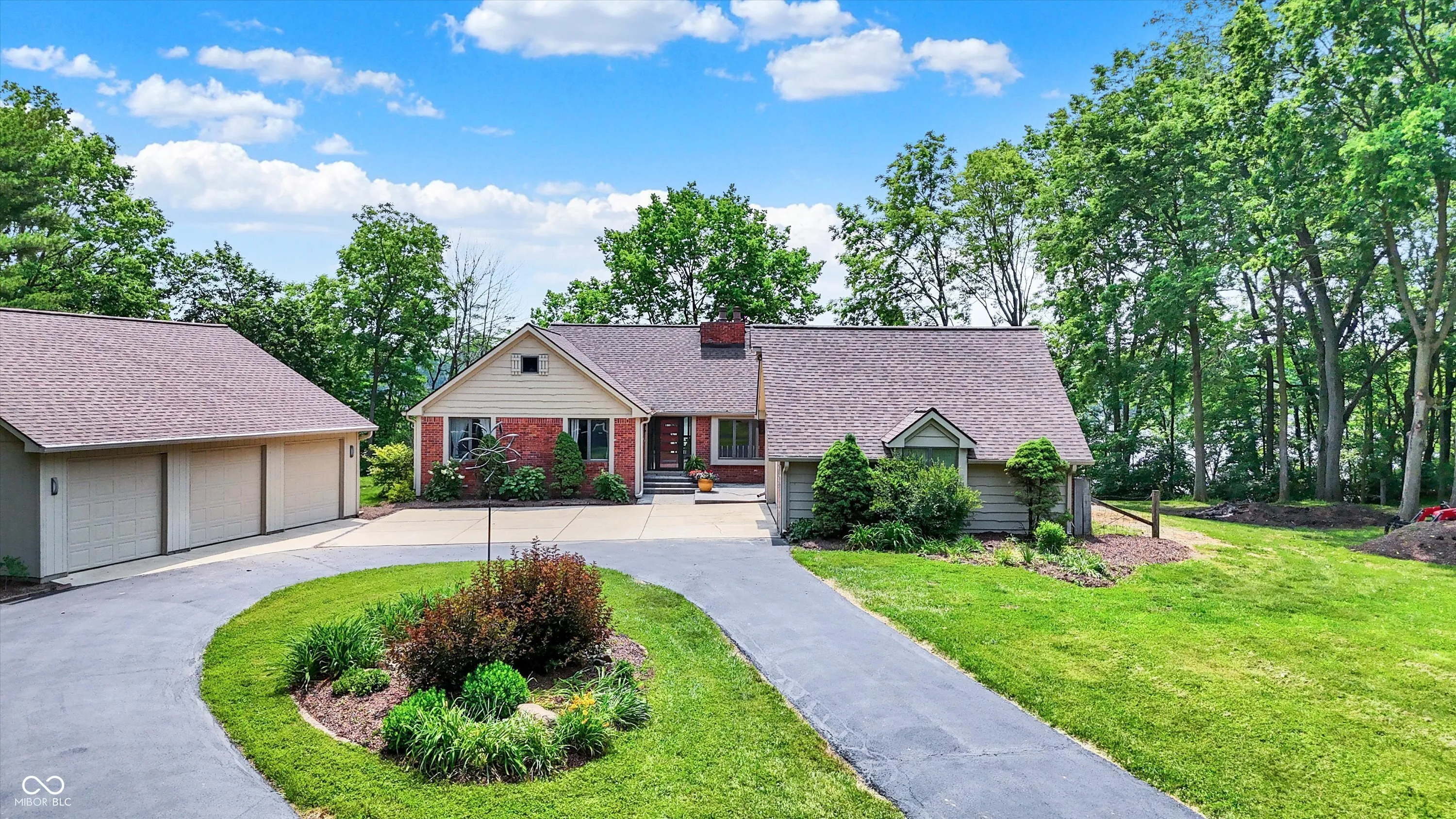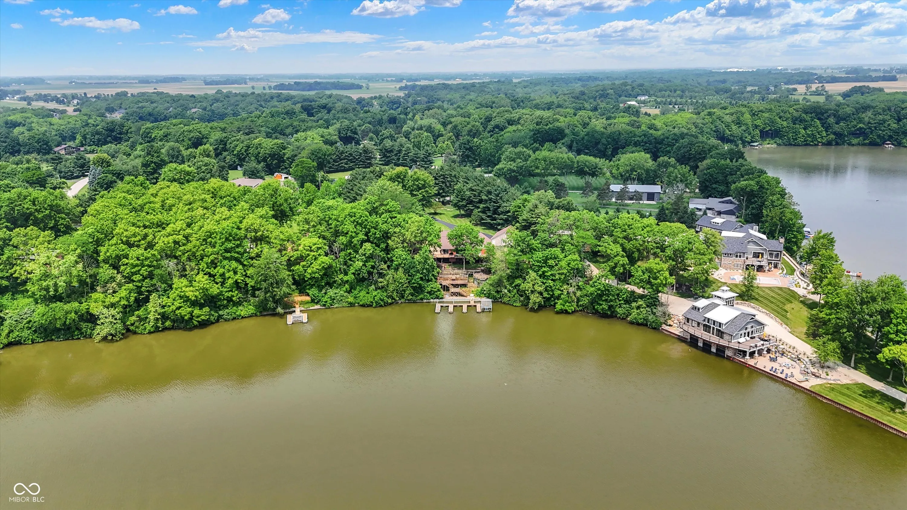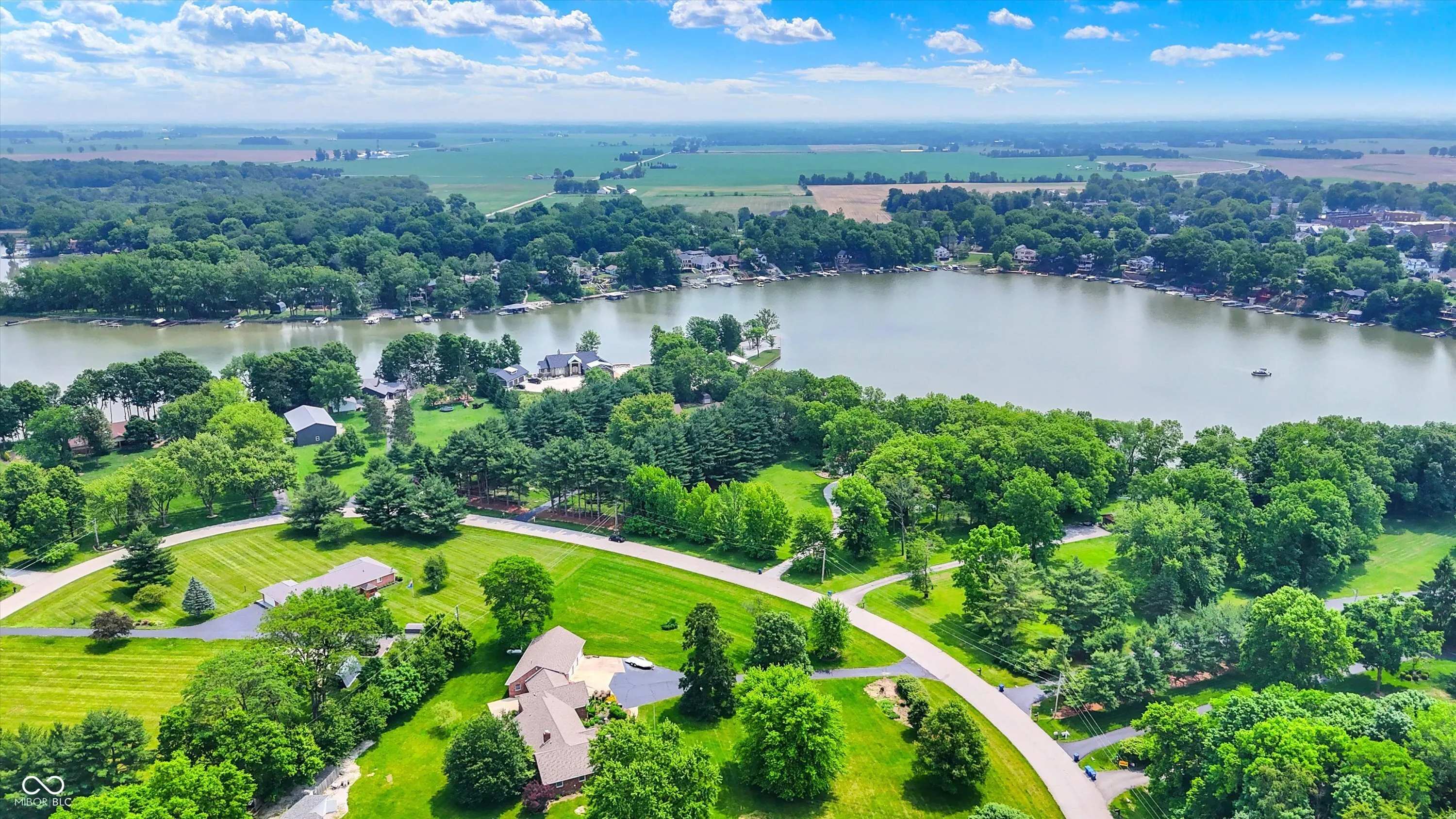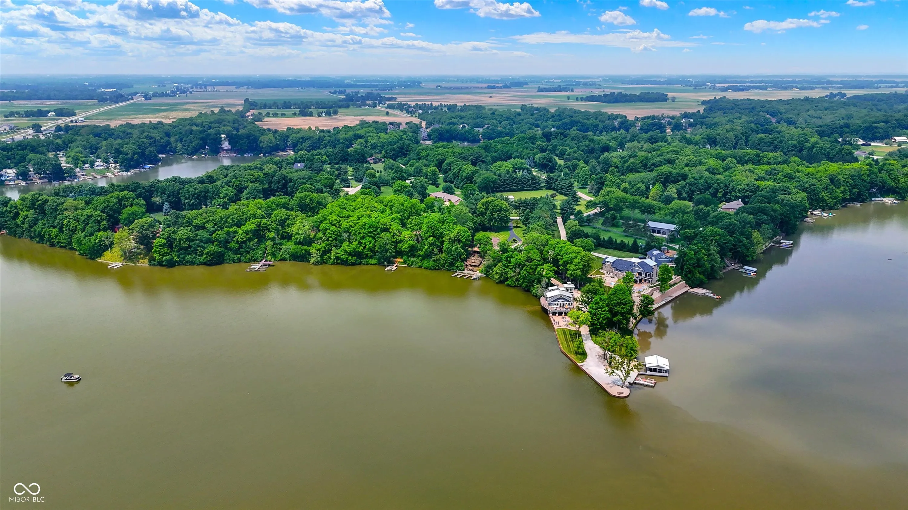 MORSE LAKE WATERFRONT HOME boasts panoramic water view with stunning sunrises! Situated on tree-lined 1.8 acre lot with a whopping 246′ of lake frontage with steel seawall! This beautiful sprawling ranch brick home with finished walk-out lower-level features spacious cathedral ceilings, two fireplaces and a main floor master suite. Center island kitchen and dining room have handsome hardwood floors. Full walk-out lower-level offers well-equipped wet bar with suede finished granite countertops, recreation room, family room with fireplace and a half bath. Tons of room for craft/hobby/exercise room/storage. Geo-thermal HVAC system is connected to commercial grade water heater for nearly free hot water. Zeolite water softener. New hail-proof Owens Corning roof in 2022 and new gutters. Exterior outlet wired for a generator. 2 car attached garage PLUS 3 car detached garage with workshop & HVAC! 4 boat slips with deep water, extra wide 120 ft 4000 lb power lift. Storage shed. Nearby Harbor Trees Golf and Beach Club offering swimming pool, dining, exercise and golf. Also, nearby are Bear Slide and Pebble Creek golf clubs and lots of restaurants. What a great opportunity to begin a legacy of lake house memories for your family! Needs some updates, but priced accordingly. A full price offer would include mower, tractor and pool table.