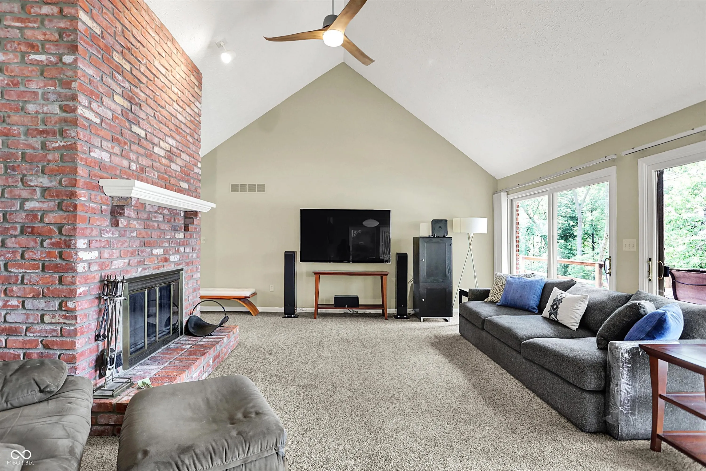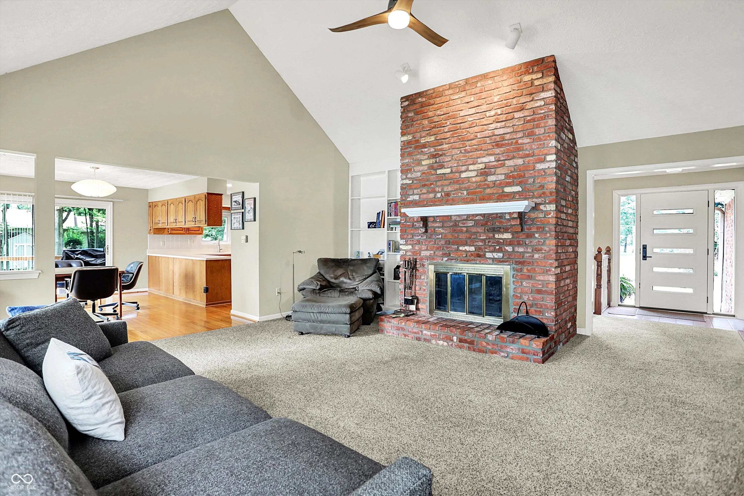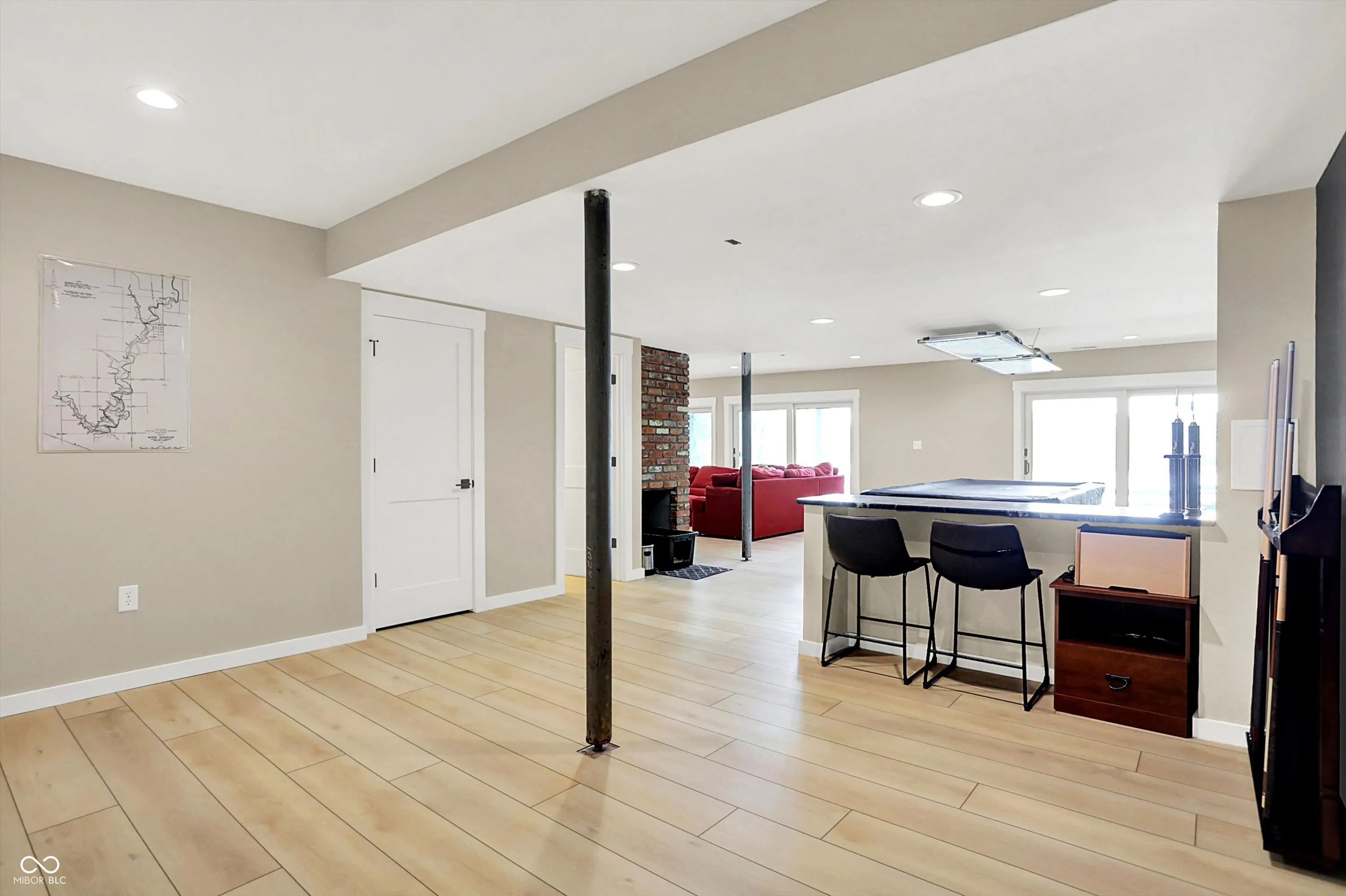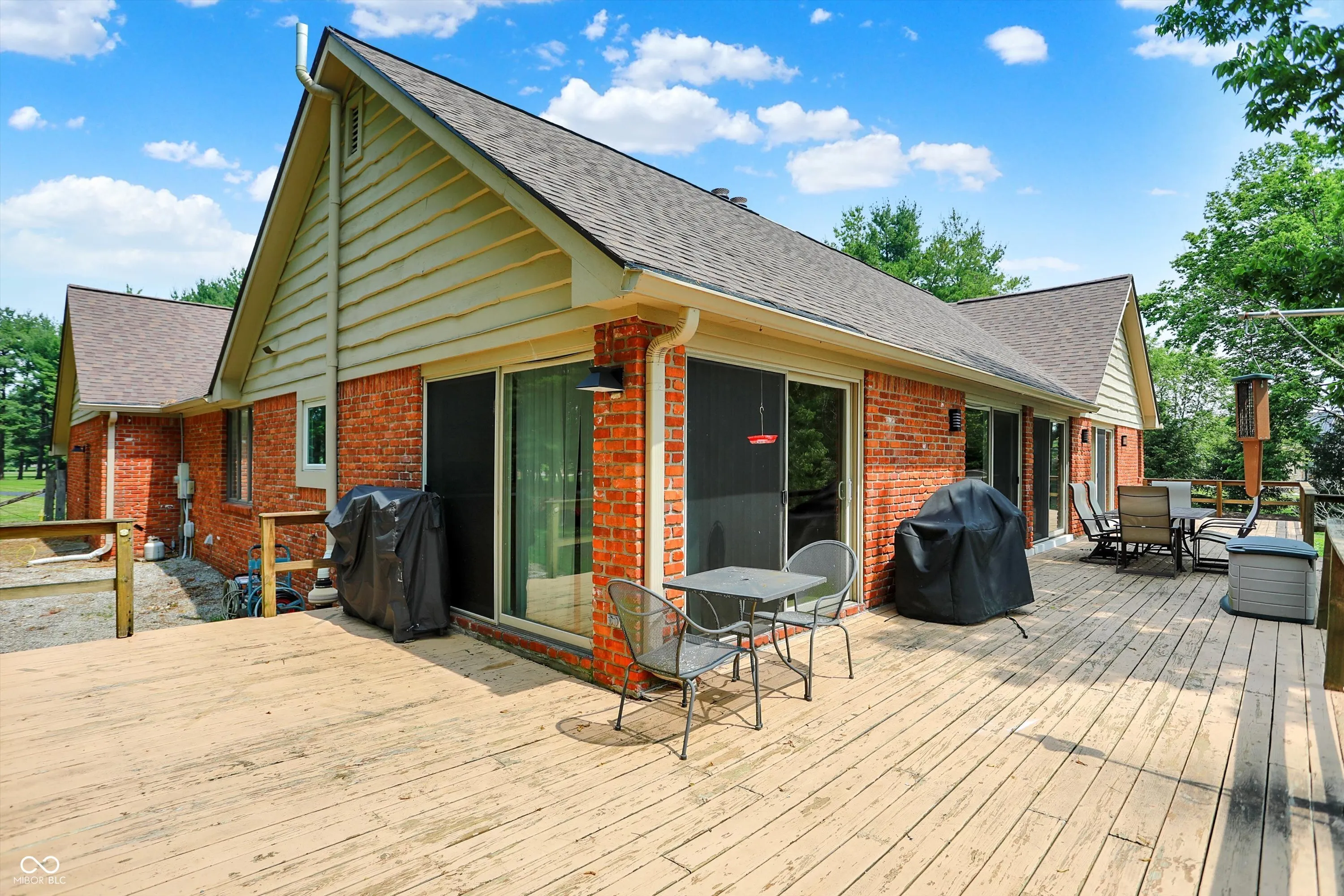 MORSE LAKE WATERFRONT HOME boasts panoramic water view with stunning sunrises! Situated on tree-lined 1.8 acre lot with a whopping 246′ of lake frontage with steel seawall! This beautiful sprawling ranch brick home with finished walk-out lower-level features spacious cathedral ceilings, two fireplaces and a main floor master suite. Center island kitchen and dining room have handsome hardwood floors. Full walk-out lower-level offers well-equipped wet bar with suede finished granite countertops, recreation room, family room with fireplace and a half bath. Tons of room for craft/hobby/exercise room/storage. Geo-thermal HVAC system is connected to commercial grade water heater for nearly free hot water. Zeolite water softener. New hail-proof Owens Corning roof in 2022 and new gutters. Exterior outlet wired for a generator. 2 car attached garage PLUS 3 car detached garage with workshop & HVAC! 4 boat slips with deep water, extra wide 120 ft 4000 lb power lift. Storage shed. Nearby Harbor Trees Golf and Beach Club offering swimming pool, dining, exercise and golf. Also, nearby are Bear Slide and Pebble Creek golf clubs and lots of restaurants. What a great opportunity to begin a legacy of lake house memories for your family! Needs some updates, but priced accordingly. A full price offer would include mower, tractor and pool table.