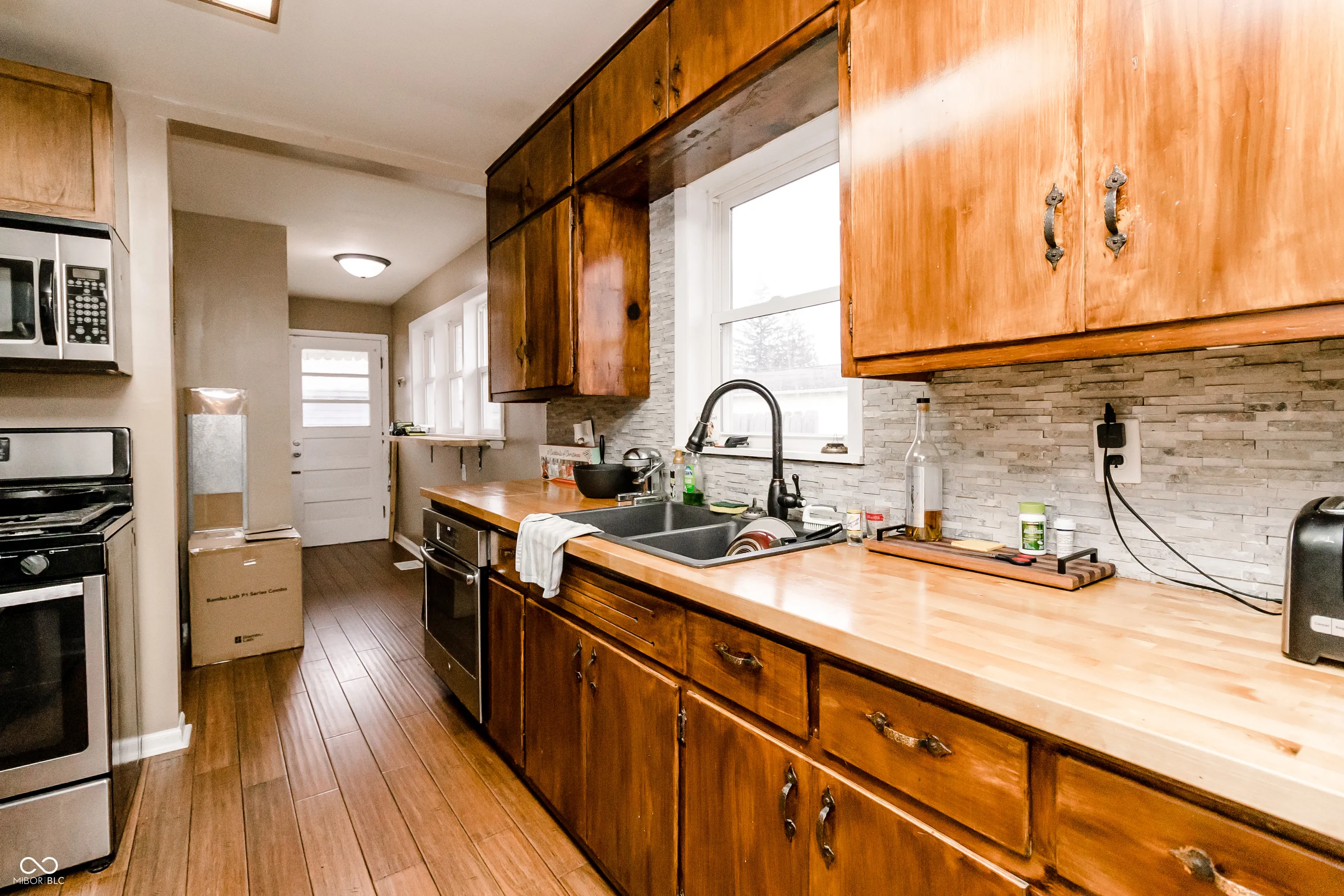 This awesome bungalow has been brought back to life on Indy’s east side. Close to Little Flower and Irvington, this 2 bedroom, 1 bath home will be the perfect starter home at an amazing price! Updated kitchen w/ SS appliances and butcher-block counter tops and breakfast bar. Enjoy the privacy-fenced backyard, and detached garage with extra workspace. Hurry, this won’t last long!