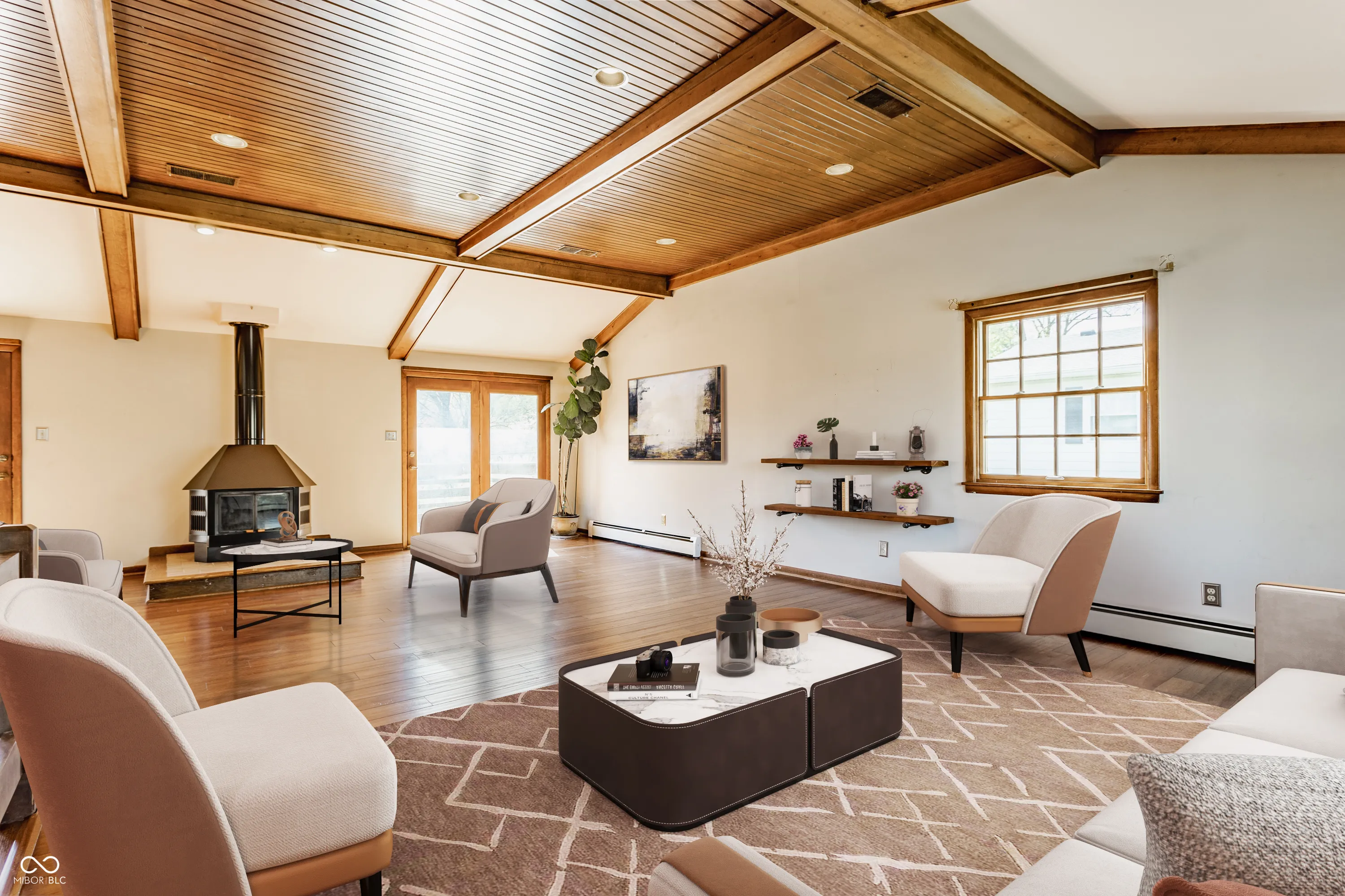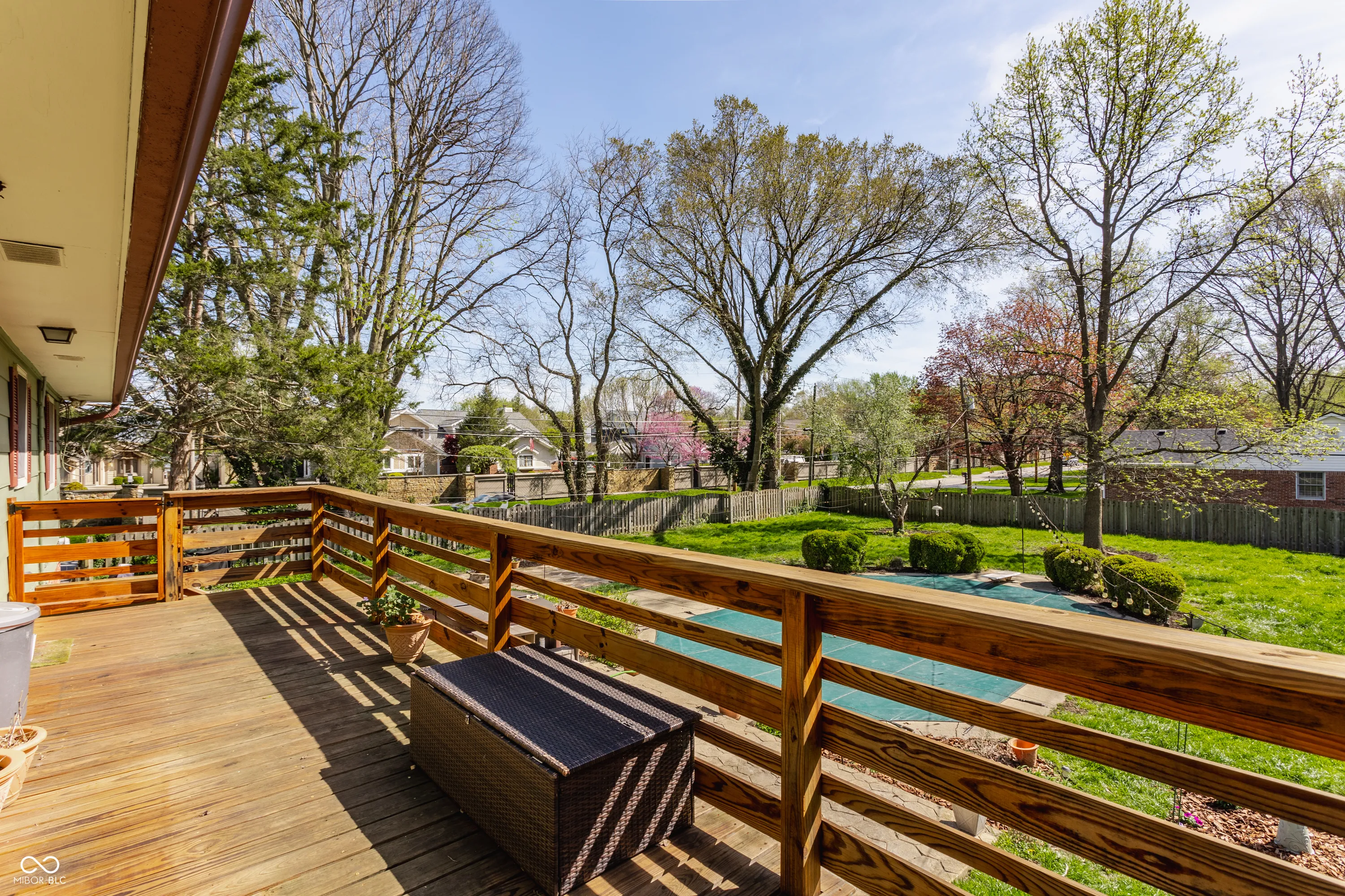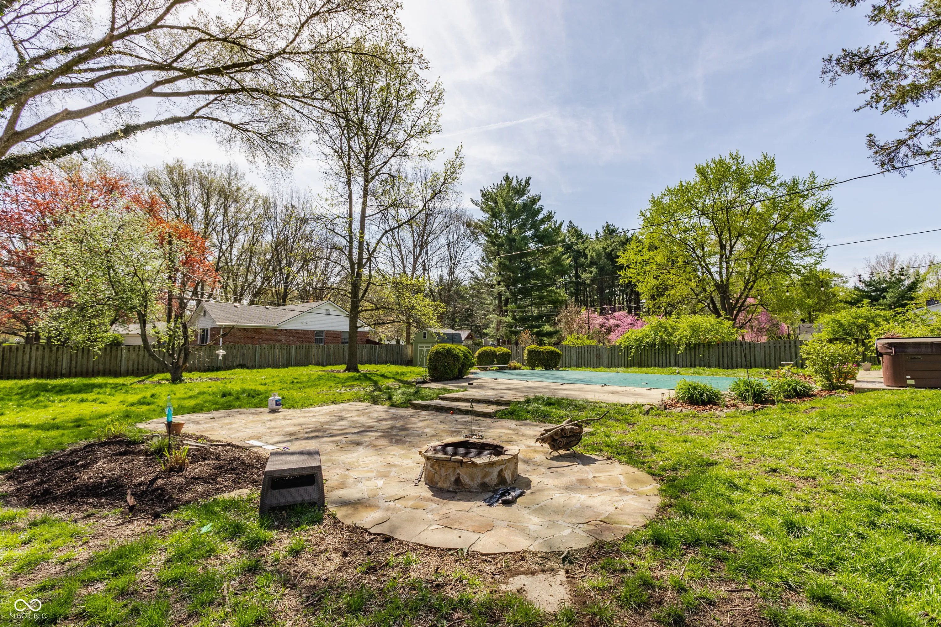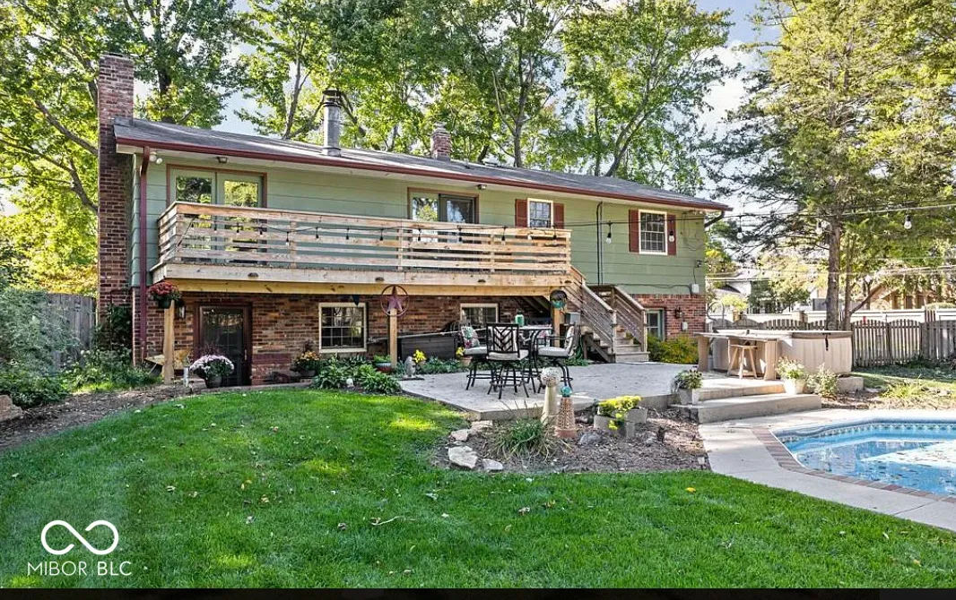 Chic Washington Township escape with in-ground pool! Unique split-level offers great space for entertaining. On the main level is updated kitchen with stainless steel appliances, quartz countertops, expansive breakfast bar, glass cabinetry, farmhouse sink and its own fireplace. A formal dining room sits next to it. Upper level is a total “wow!” with magnificent, open-concept great room featuring vaulted wooden ceiling and beams, built-in bookshelves, and free-standing, wood-burning fireplace. Also three bedrooms, including Primary Bedroom with ensuite bathroom with walk-in shower, plus second full bath with jetted tub. Step into the private, fully fenced, more than 1/2 acre backyard oasis with pool, hot tub, new stone patio/firepit, beautiful landscaping, mature trees, mini-barn and garden bed. No HOA.