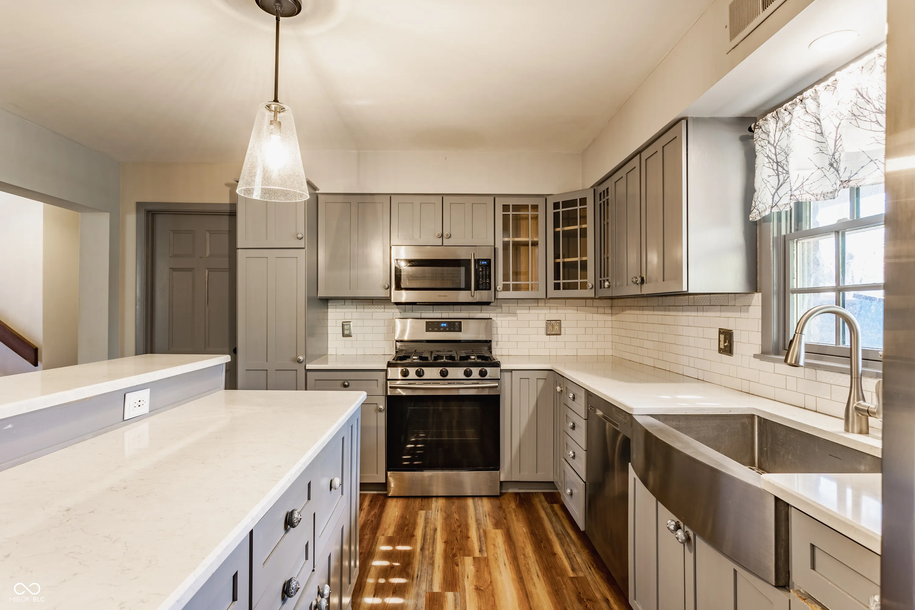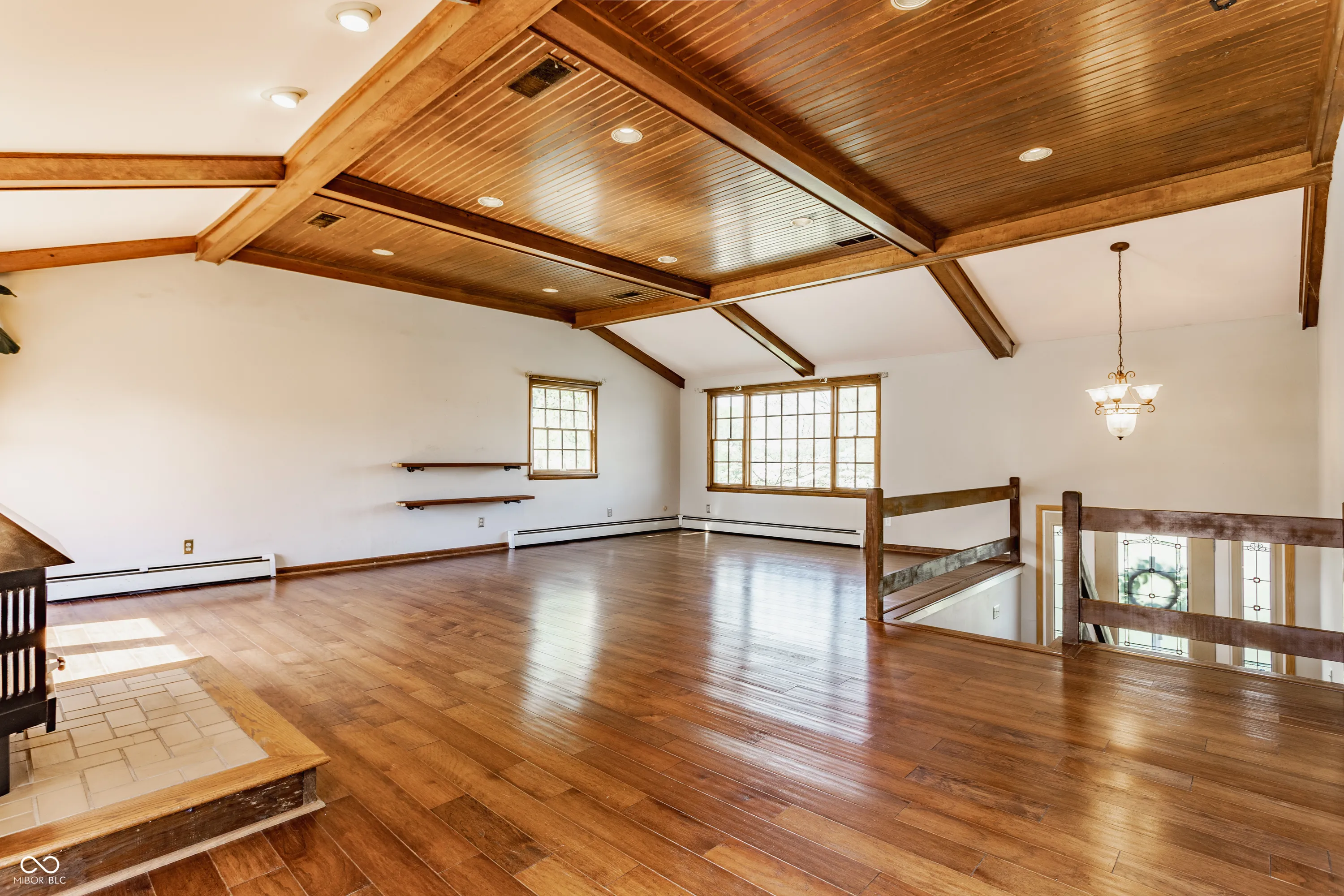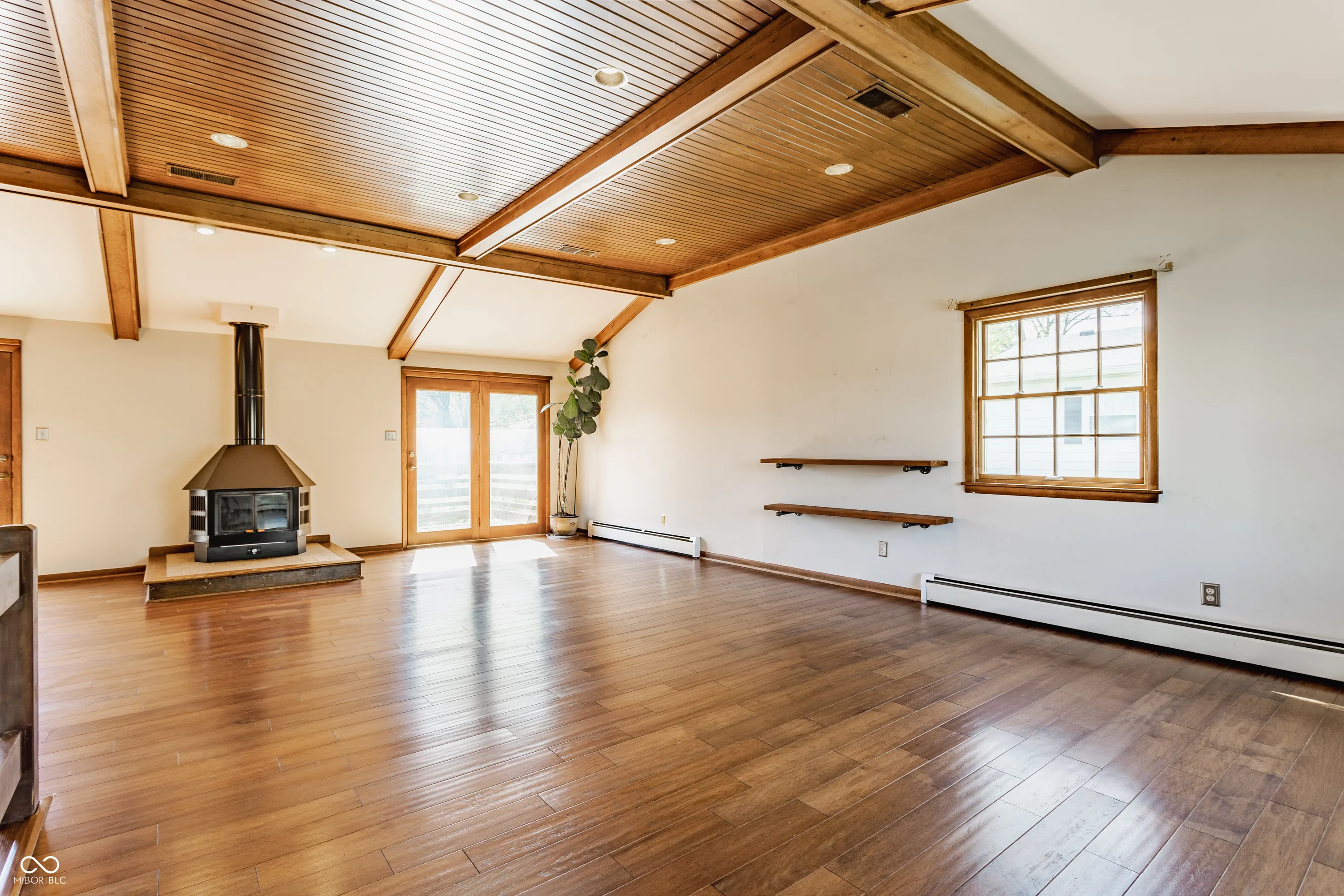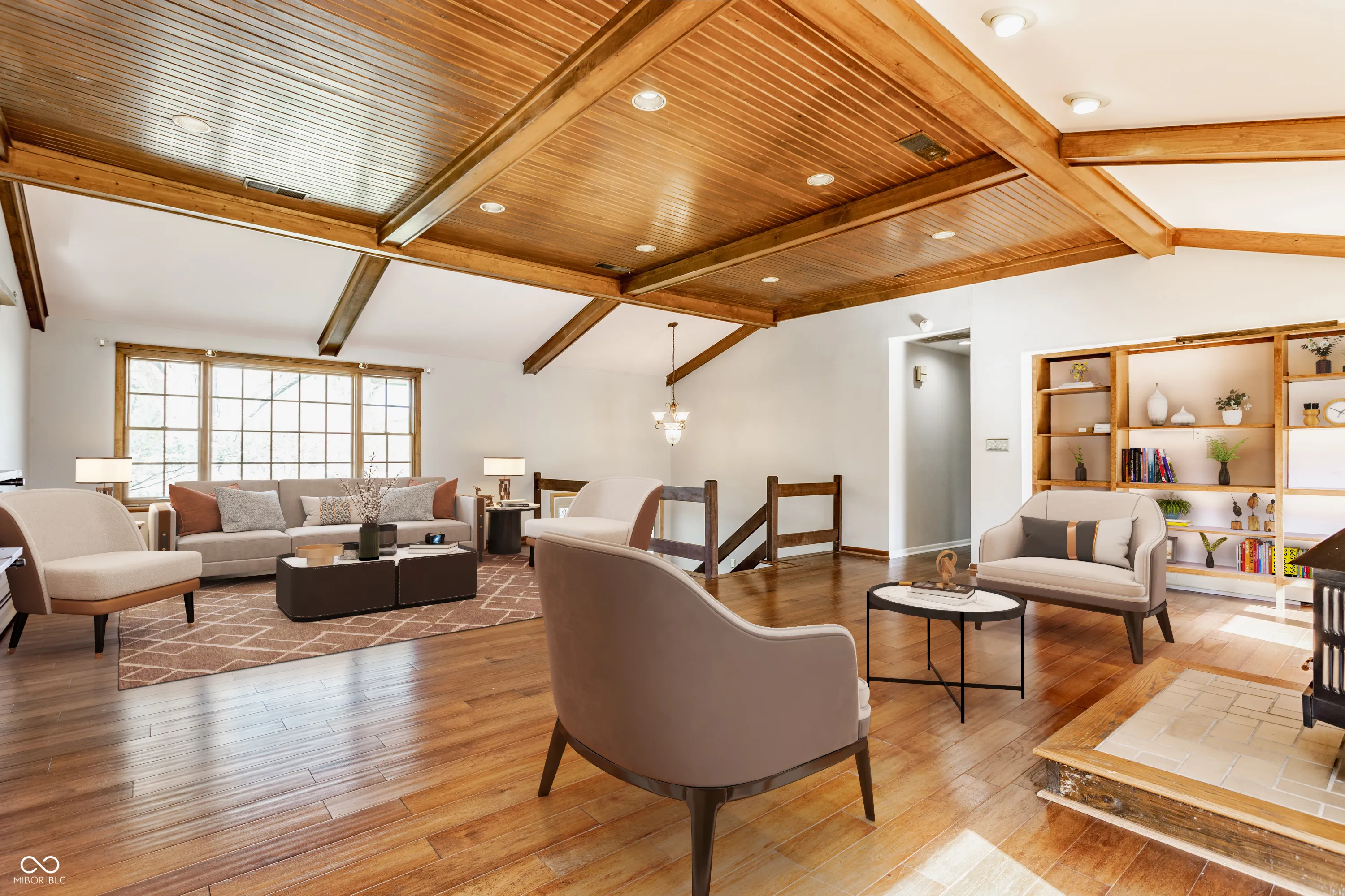 Chic Washington Township escape with in-ground pool! Unique split-level offers great space for entertaining. On the main level is updated kitchen with stainless steel appliances, quartz countertops, expansive breakfast bar, glass cabinetry, farmhouse sink and its own fireplace. A formal dining room sits next to it. Upper level is a total “wow!” with magnificent, open-concept great room featuring vaulted wooden ceiling and beams, built-in bookshelves, and free-standing, wood-burning fireplace. Also three bedrooms, including Primary Bedroom with ensuite bathroom with walk-in shower, plus second full bath with jetted tub. Step into the private, fully fenced, more than 1/2 acre backyard oasis with pool, hot tub, new stone patio/firepit, beautiful landscaping, mature trees, mini-barn and garden bed. No HOA.